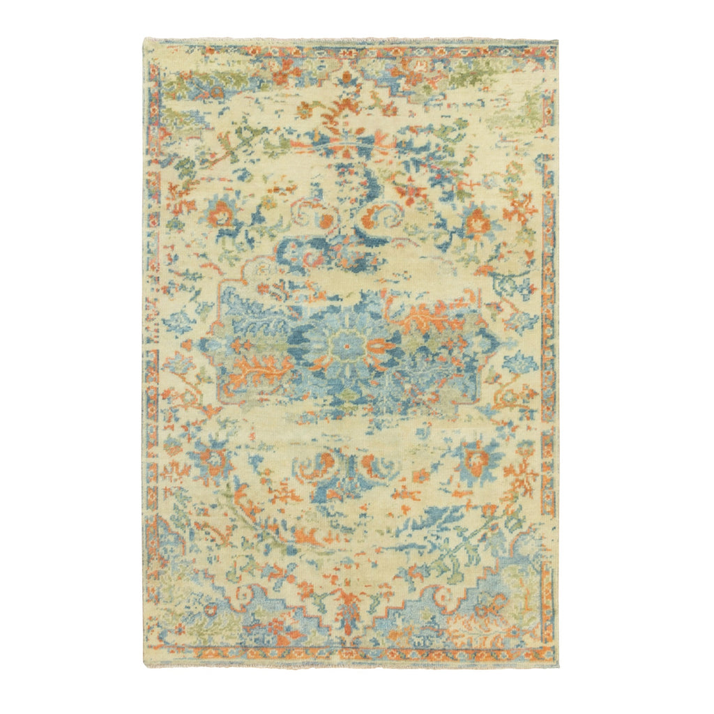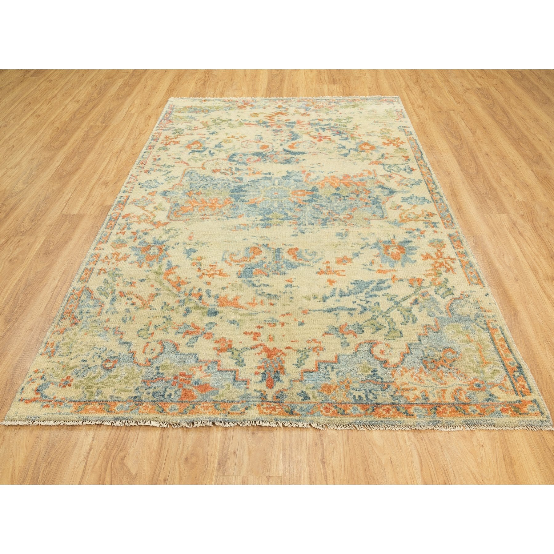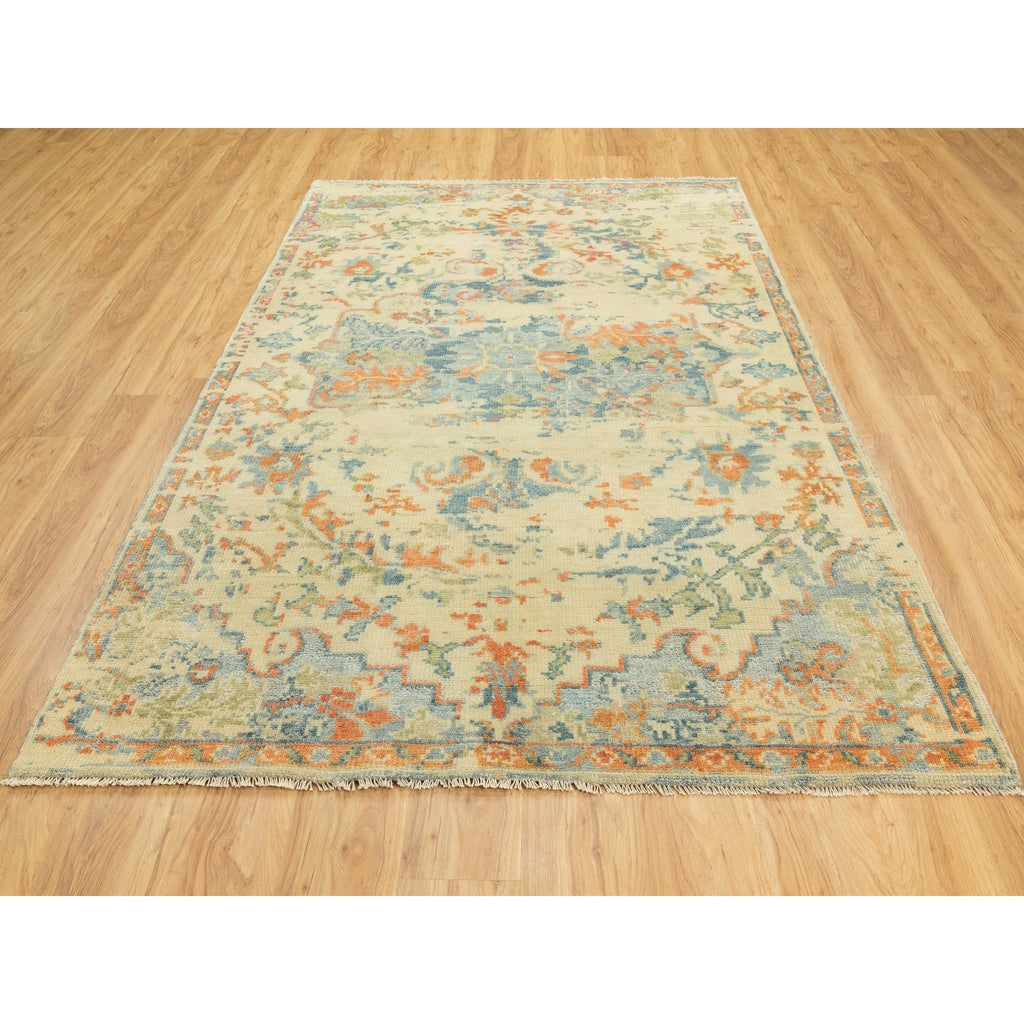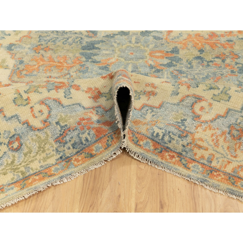 5'9"x9' Ivory Variegated Broken Heriz Design Supple Collection Pure Wool Hand Knotted Oriental Rug FWR353928
