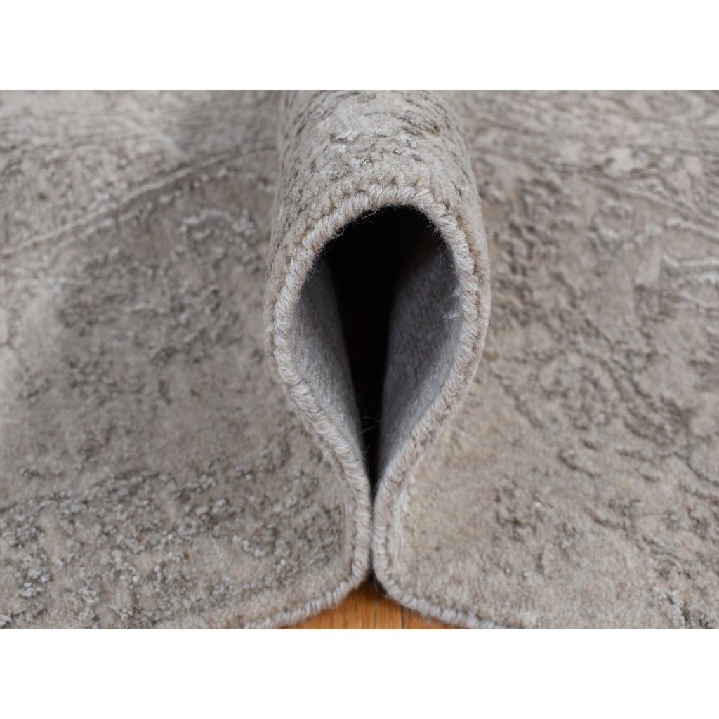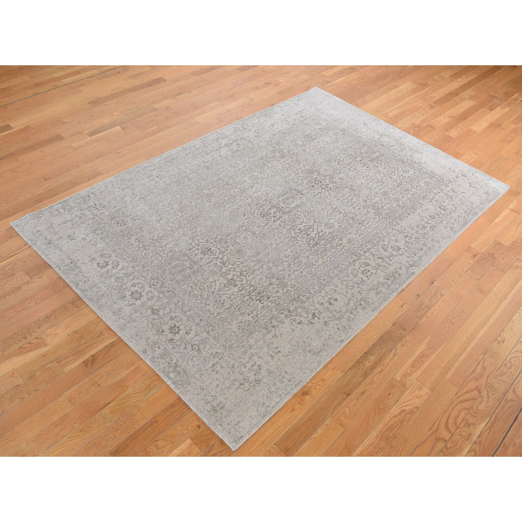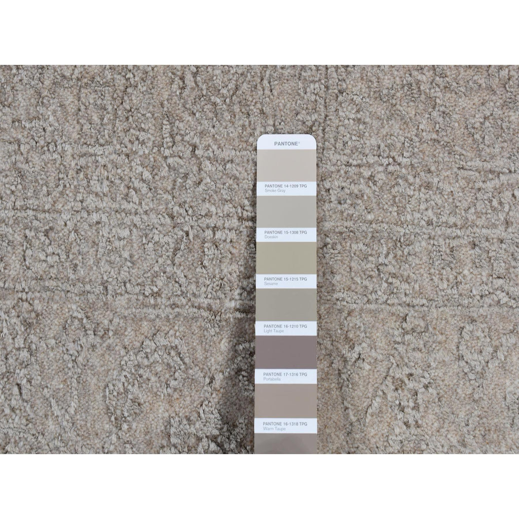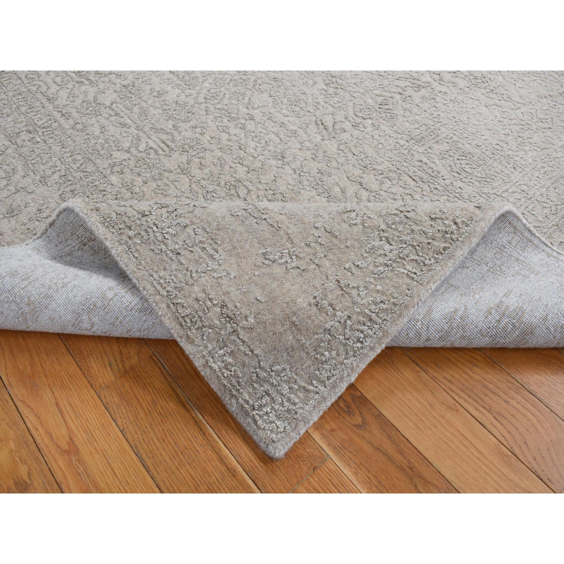 5'9"x9' Taupe, Fine Jacquard Hand Loomed, Modern Tone On Tone, Wool And Art Silk, Oriental Rug FWR485862
