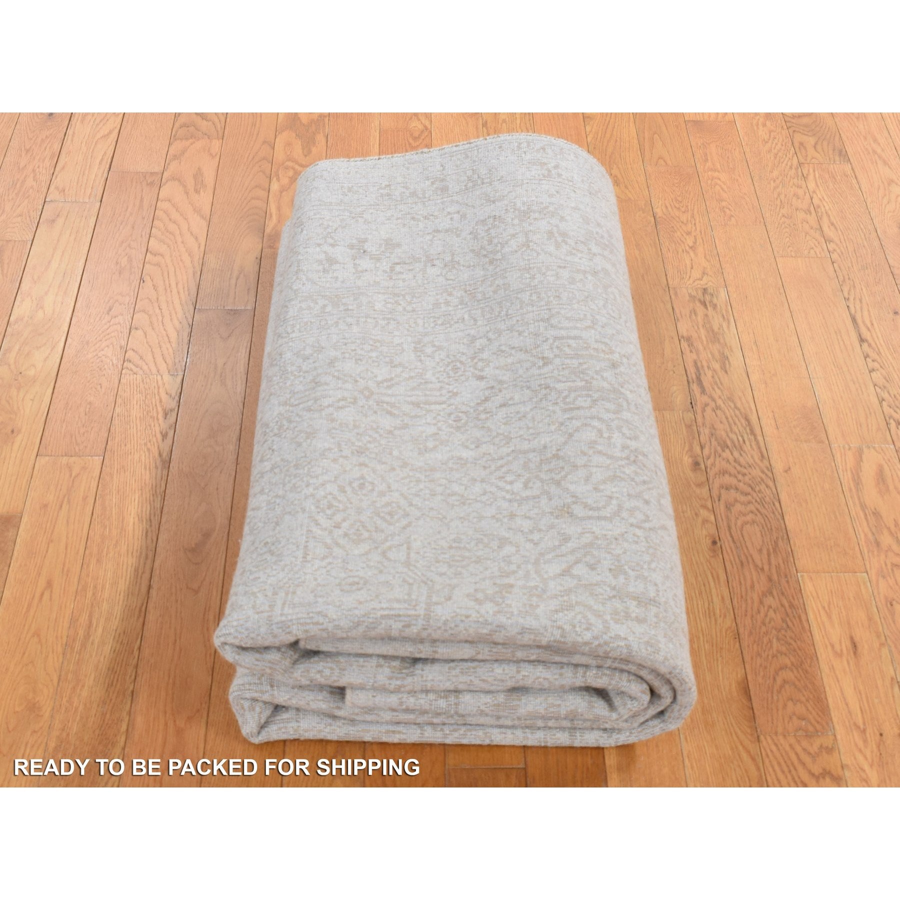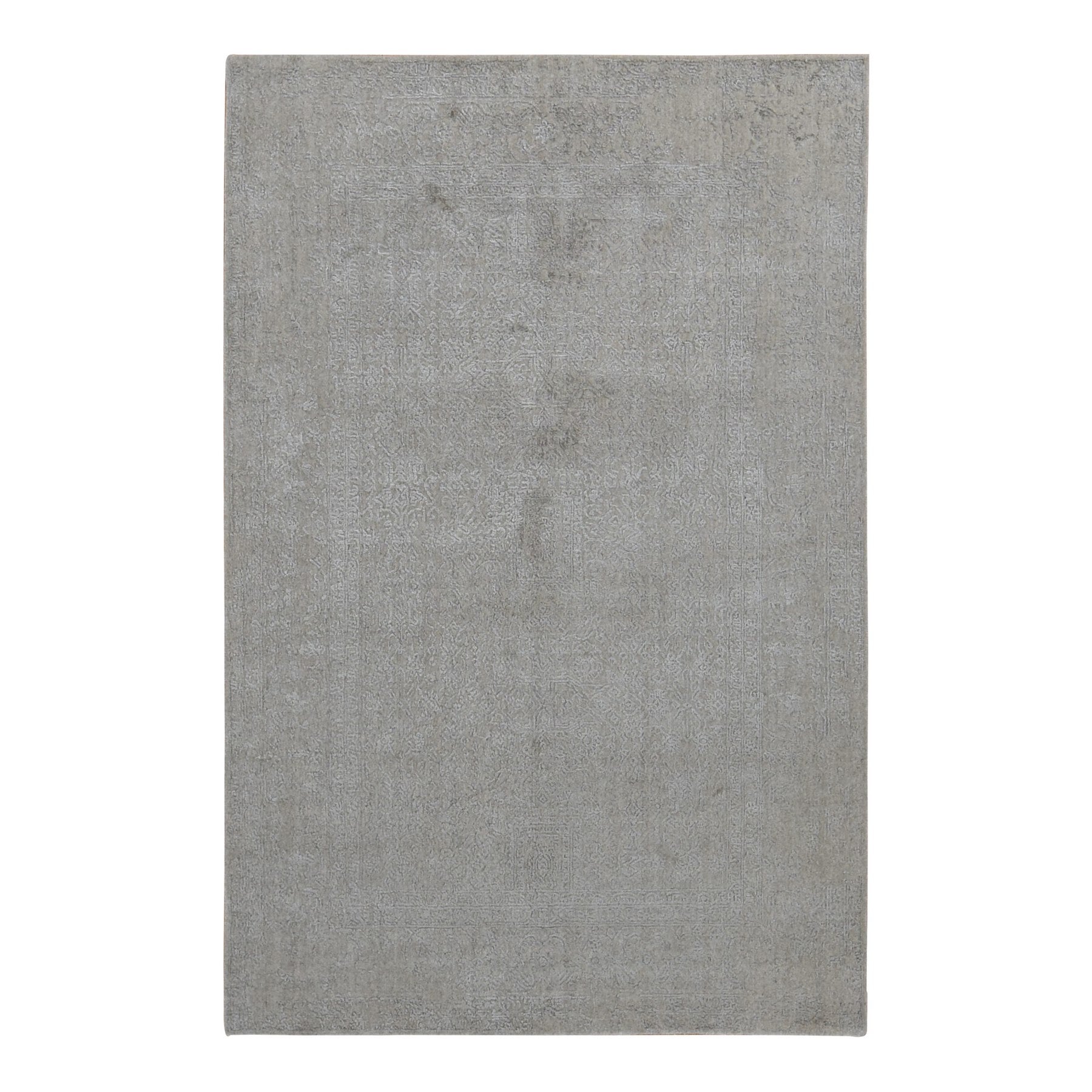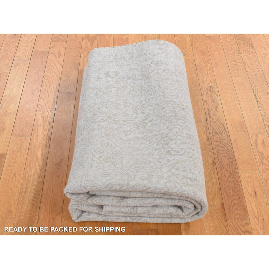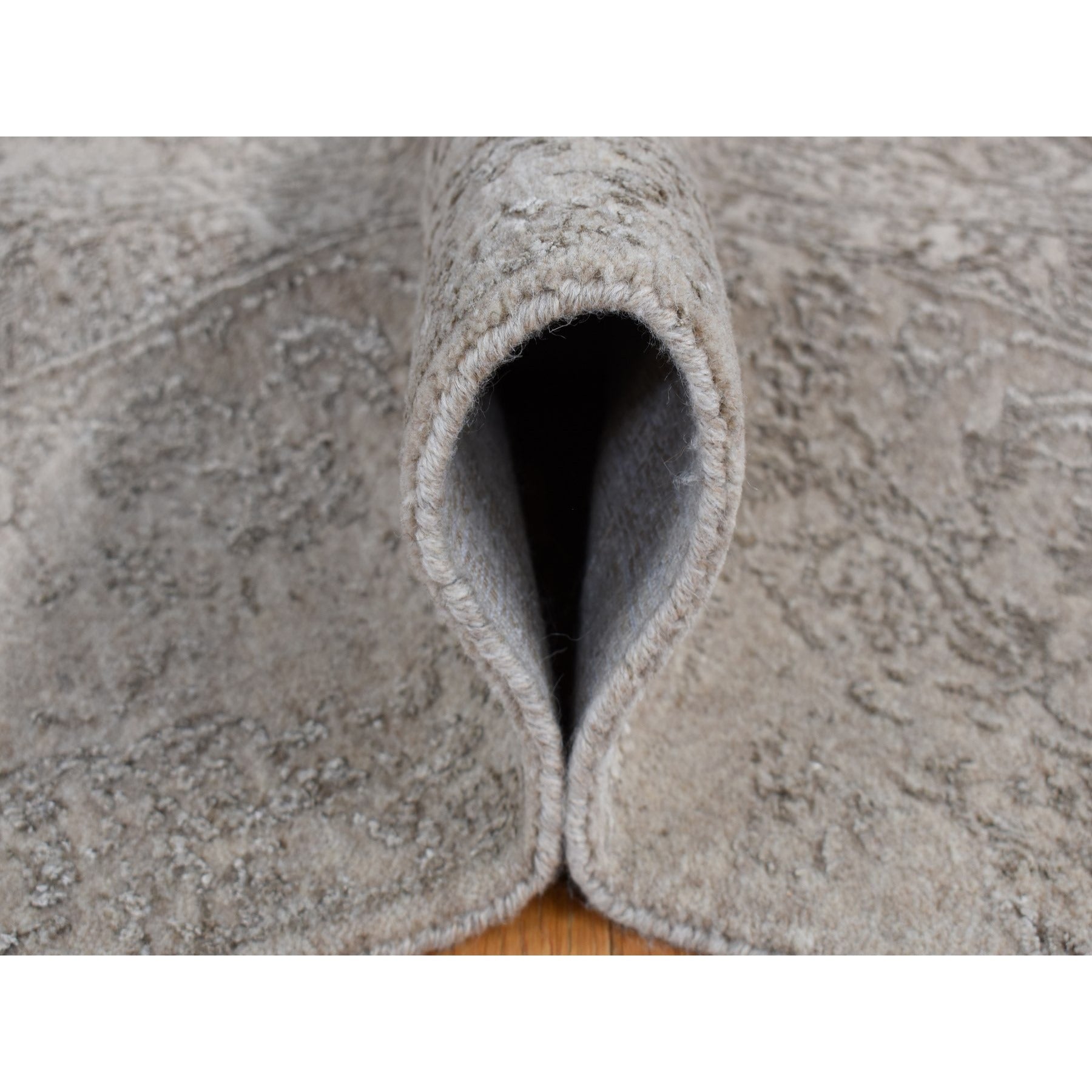 5'9"x9' Taupe, Fine Jacquard Hand Loomed, Modern Tone On Tone, Wool And Art Silk, Oriental Rug FWR485862
