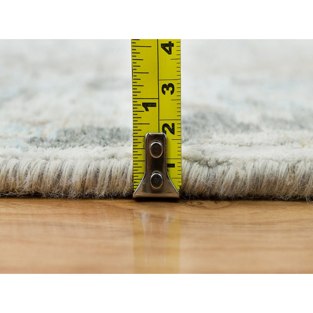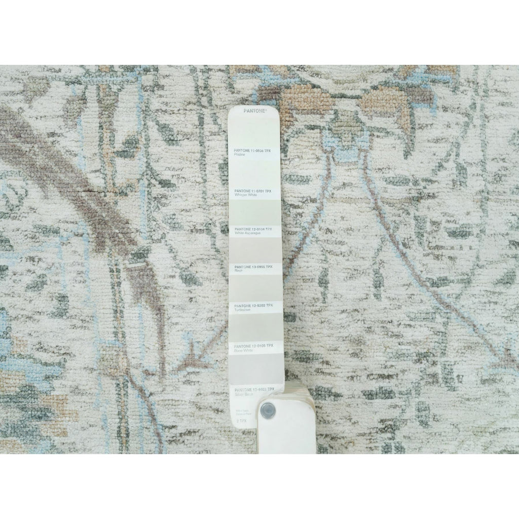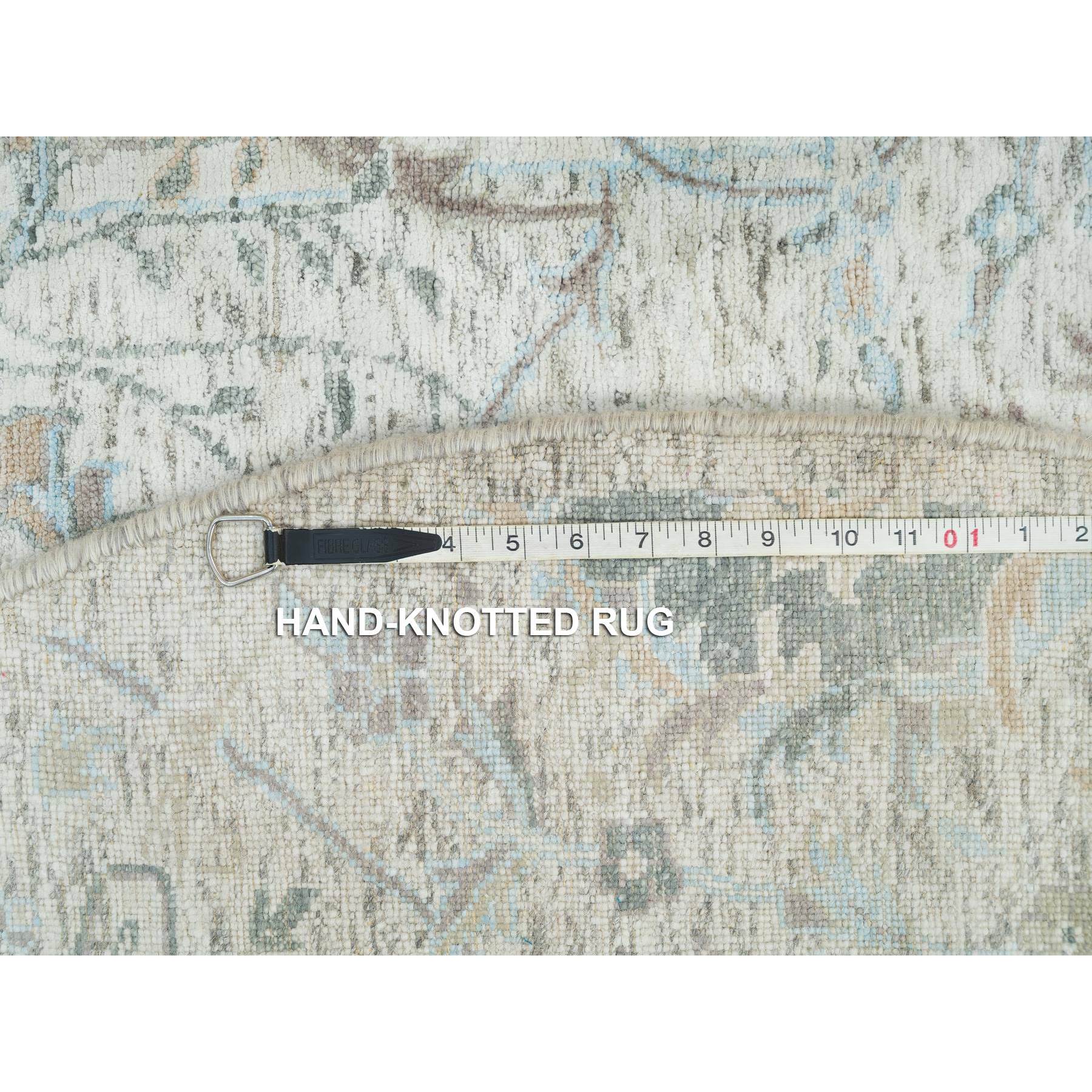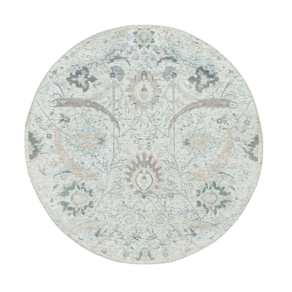 5'x5' Ivory, Hand Knotted, Sickle Leaf Design, Soft Pile, Silk With Textured Wool, Round Oriental Rug FWR395604