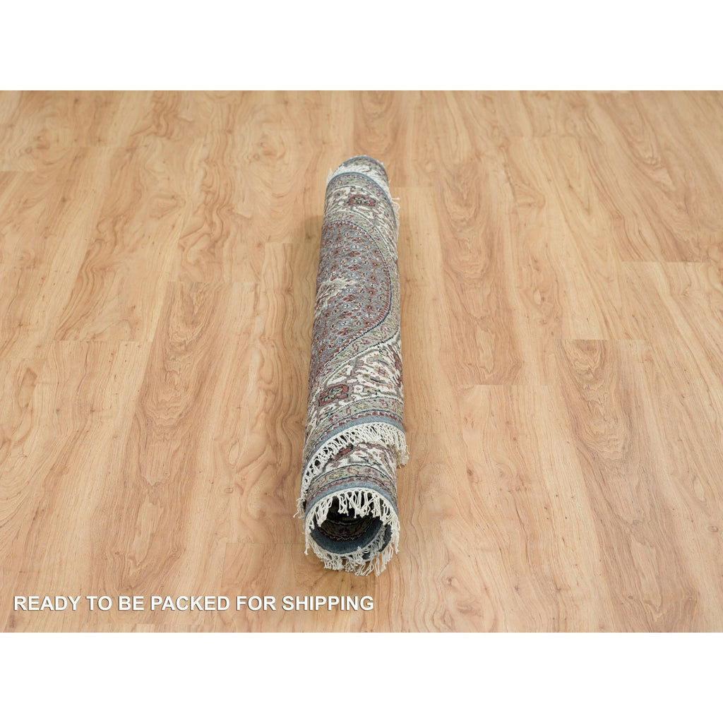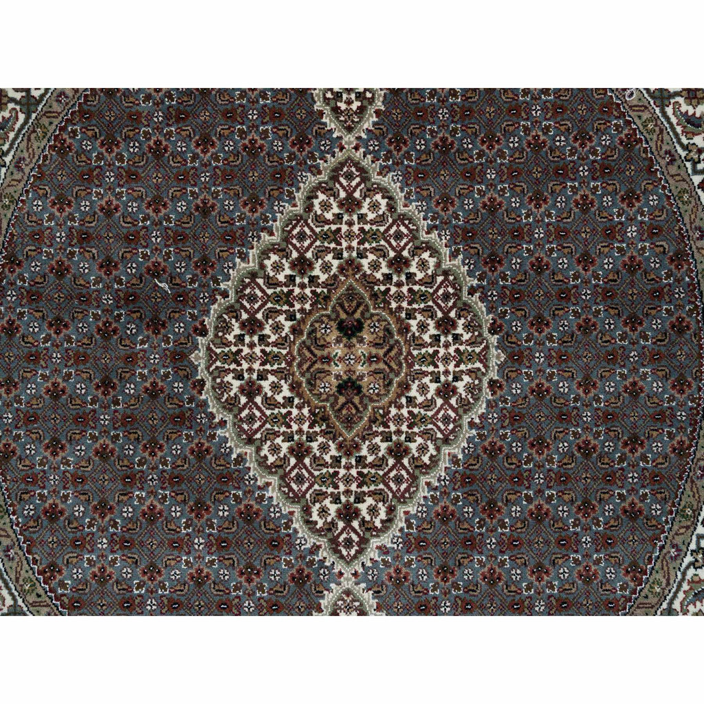 5'x5' Light Gray, Extra Soft Wool, Hand Knotted, 175 Kpsi Tabriz Mahi With Fish Medallion Design, Round Oriental Rug FWR390726