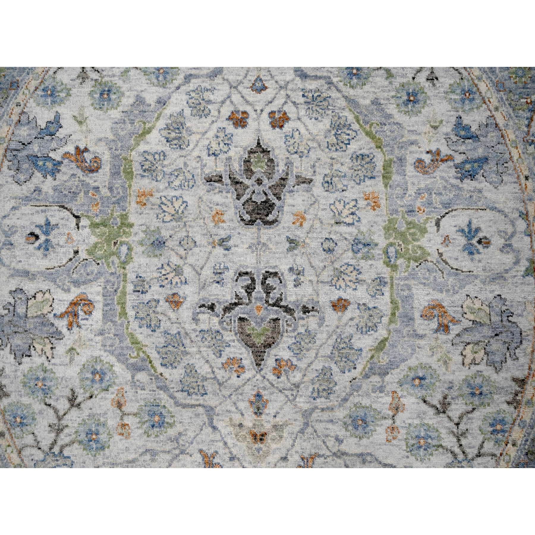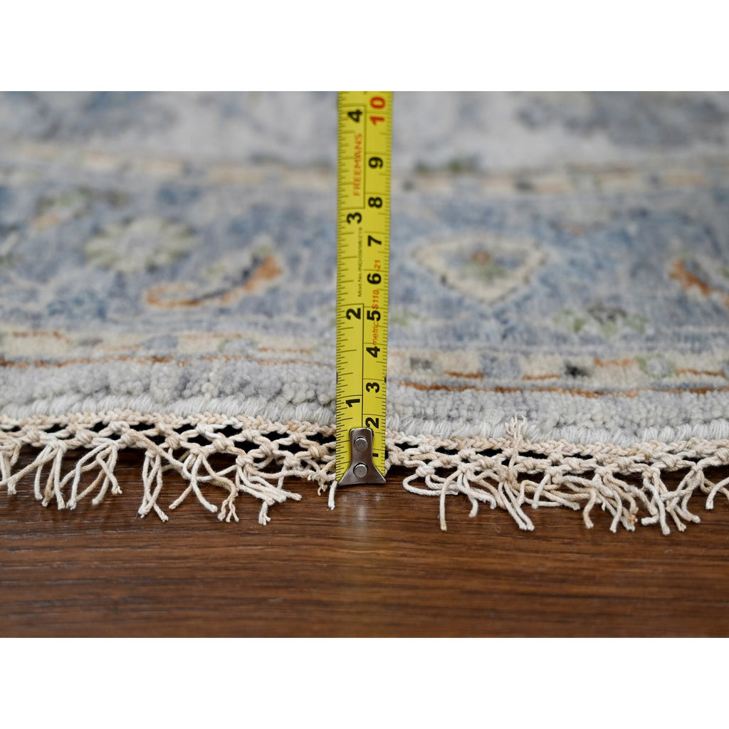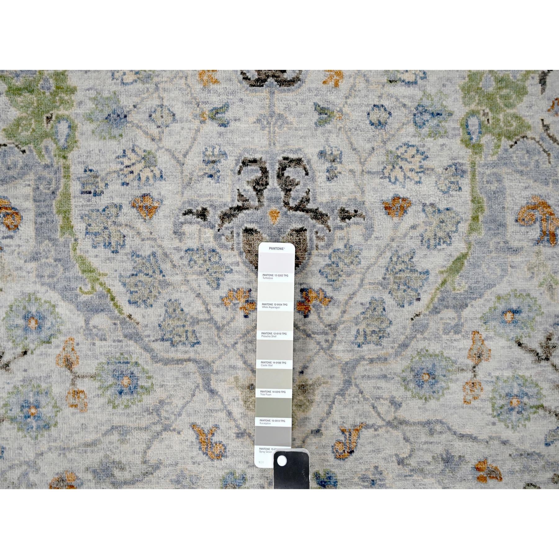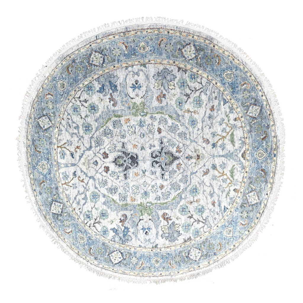 5'x5' Light Gray, Oushak With Floral Motifs, Denser Weave, Soft Wool, Natural Dyes, Round, Hand Knotted, Oriental Rug FWR506190
