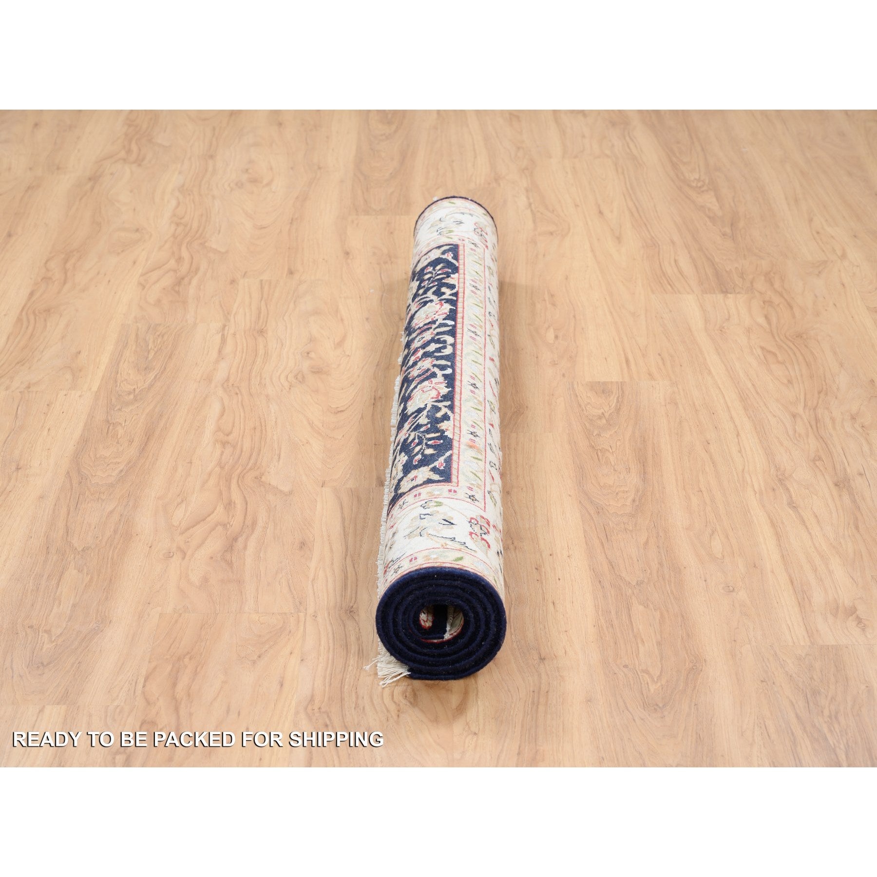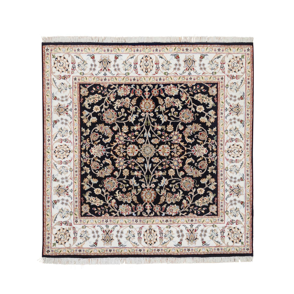 5'x5' Midnight Blue, Hand Knotted Nain All Over Flower Design, 250 Kpsi Wool, Square Oriental Rug FWR384258