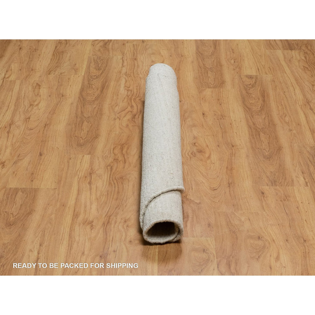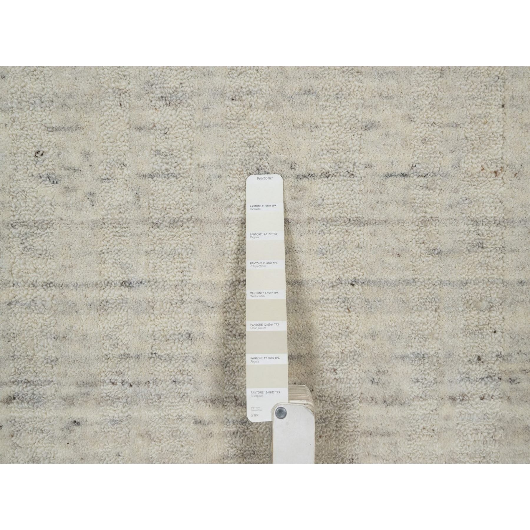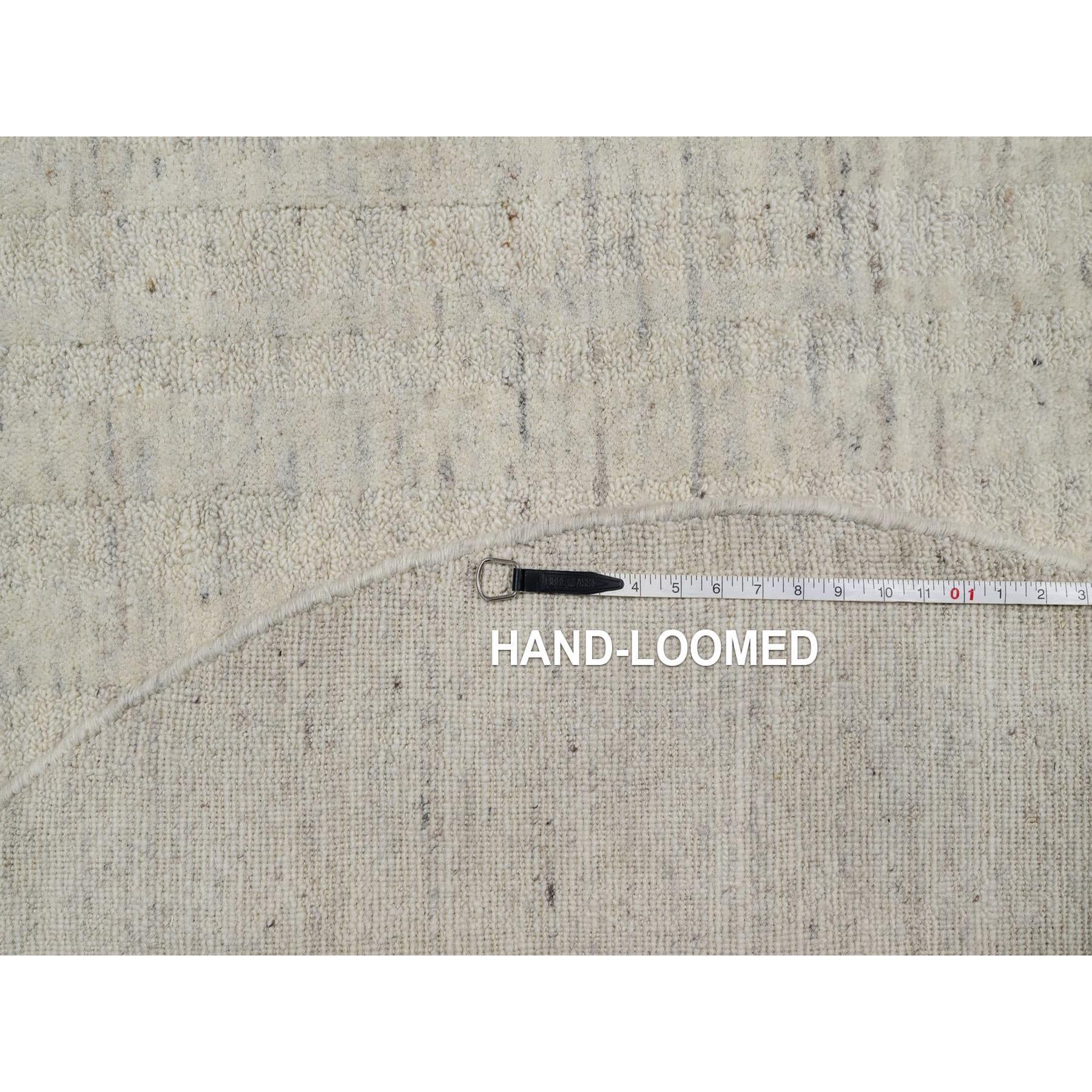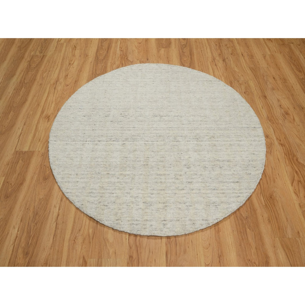 5'x5' Pearl White, Hand Loomed, Salt And Pepper Effect With Vertical Stripes Design, Undyed Natural Wool, Round, Oriental Rug FWR550764