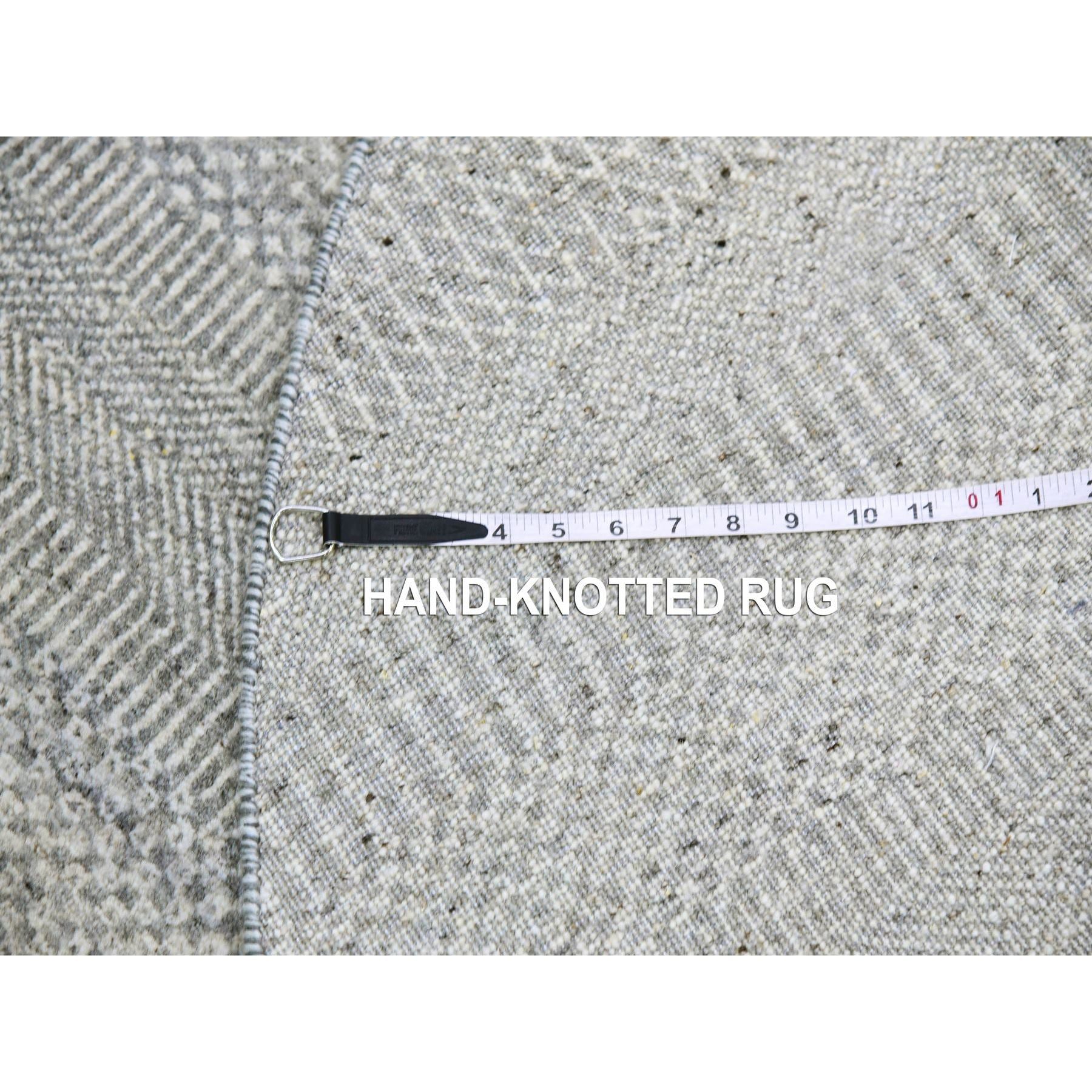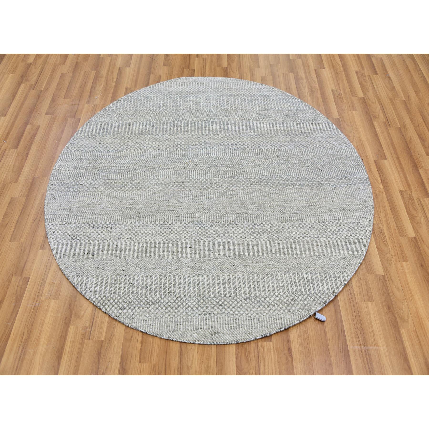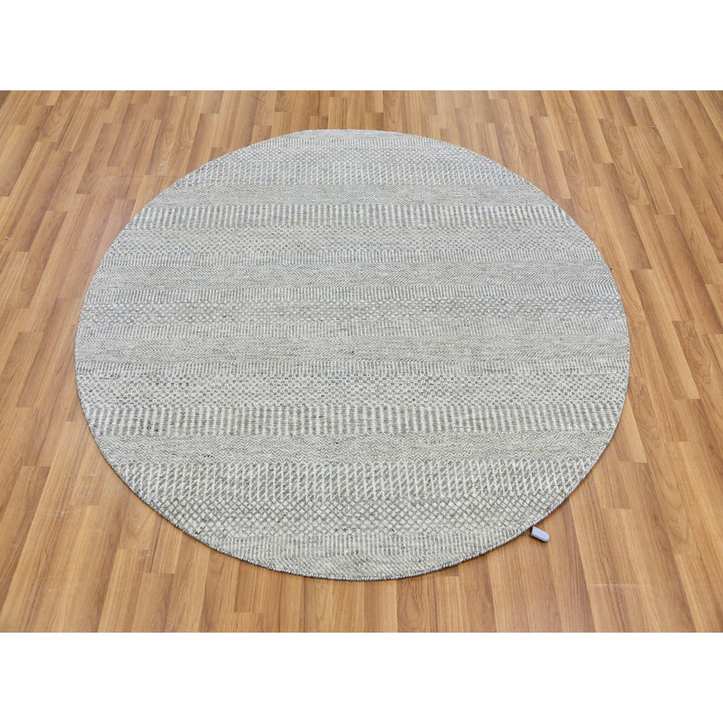 5'x5' Rustic Gray, Tone On Tone, Hand Knotted, Pure Undyed Wool, Round Grass Design Oriental Rug FWR477264