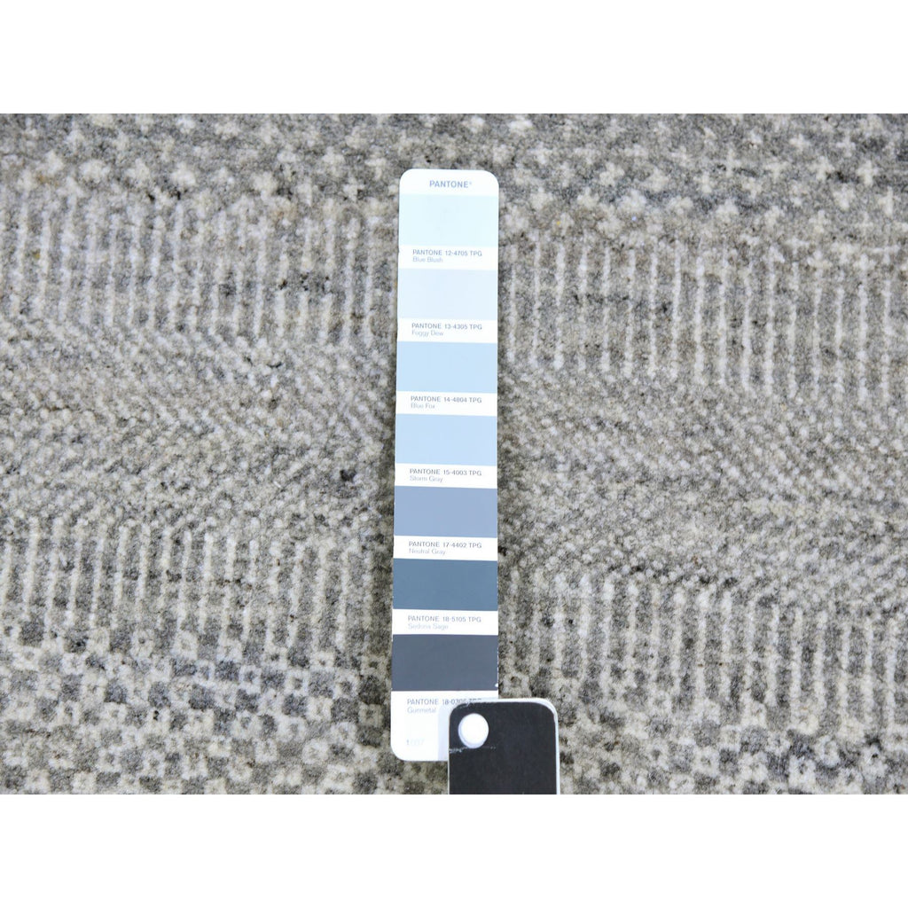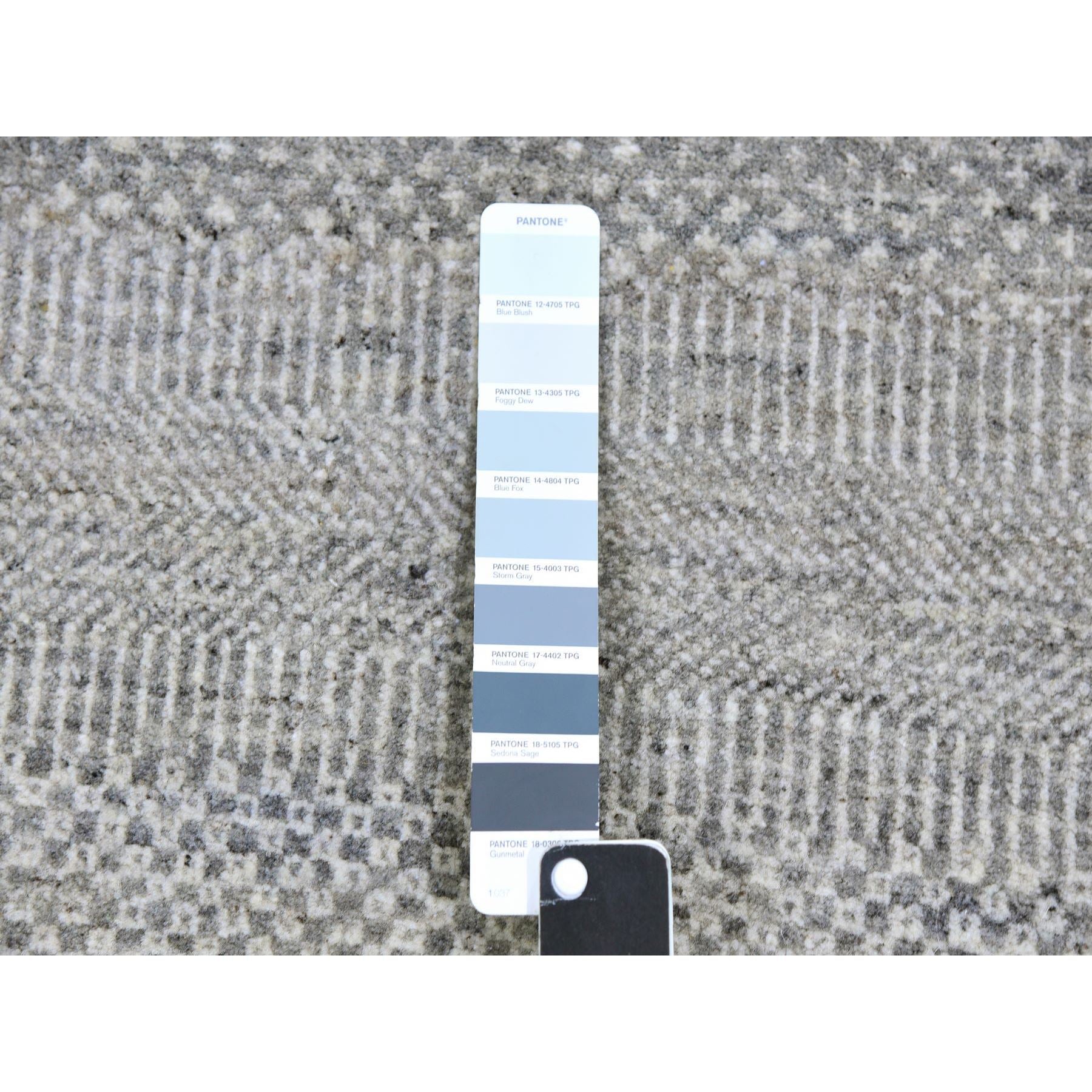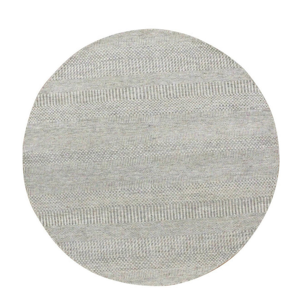 5'x5' Rustic Gray, Tone On Tone, Hand Knotted, Pure Undyed Wool, Round Grass Design Oriental Rug FWR477264