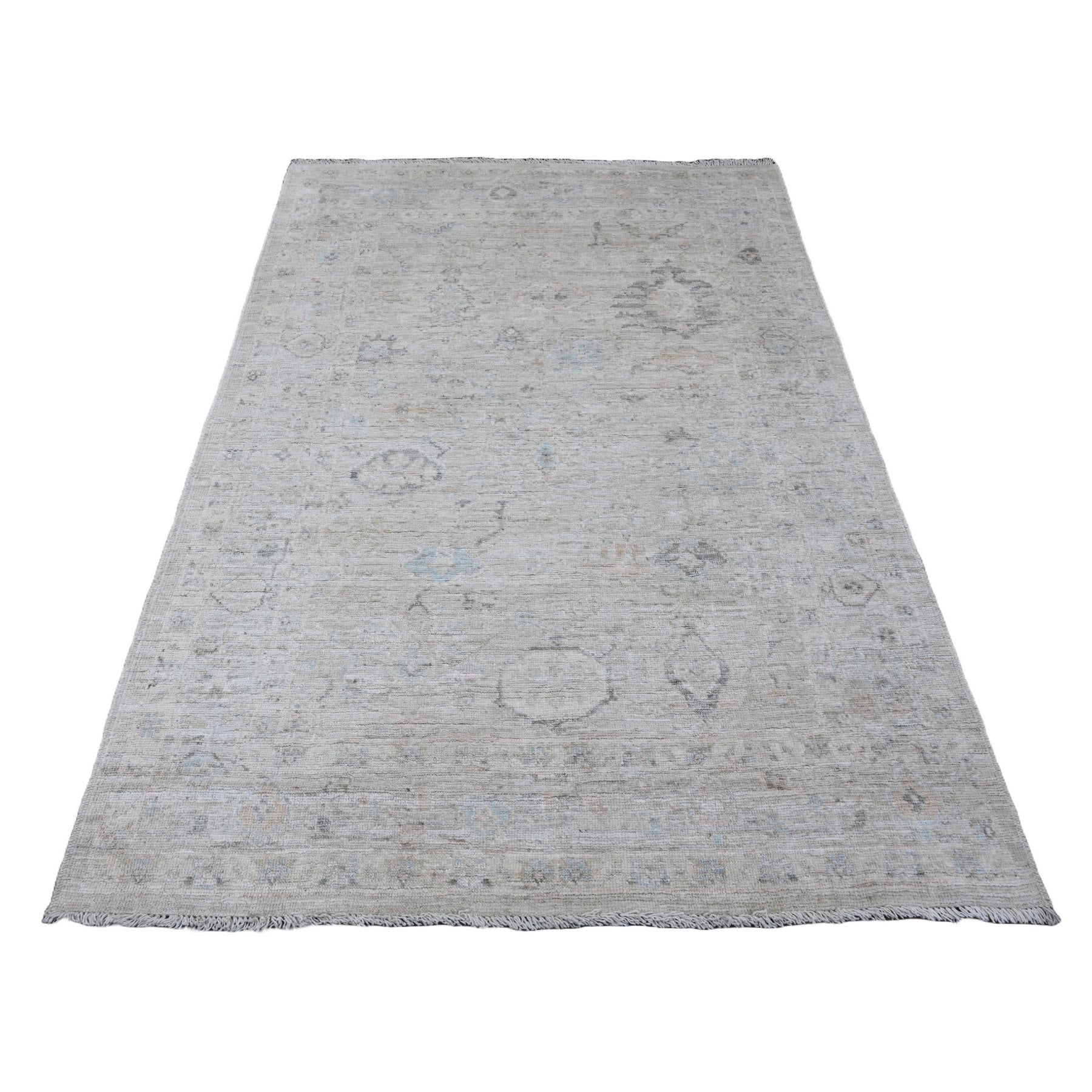 5'x6'10" Cloud Gray, Afghan Angora Oushak With All Over Pattern, Hand Knotted, Vegetable Dyes, 100% Wool, Oriental Rug FWR123642