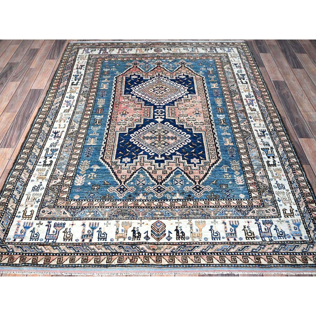 5'x6'3" Crepe Pink, Afghan Ersari With Turkish Knot, Caucasian Design Revival, Ancient Bird Figurines, Vegetable Dyes, Densely Woven, Hand Knotted, Soft Wool, Oriental Rug FWR3582