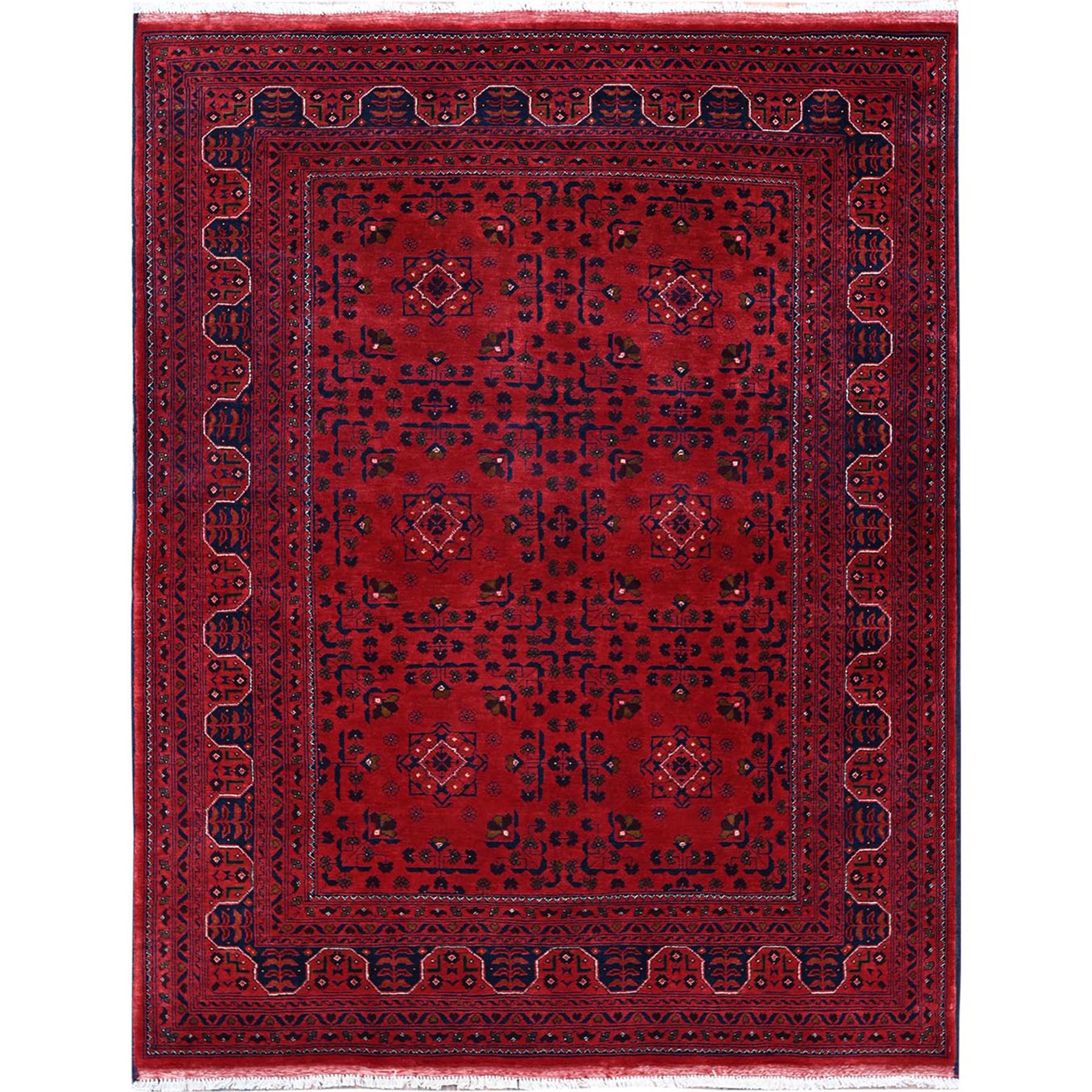 5'x6'4" Scarlet Red, Afghan Khamyab With Tribal Design, Pure Wool, Vegetable Dyes, Hand Knotted, Oriental Rug FWR3972