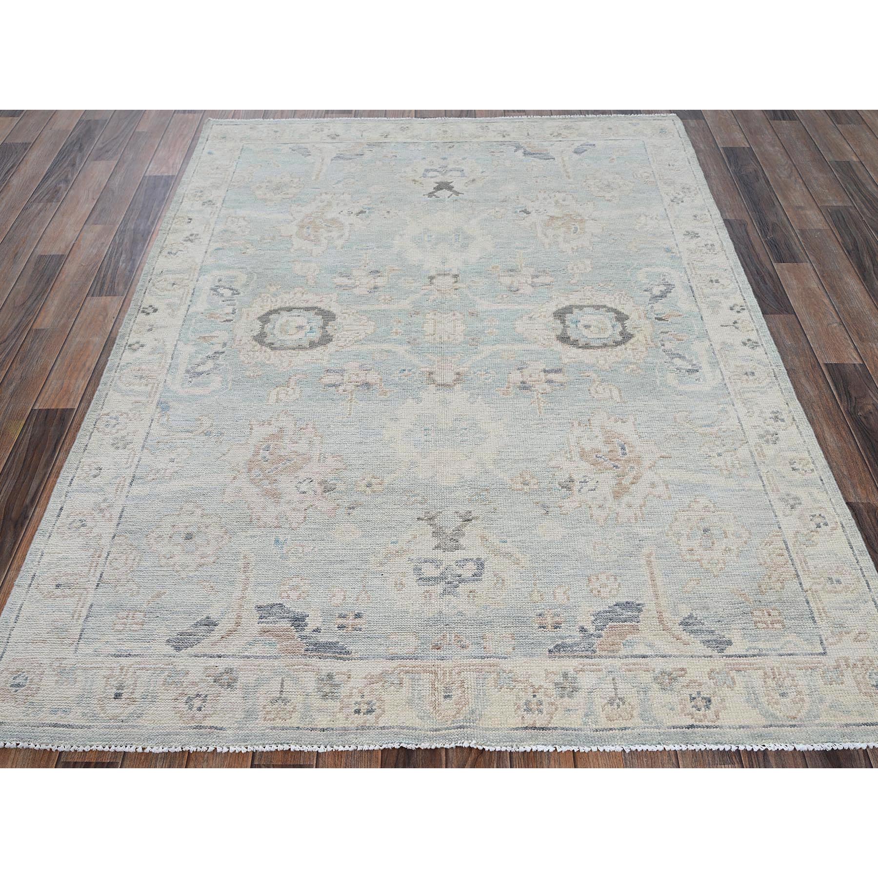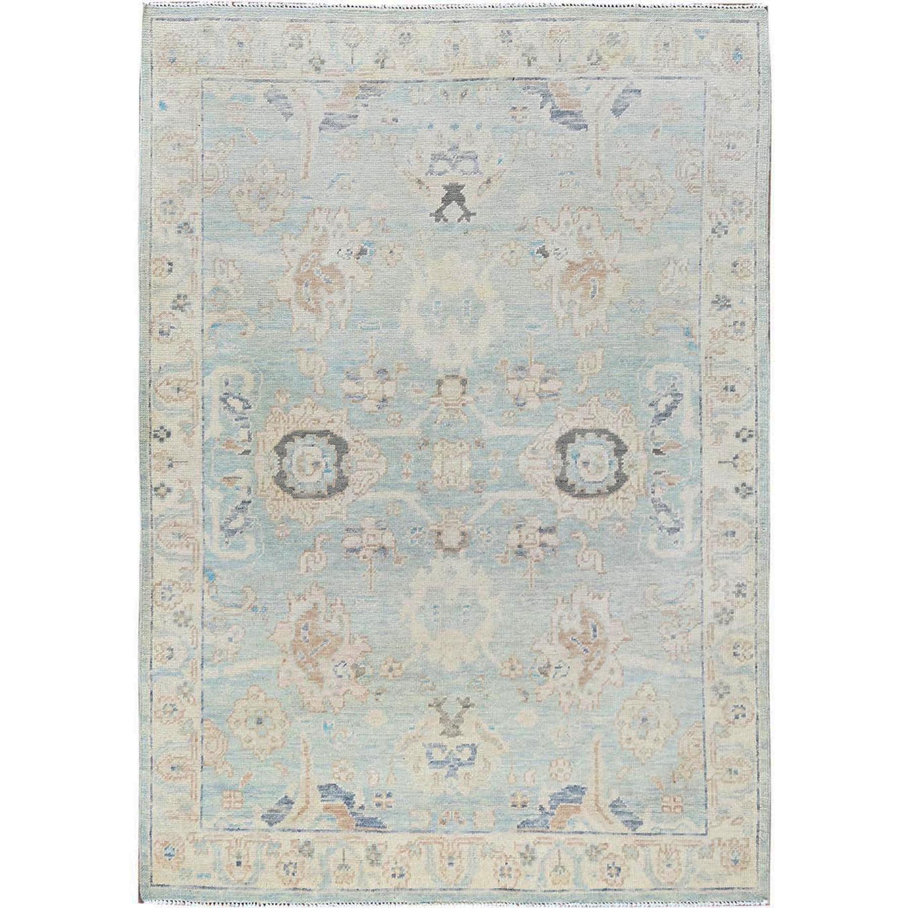 5'x6'9" Beau Blue, Turkish Knot, Anatolian Village Design, Zero Pile, Sheared Low, Hand Knotted, Pure Wool, Oriental Rug FWR12678