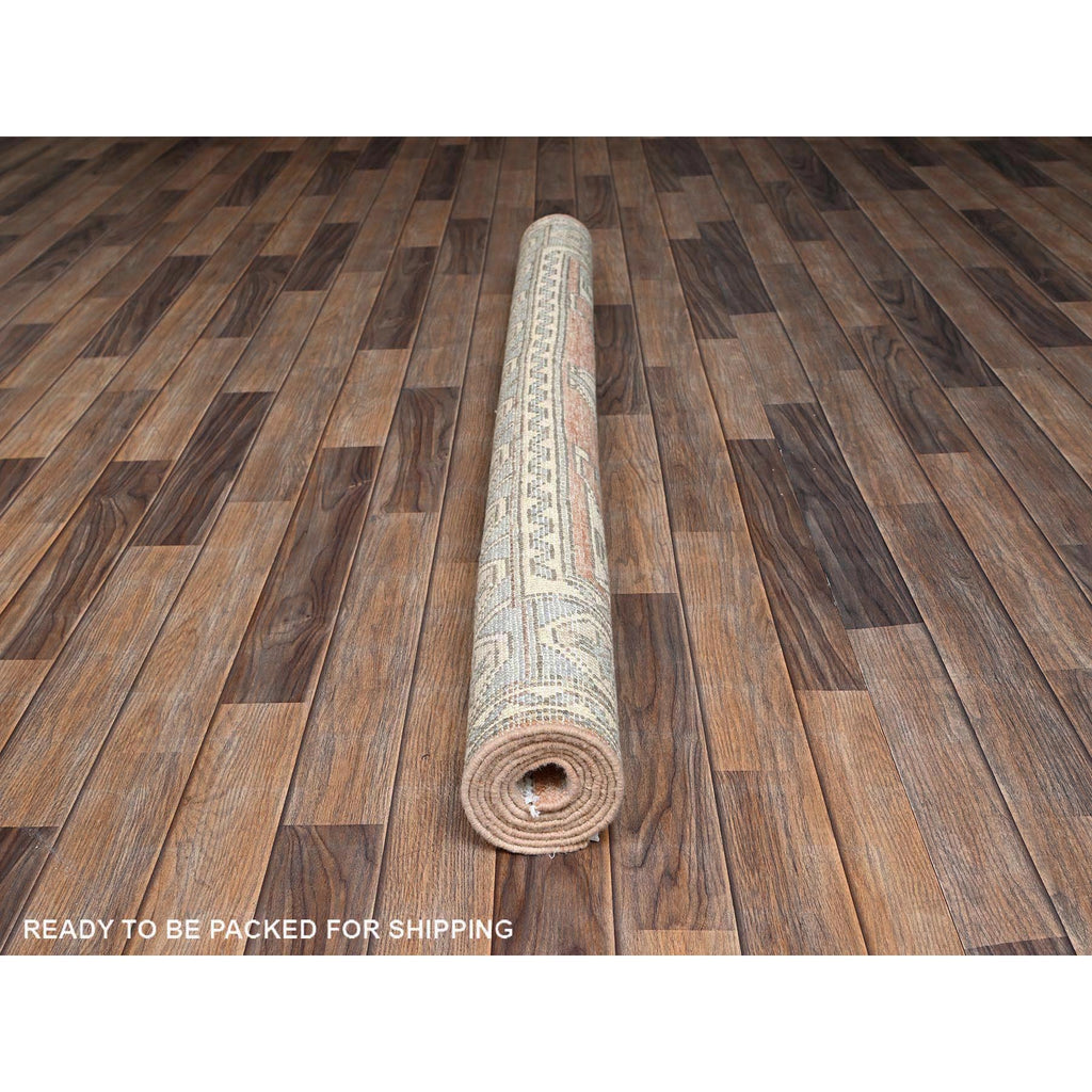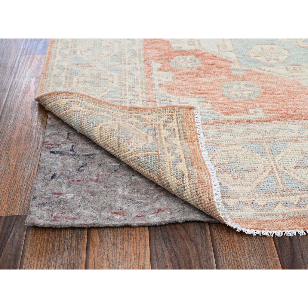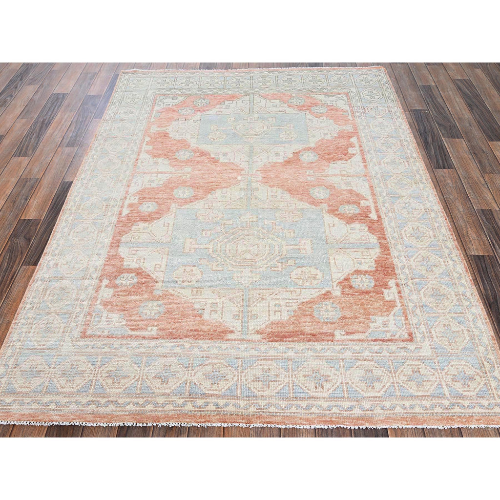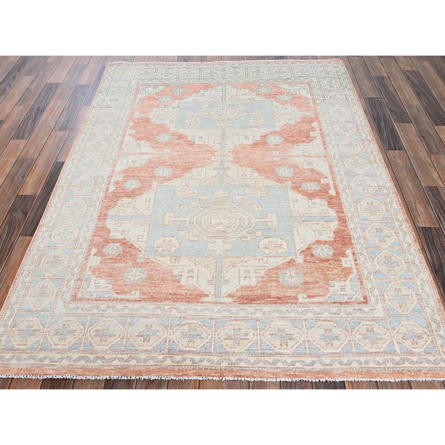 5'x6'9" Cantaloupe Orange, Hand Knotted, Turkish Knot, Zero Pile, Sheared Low, Anatolian Village Design, Pure Wool, Oriental Rug FWR12636
