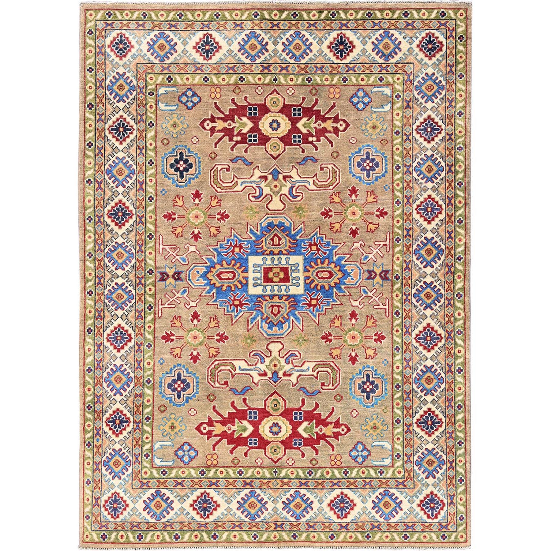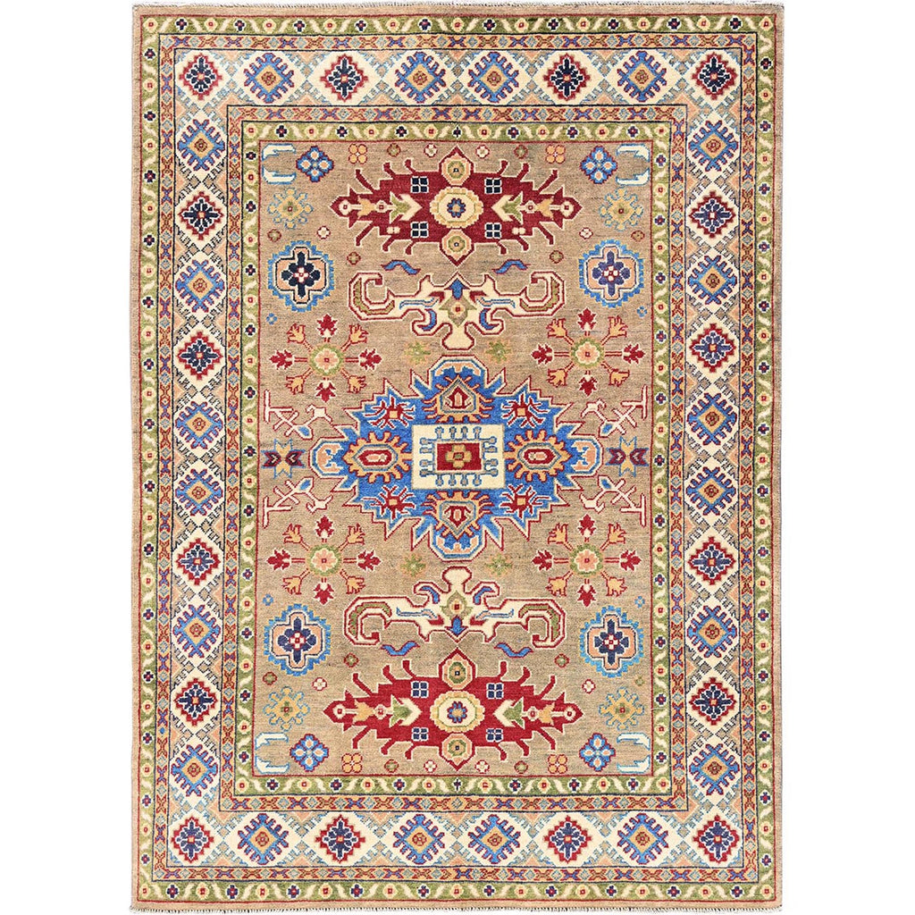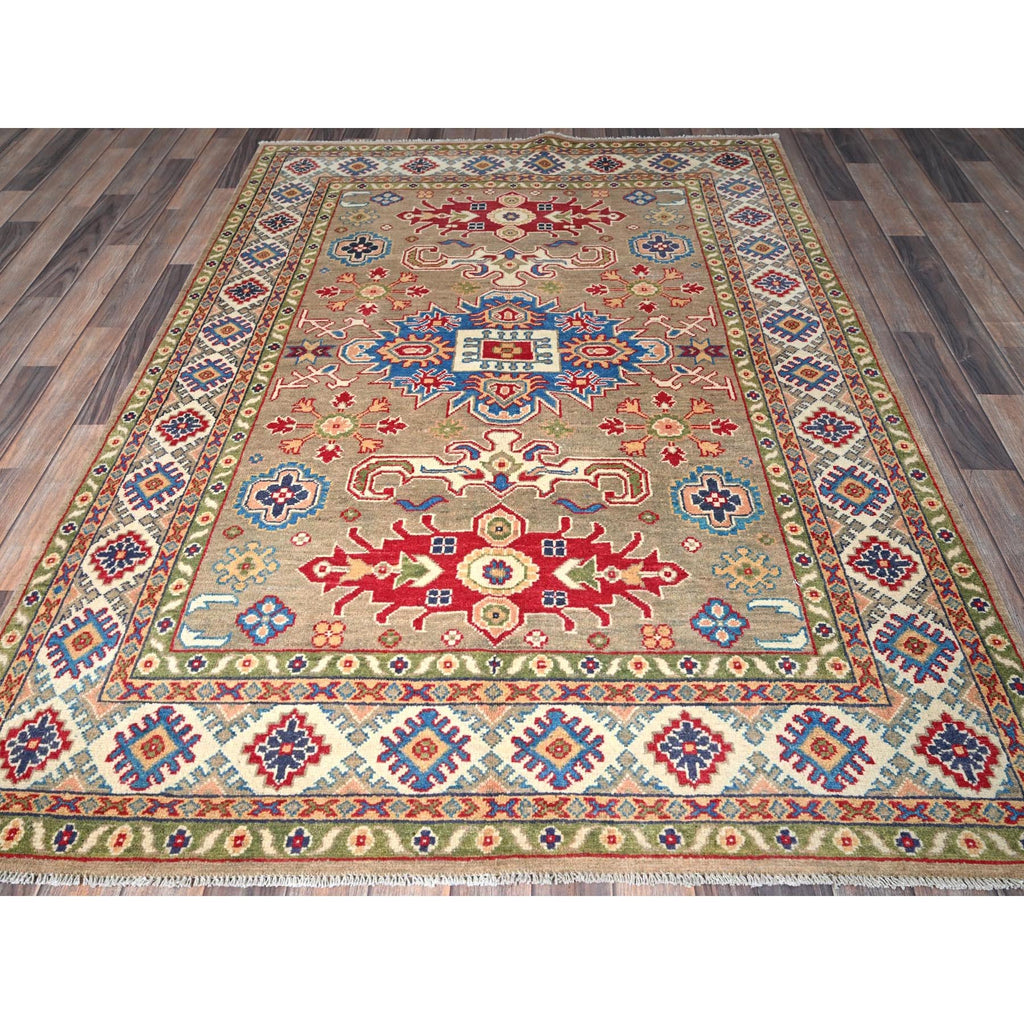 5'x6'9" Tawny Brown, Kazak With Tribal Medallion Design, Natural Dyes, Denser Weave, Hand Knotted, 100% Wool, Oriental Rug FWR1974