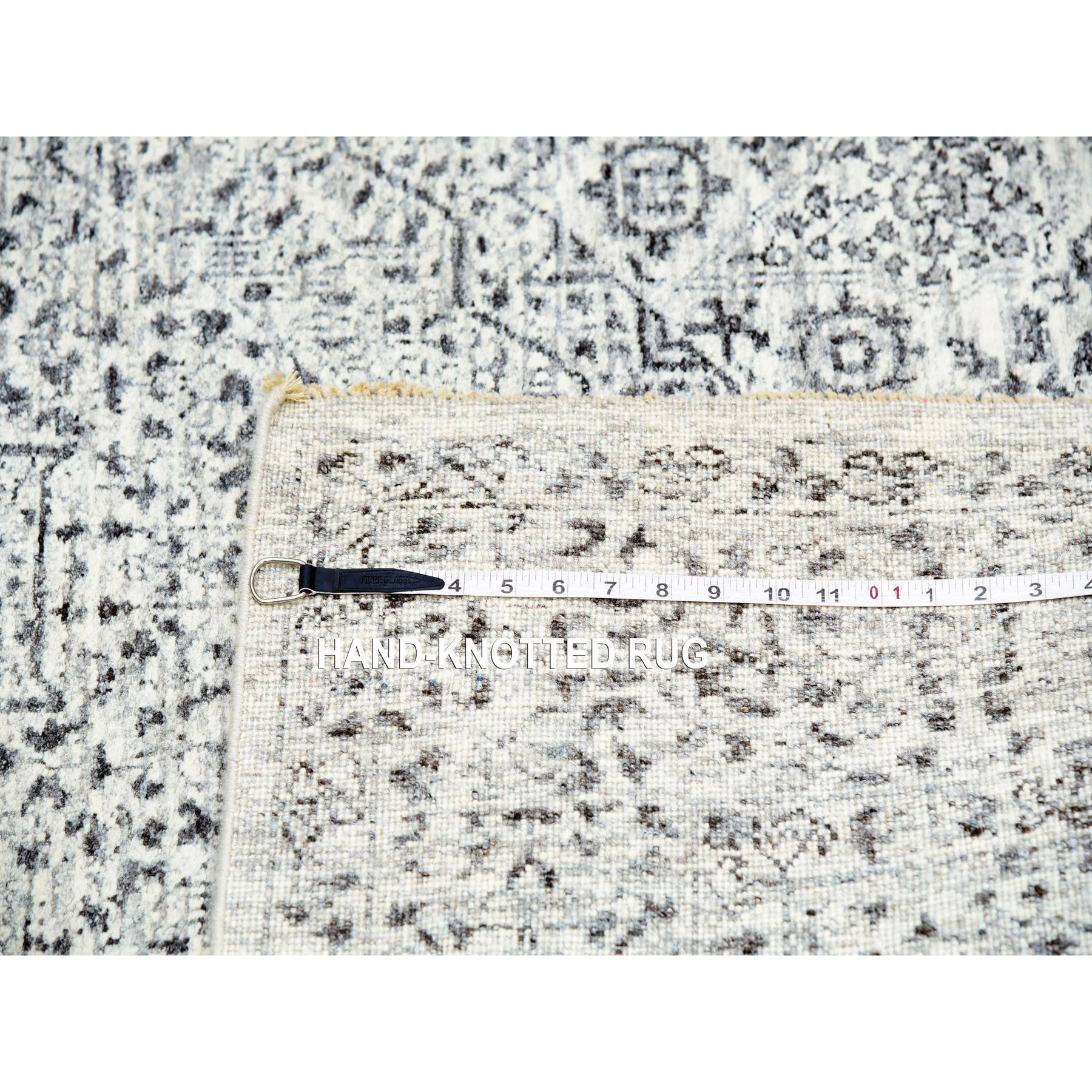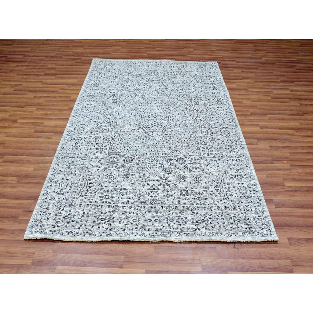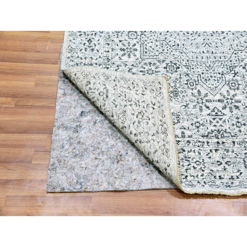 5'x7'1" Atrium White, Mamluk Design, Tone On Tone, Undyed Luxurious Wool, Hand Knotted, Denser Weave, Oriental Rug FWR478818