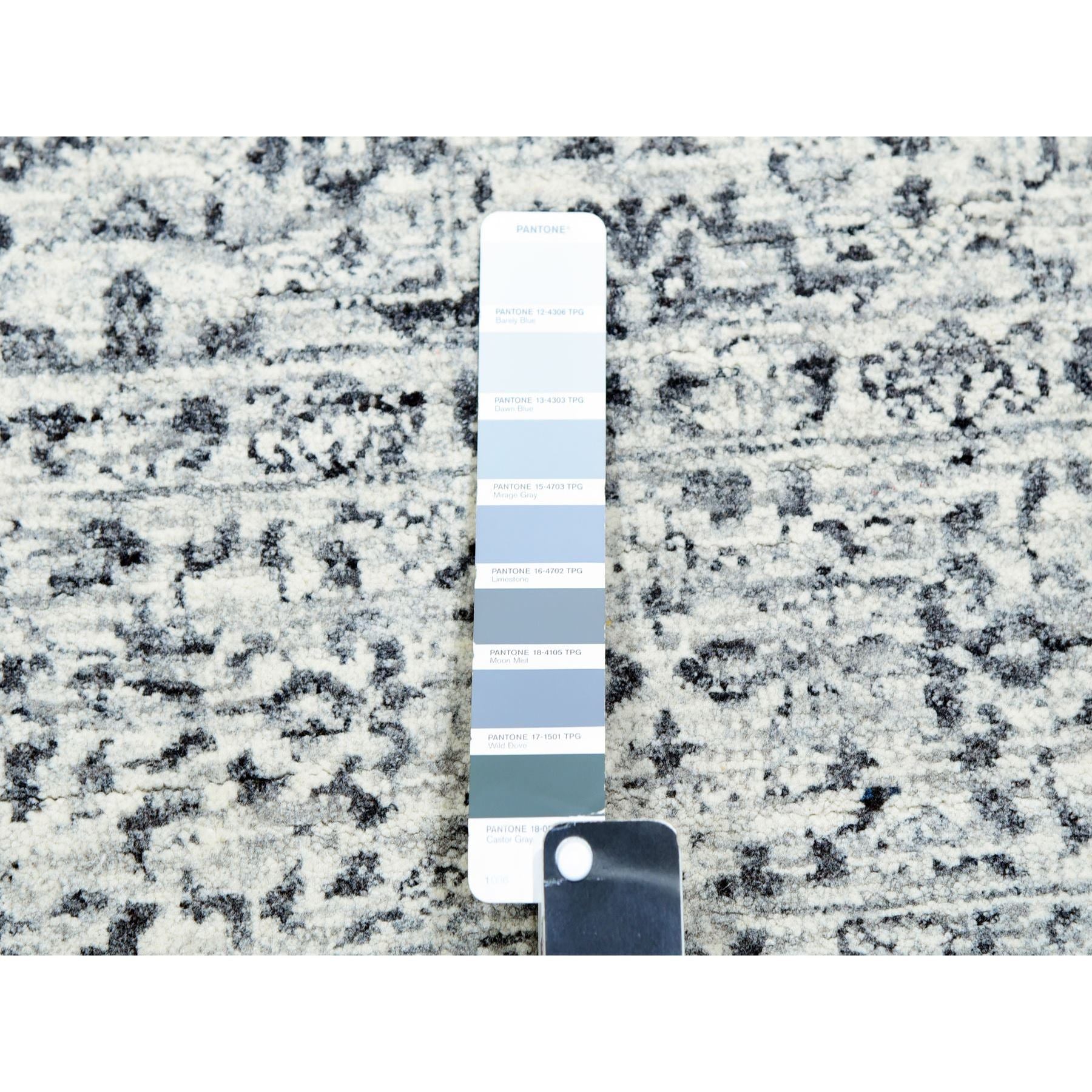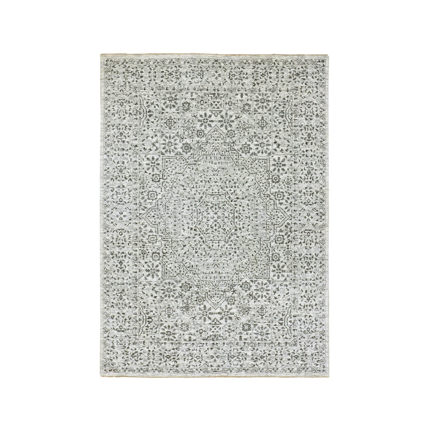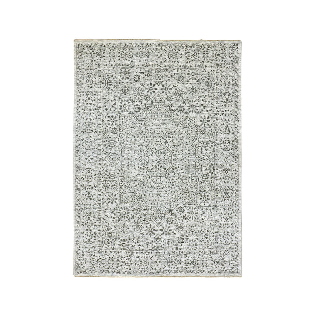 5'x7'1" Atrium White, Mamluk Design, Tone On Tone, Undyed Luxurious Wool, Hand Knotted, Denser Weave, Oriental Rug FWR478818