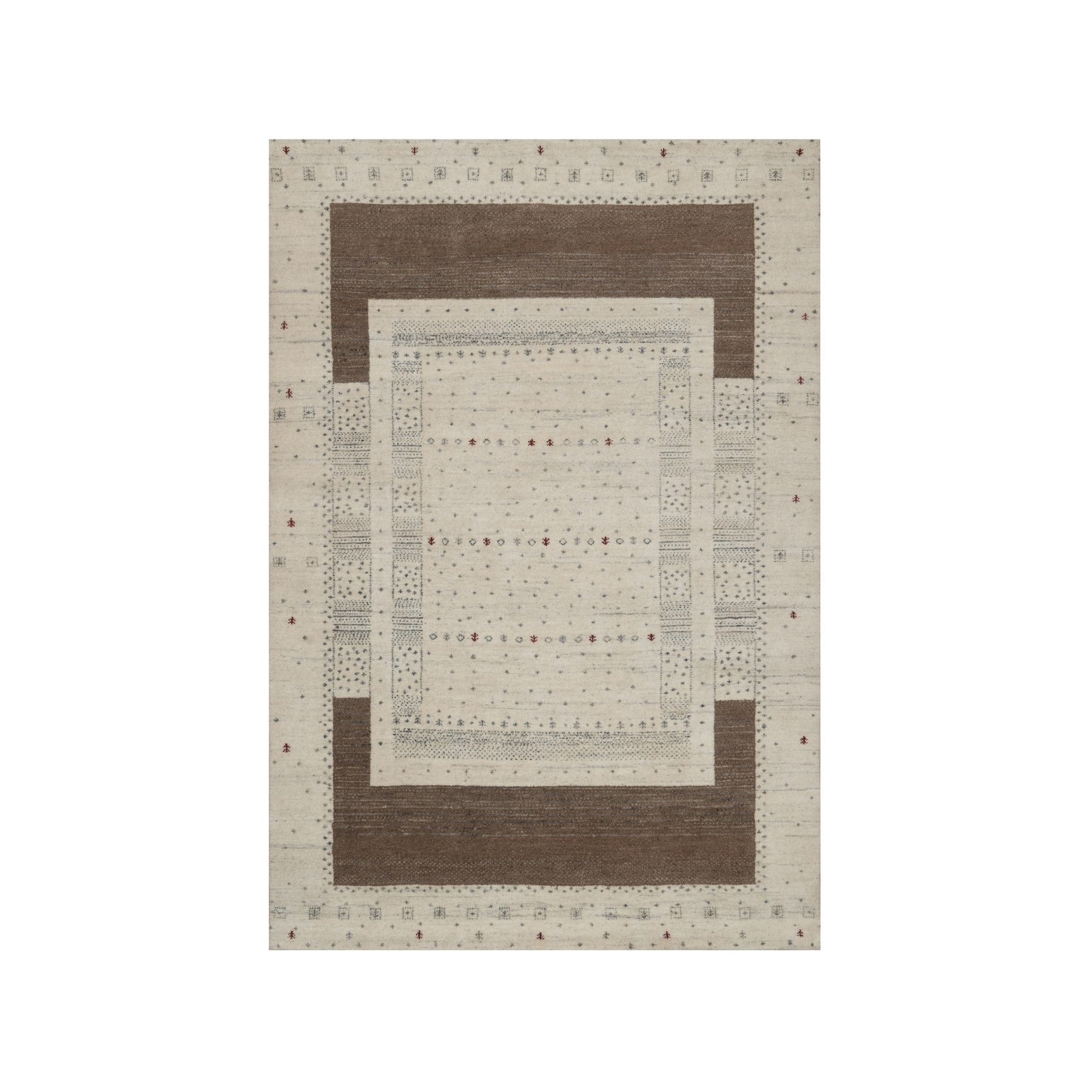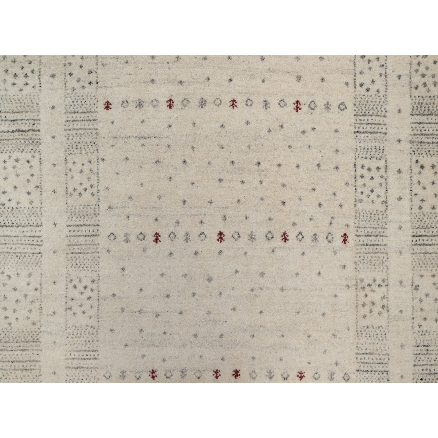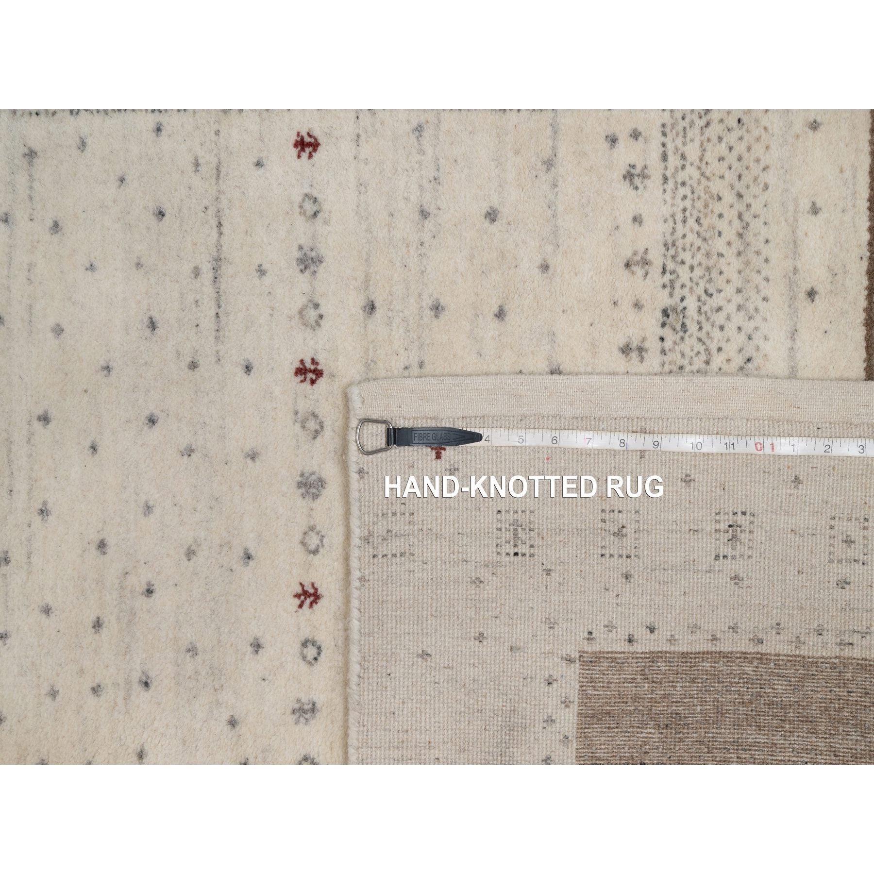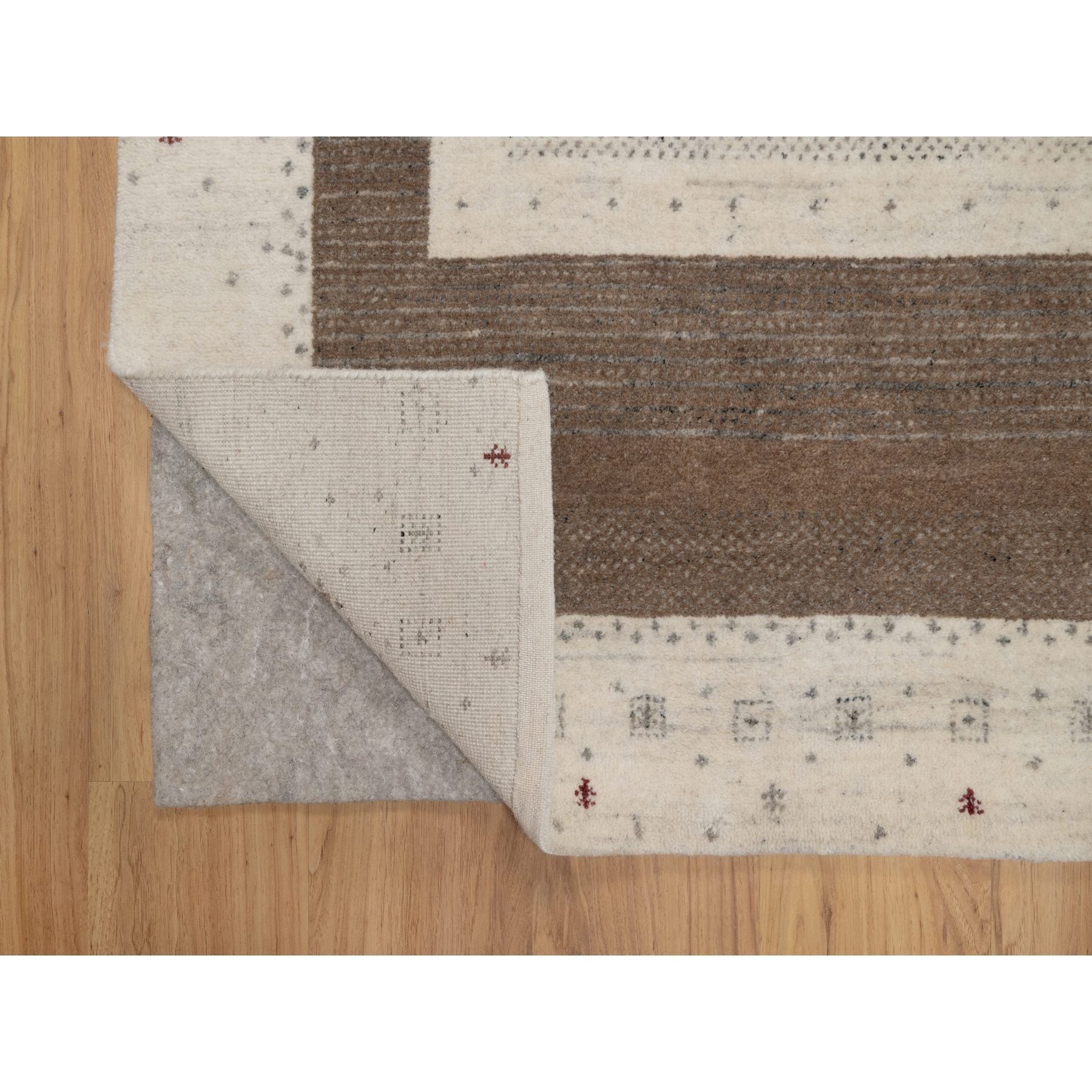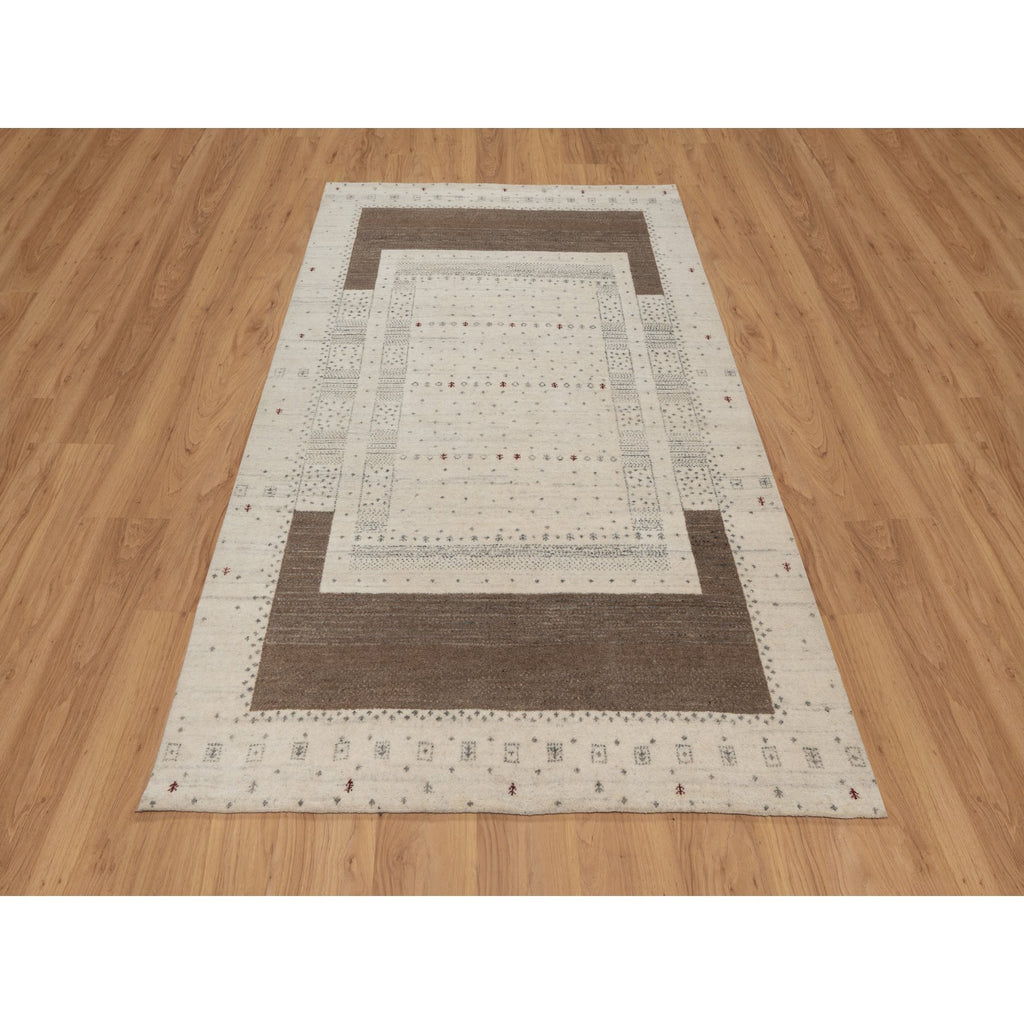 5'x7'10" Chiffon White With Brown, Lori Buft Gabbeh With Small Animal Figurines, Modern Striae Design, Thick And Plush, Soft Pile, Organic Wool, Hand Knotted, Oriental Rug FWR547602