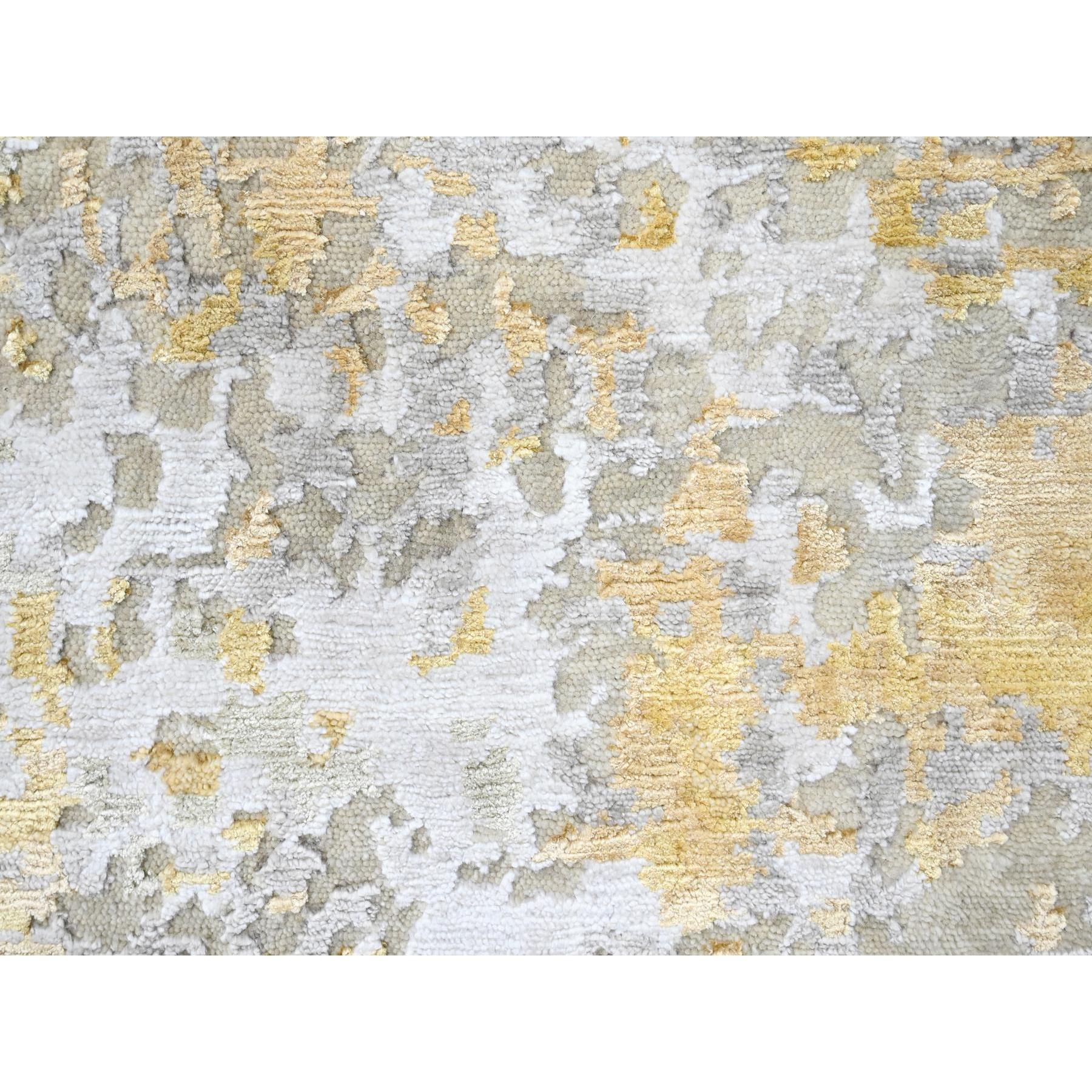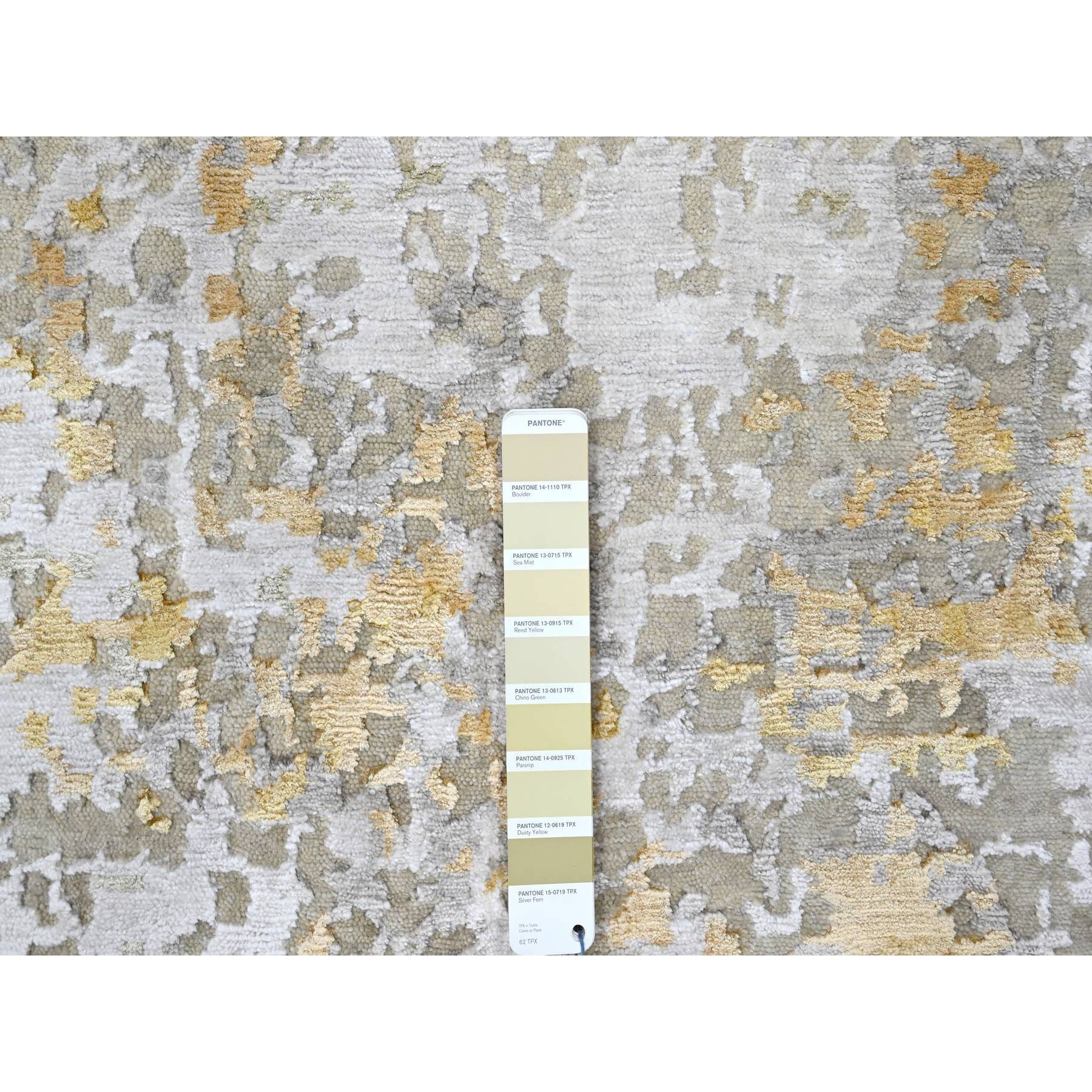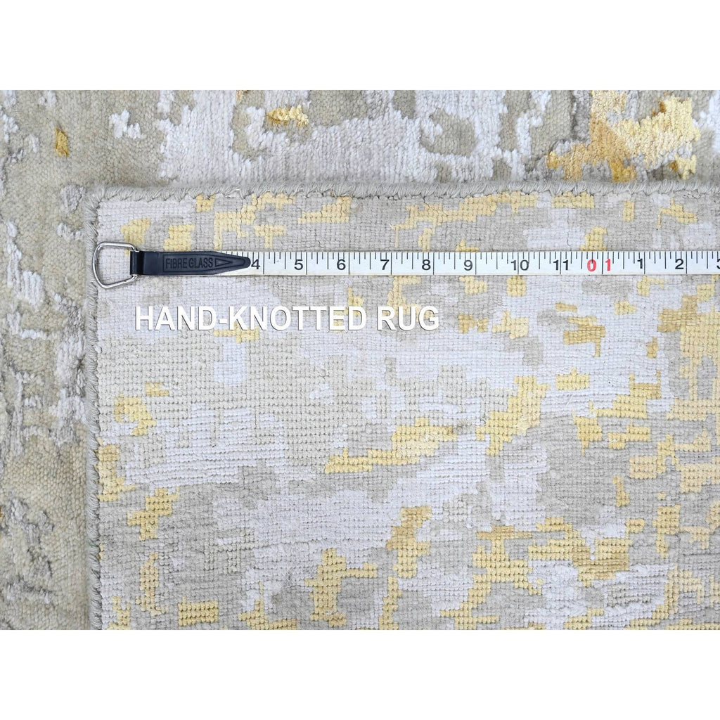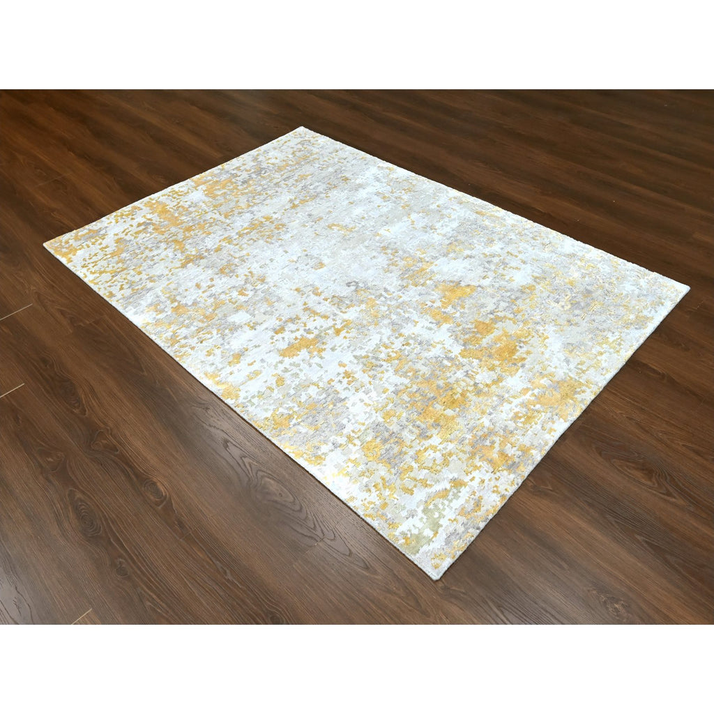 5'x7' Beige With Gold, Hand Knotted, Abstract Design, Wool And Silk, Hi-low Pile, Oriental Rug FWR61200