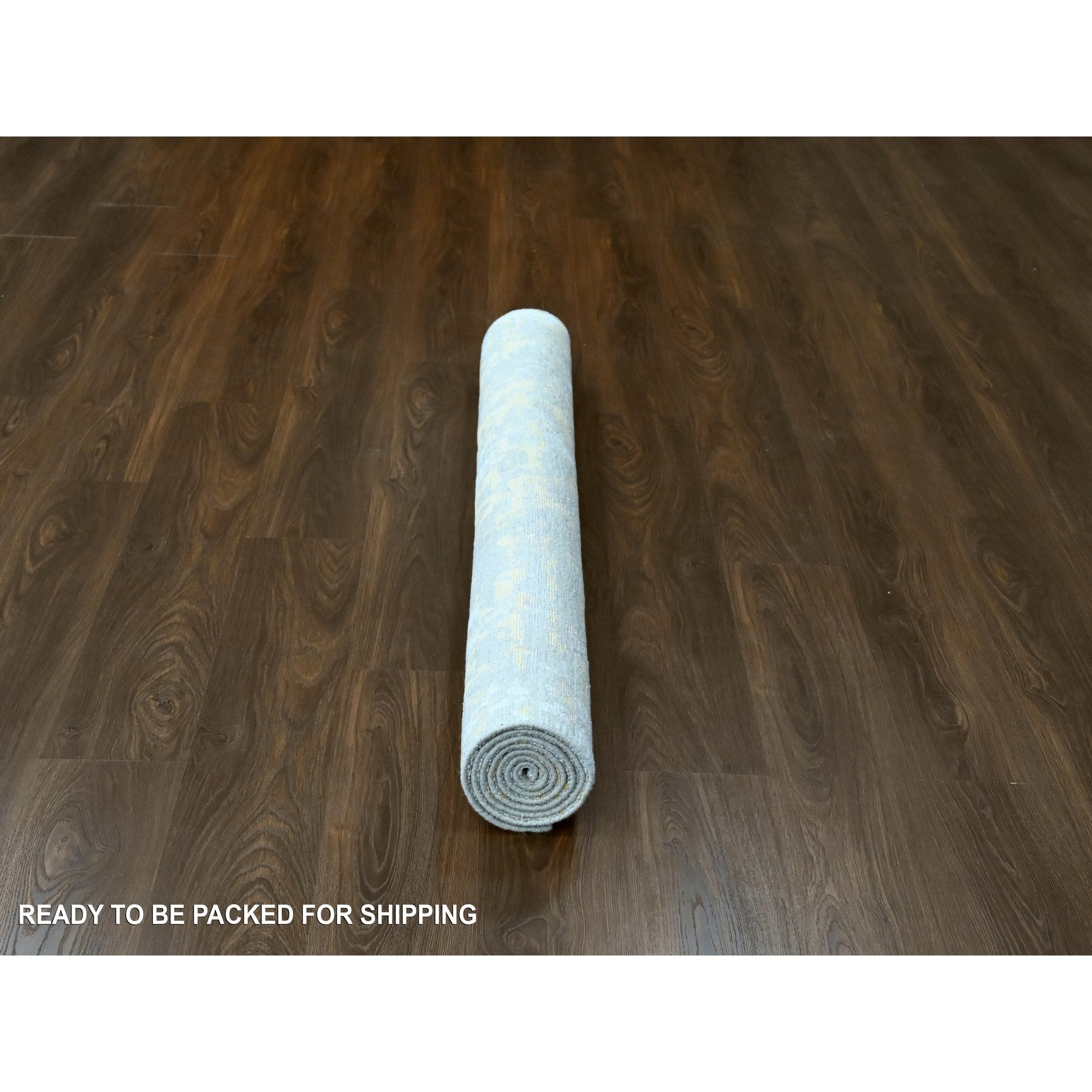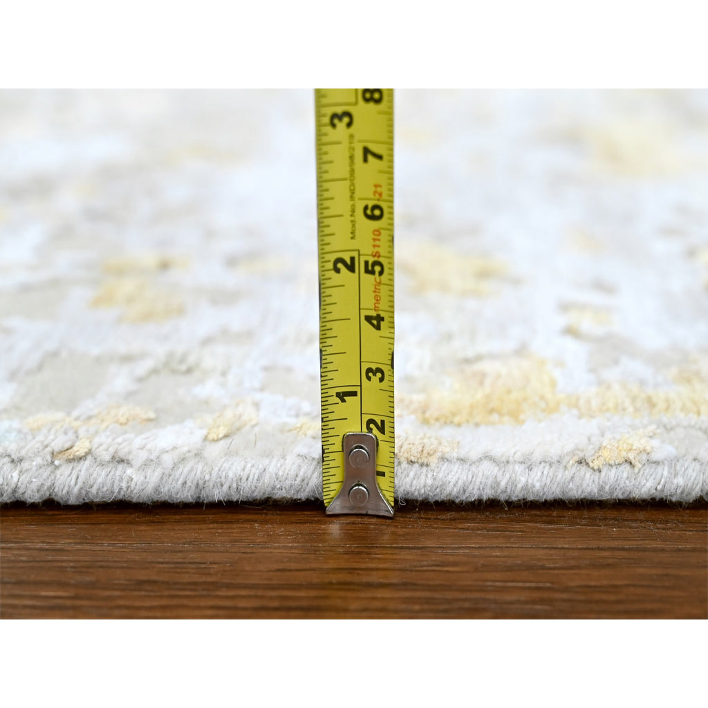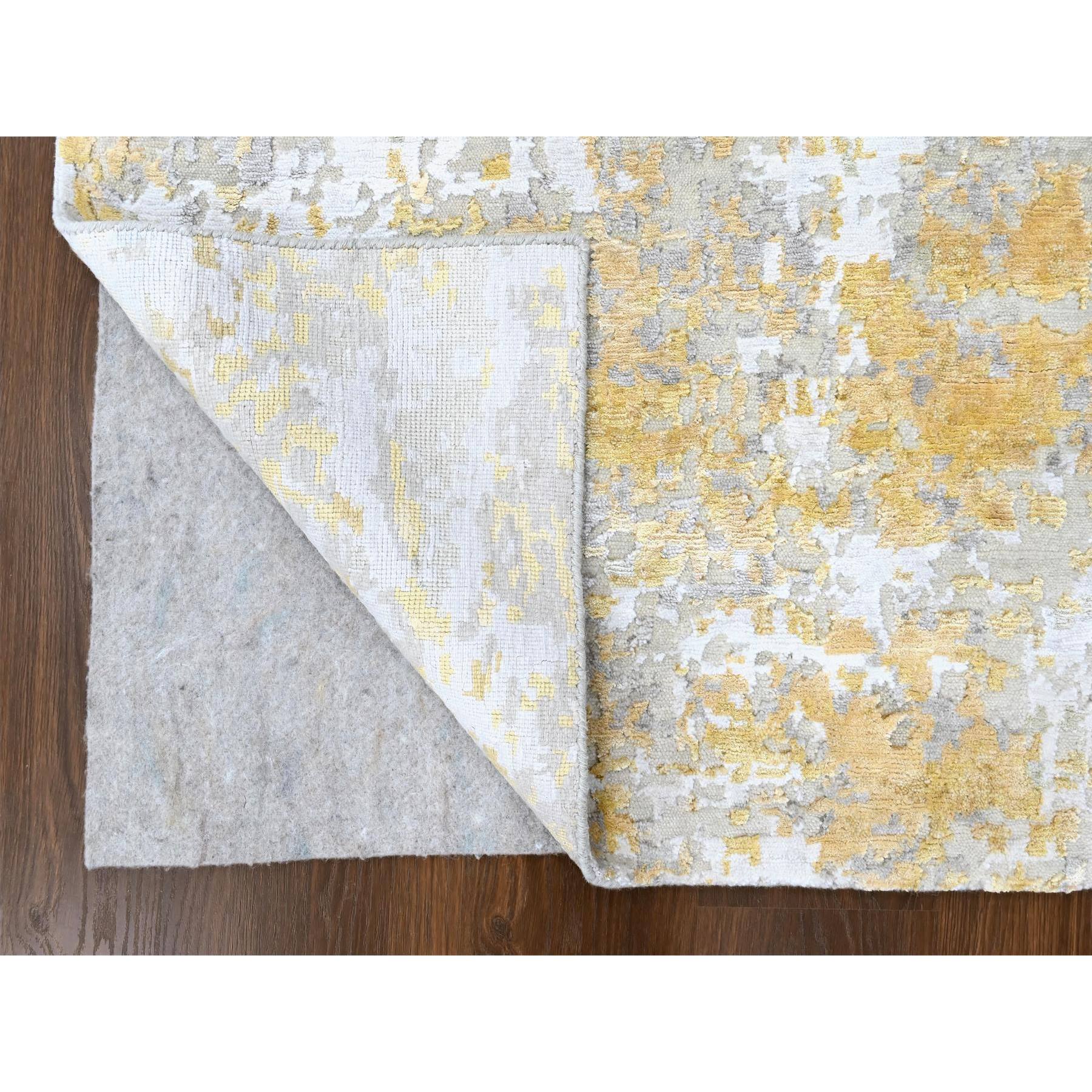5'x7' Beige With Gold, Hand Knotted, Abstract Design, Wool And Silk, Hi-low Pile, Oriental Rug FWR61200