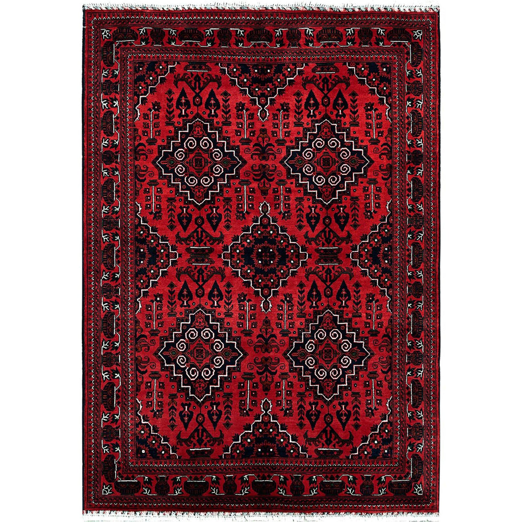 5'x7' Chili Red, Hand Knotted, Afghan Khamyab With Geometric Medallions Design, Pure Wool, Natural Dyes, Oriental Rug FWR3942