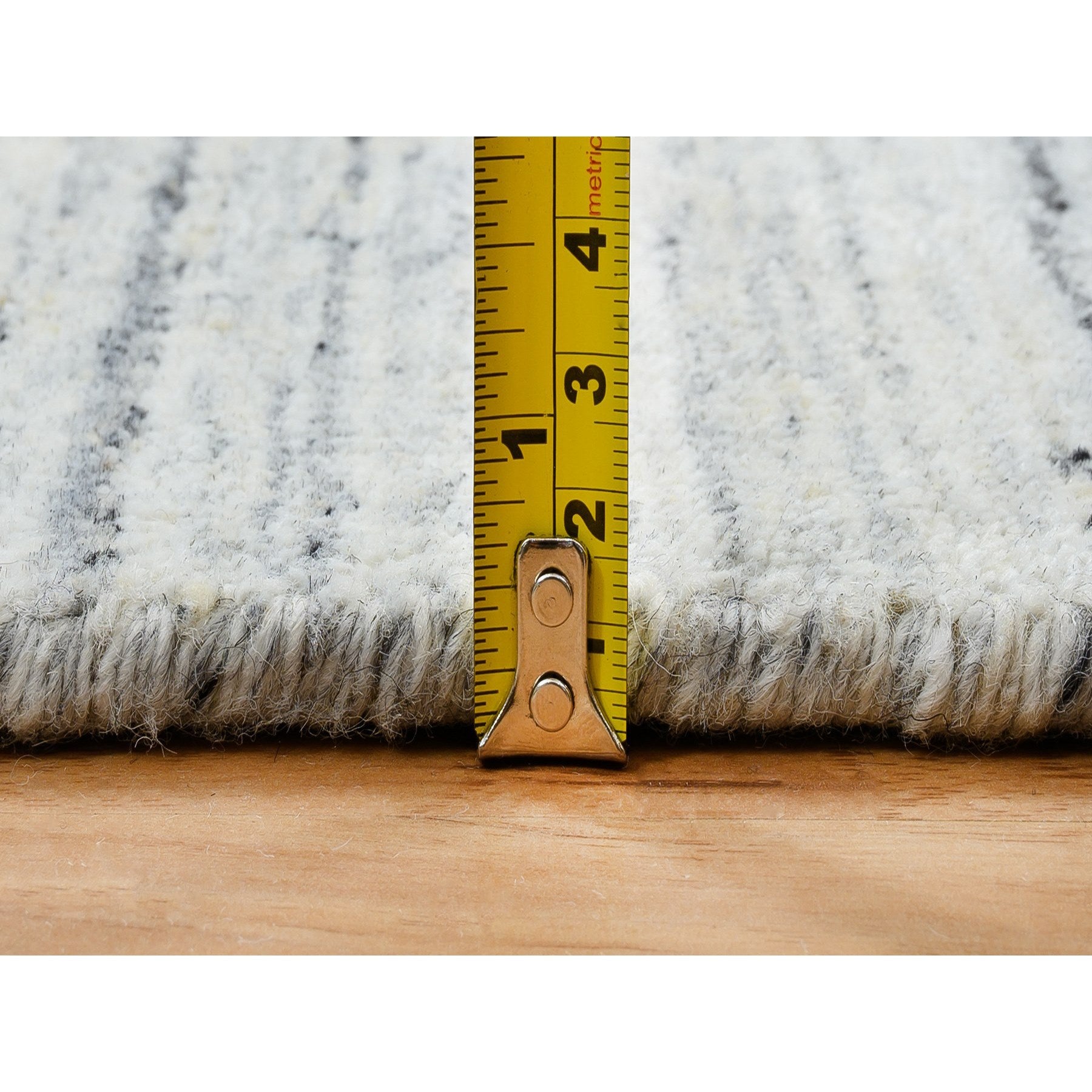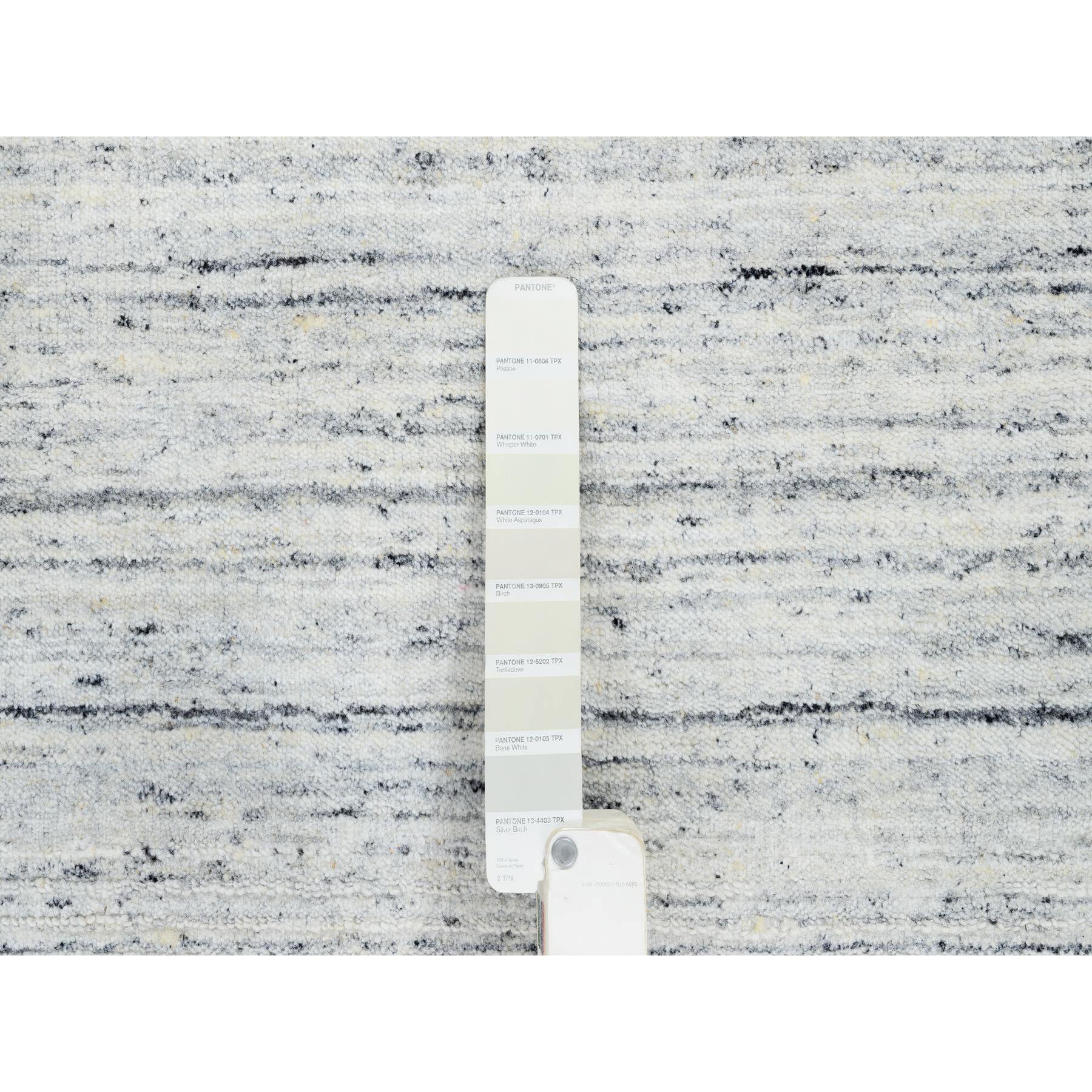 5'x7' Ivory, Hand Loomed Plain Modern Striae Design, Soft Pile Extra Soft Wool, Oriental Rug FWR388674