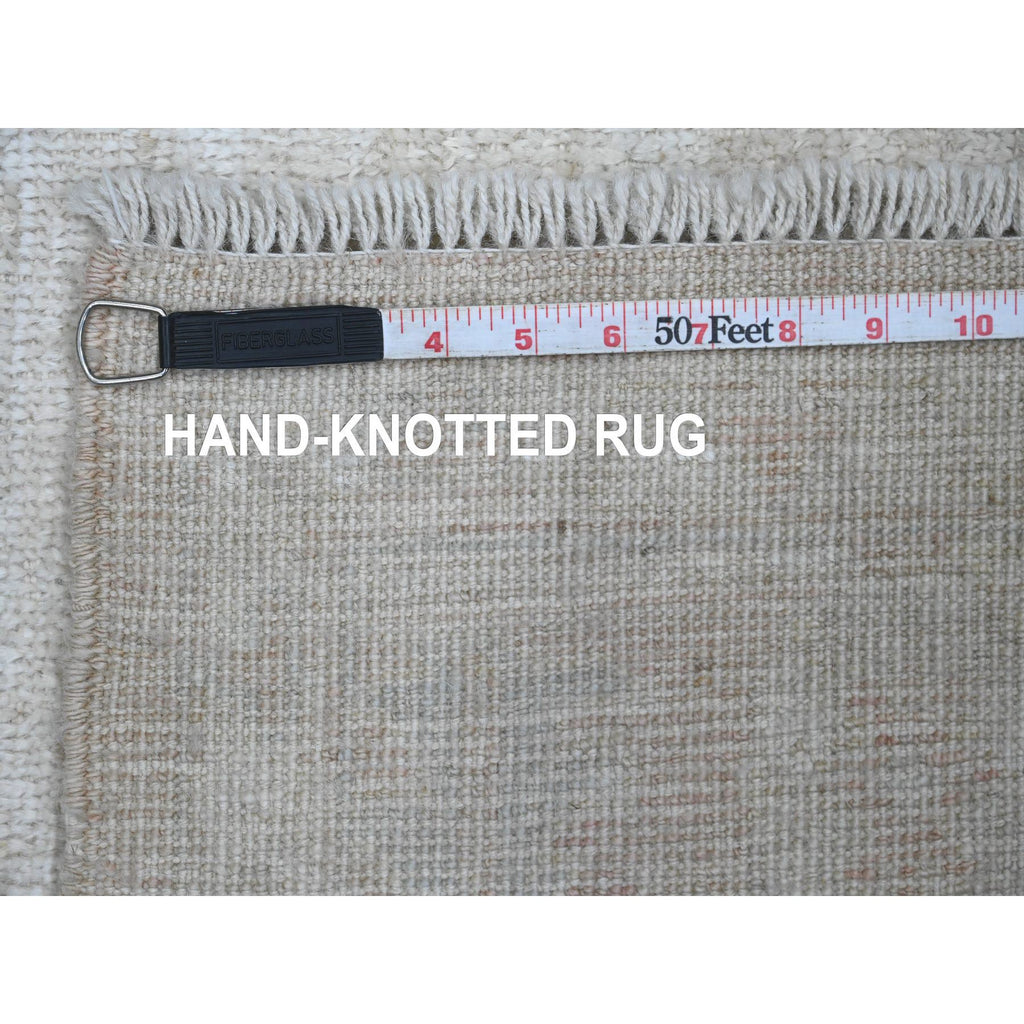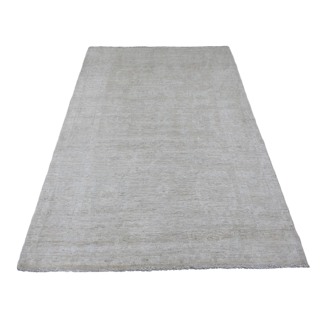 5'x7' Lace White, Hand Knotted, Afghan Angora Oushak With All Over Pattern, Vegetable Dyes, Pure Wool, Oriental Rug FWR124674
