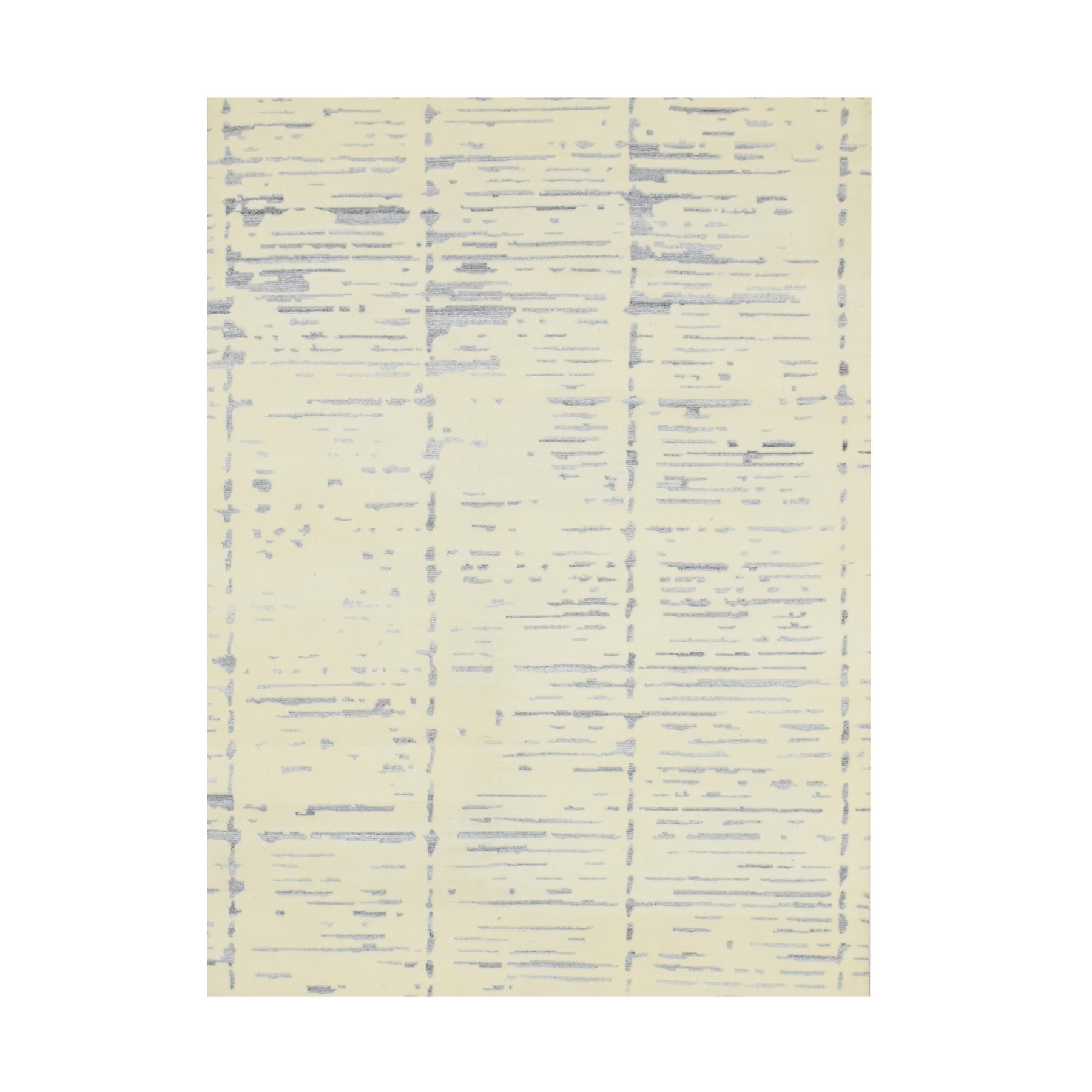5'x7' Linen White, Modern Design With Textured Weave, Tone On Tone, Hand Knotted, Pure Wool, Oriental Rug FWR453876