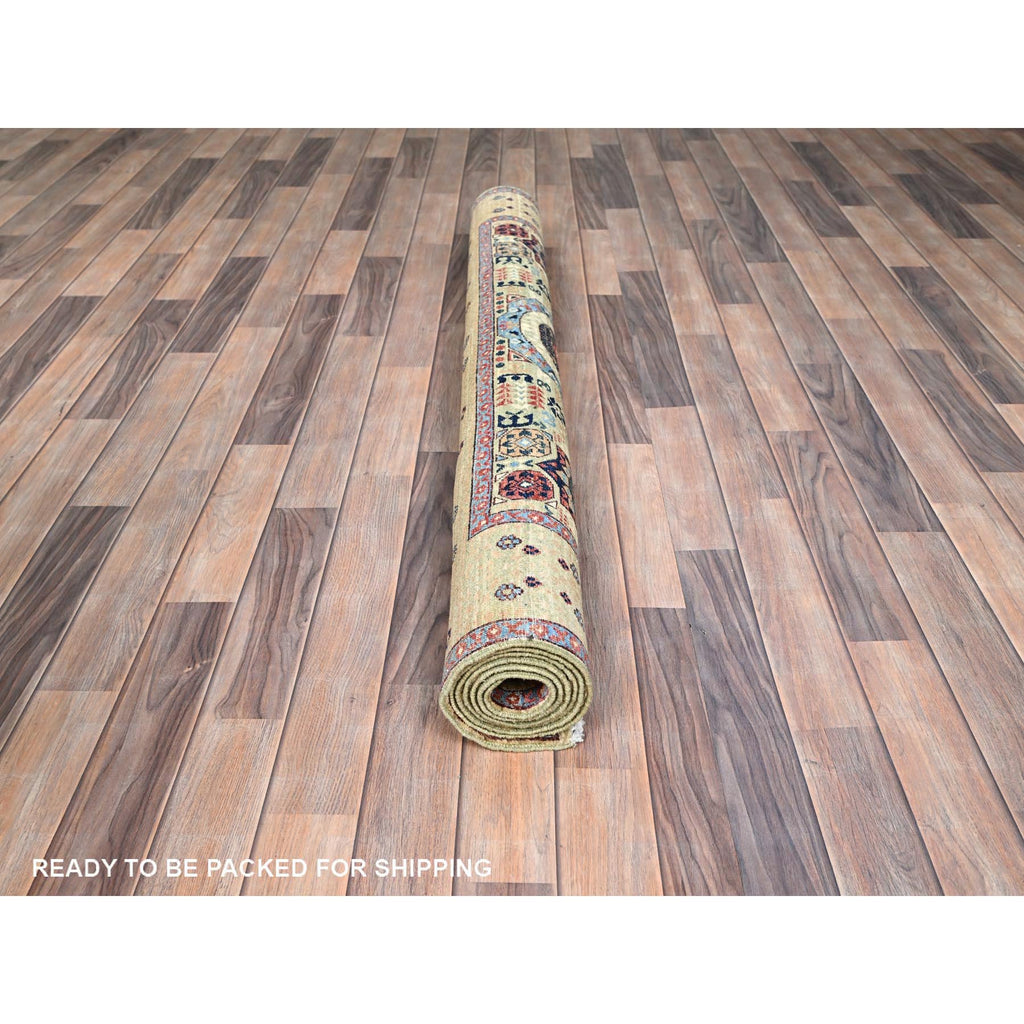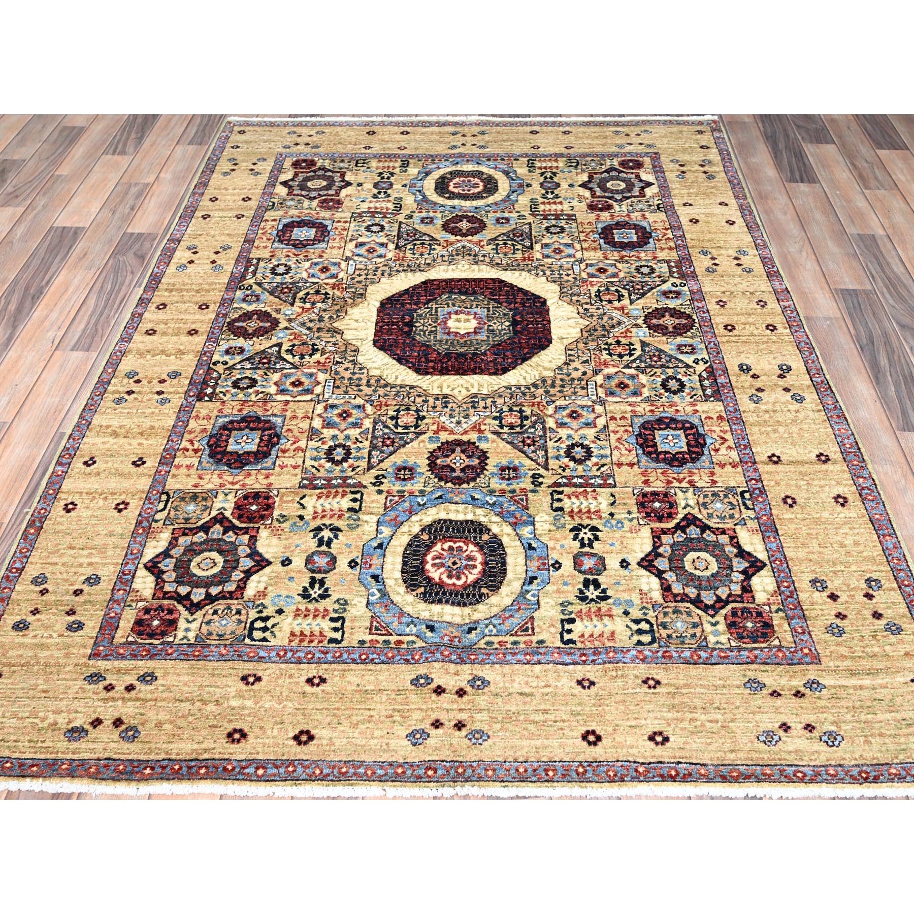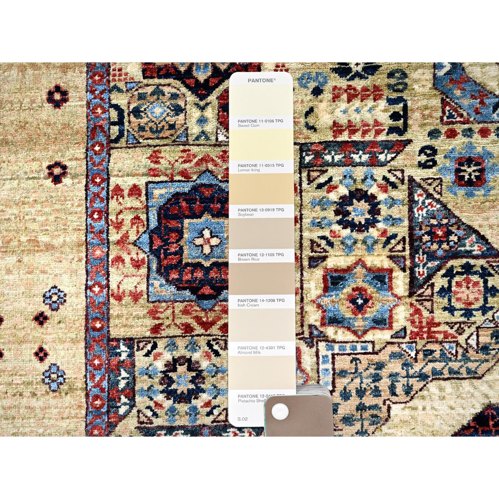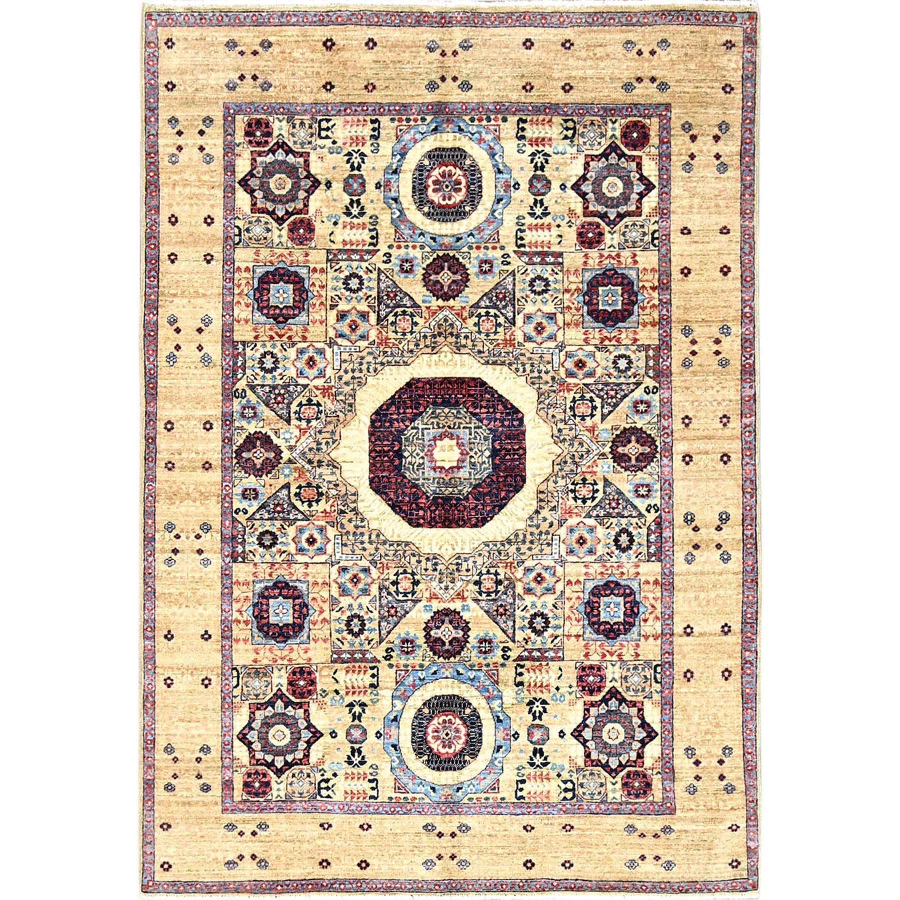 5'x7' Powder White, Vegetable Dyes, Hand Knotted, Natural Wool, 14th Century Mamluk Dynasty Pattern, 200 Kpsi, Oriental Rug FWR515166