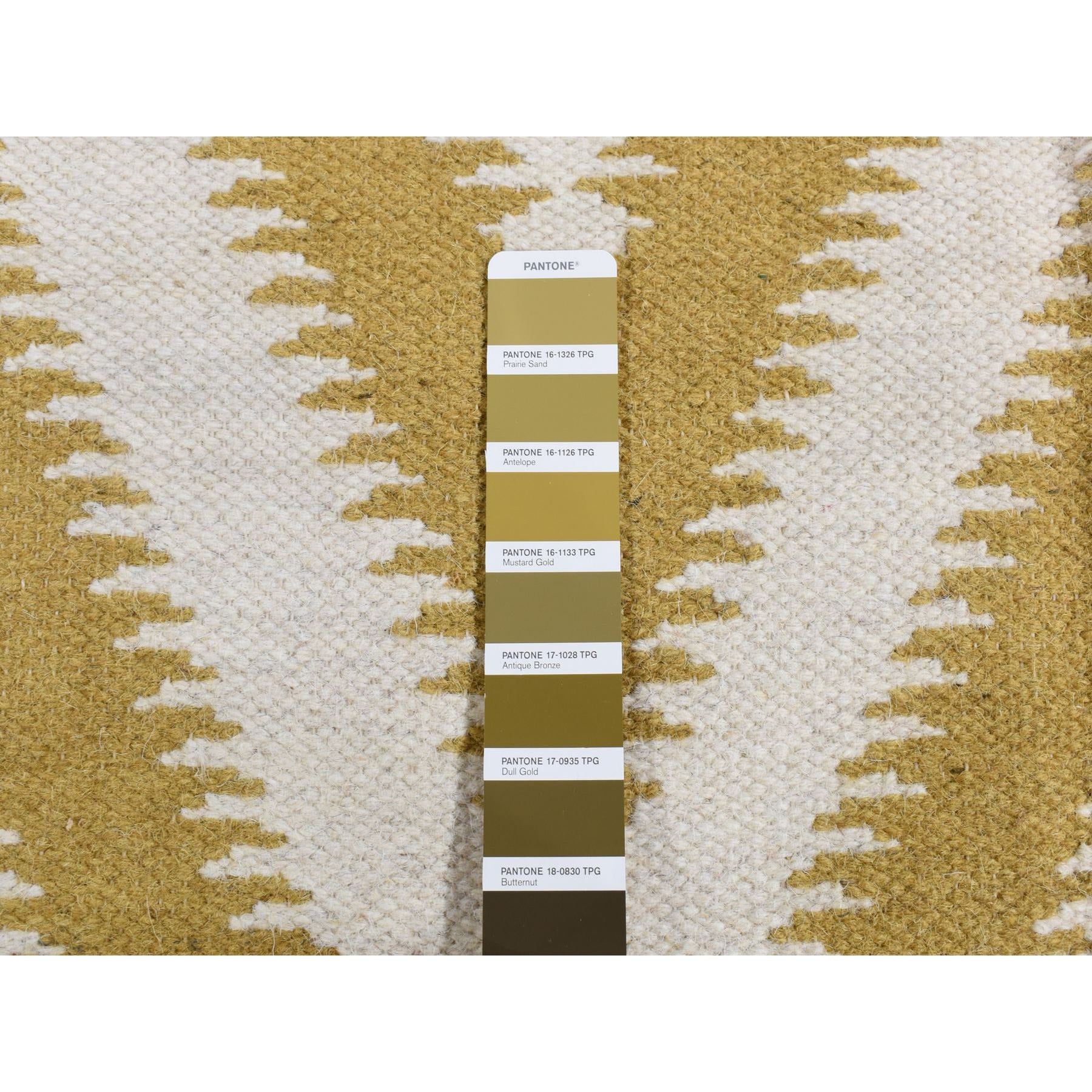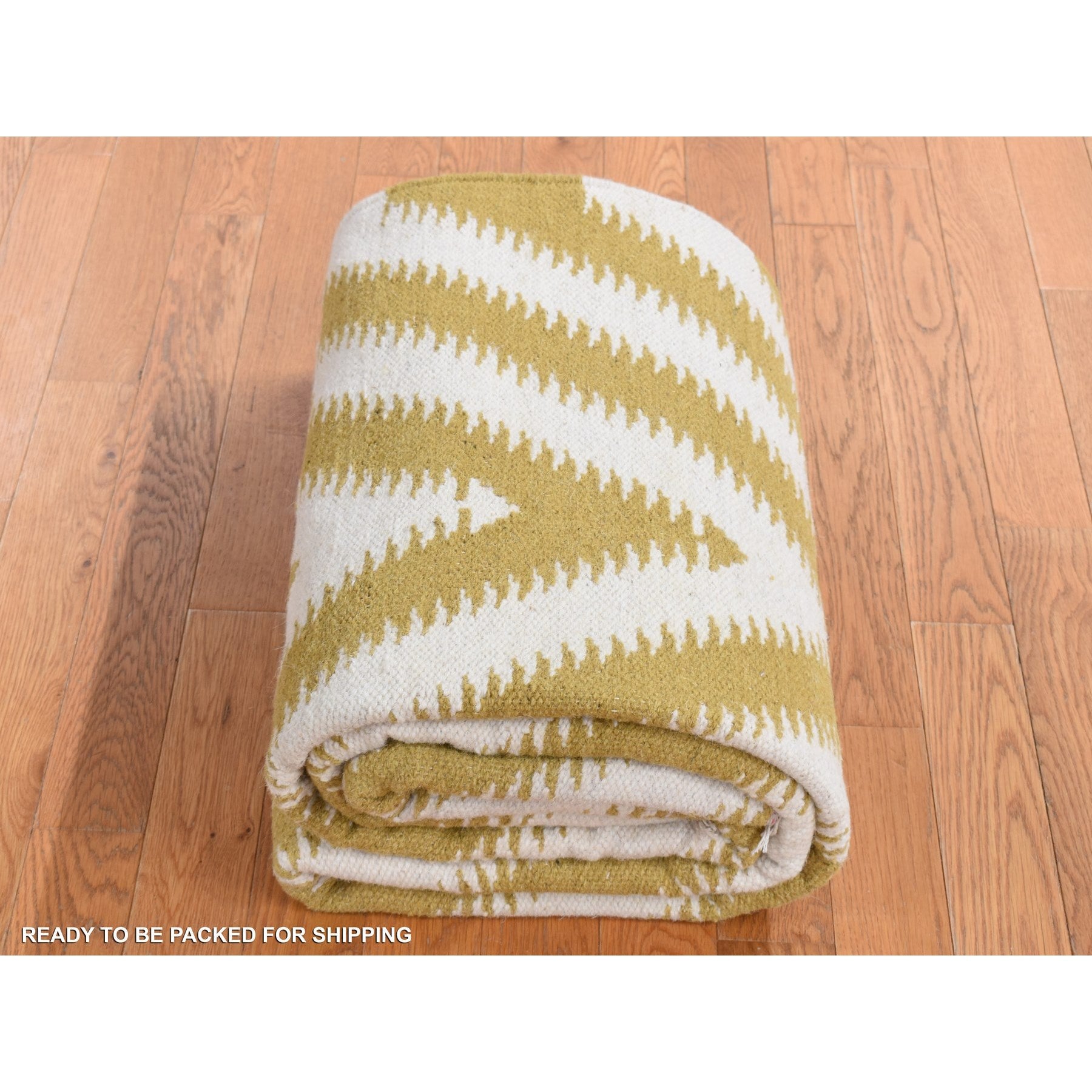 5'x8' Trombone Yellow, Pure Wool, Flat Weave Kilim, Chevron Design, Hand Woven, Oriental Rug FWR527322