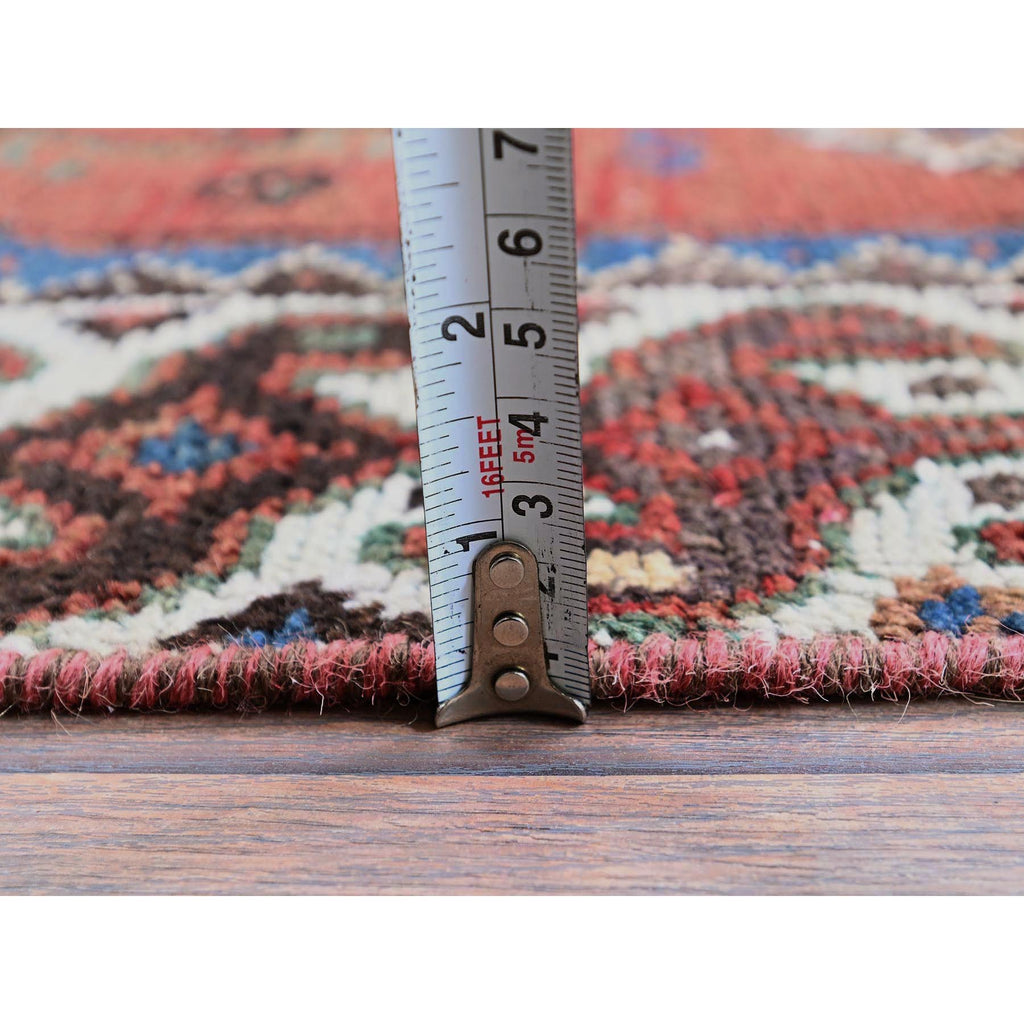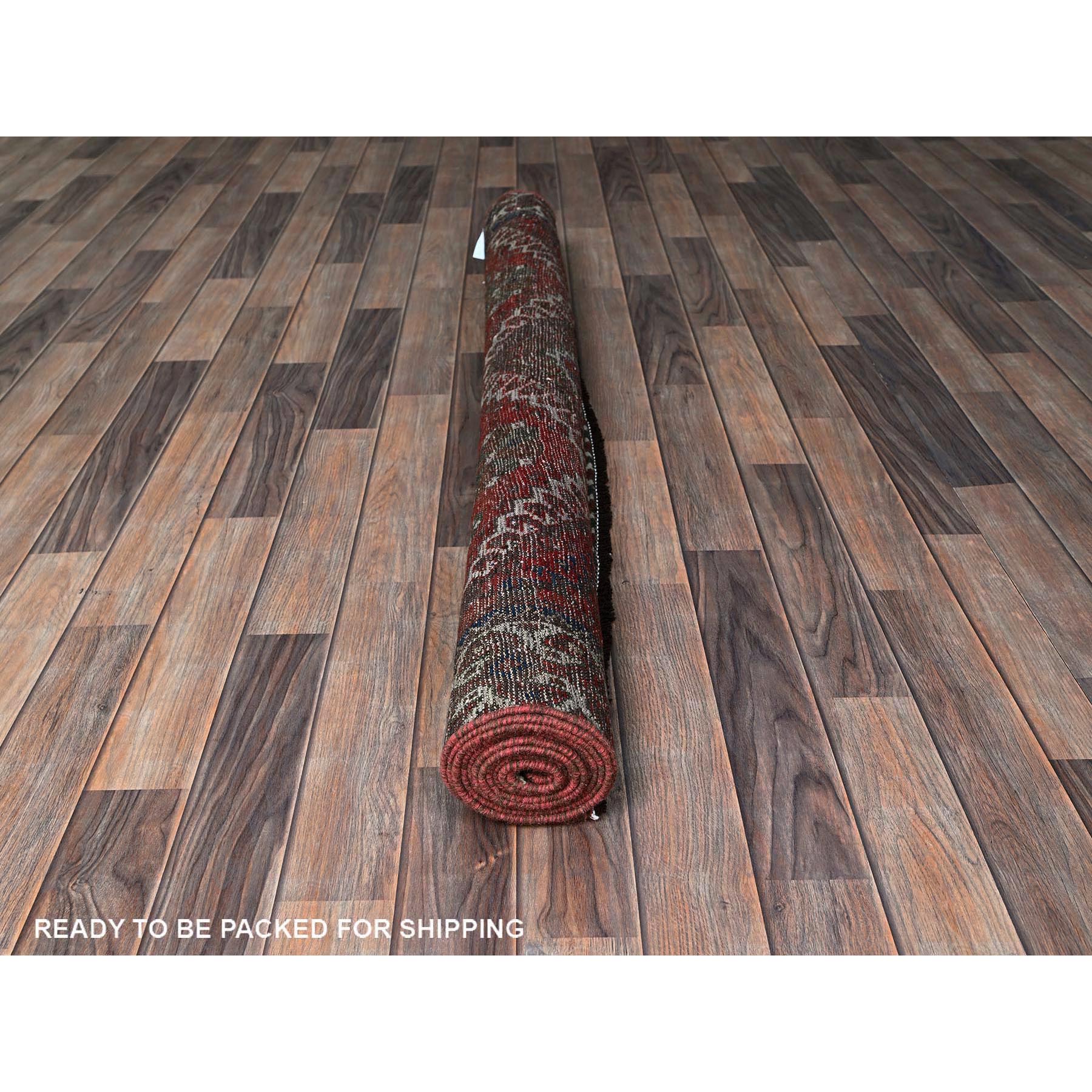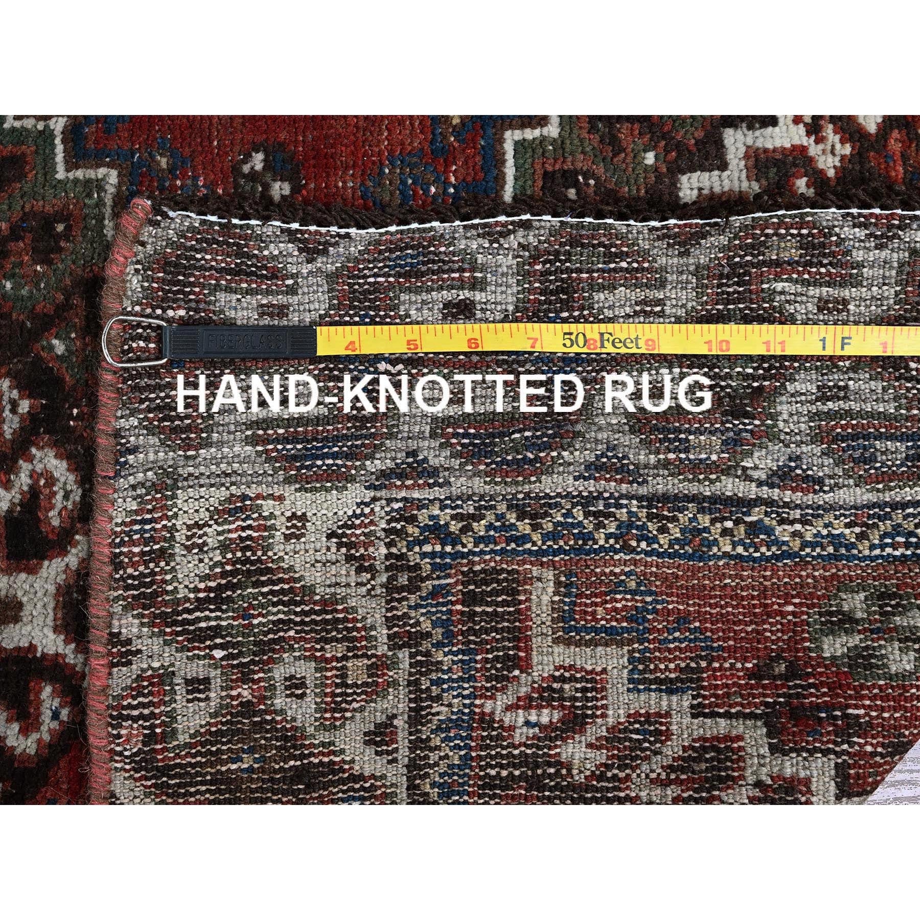5'x9'2" Brick Red, Vintage Persian Shiraz With Geometric Design, Worn And Distressed, Sheared Low, Zero Pile, Sides And Ends Professionally Secured, Hand Knotted, Pure Wool, Wide Runner, Oriental Rug FWR4830