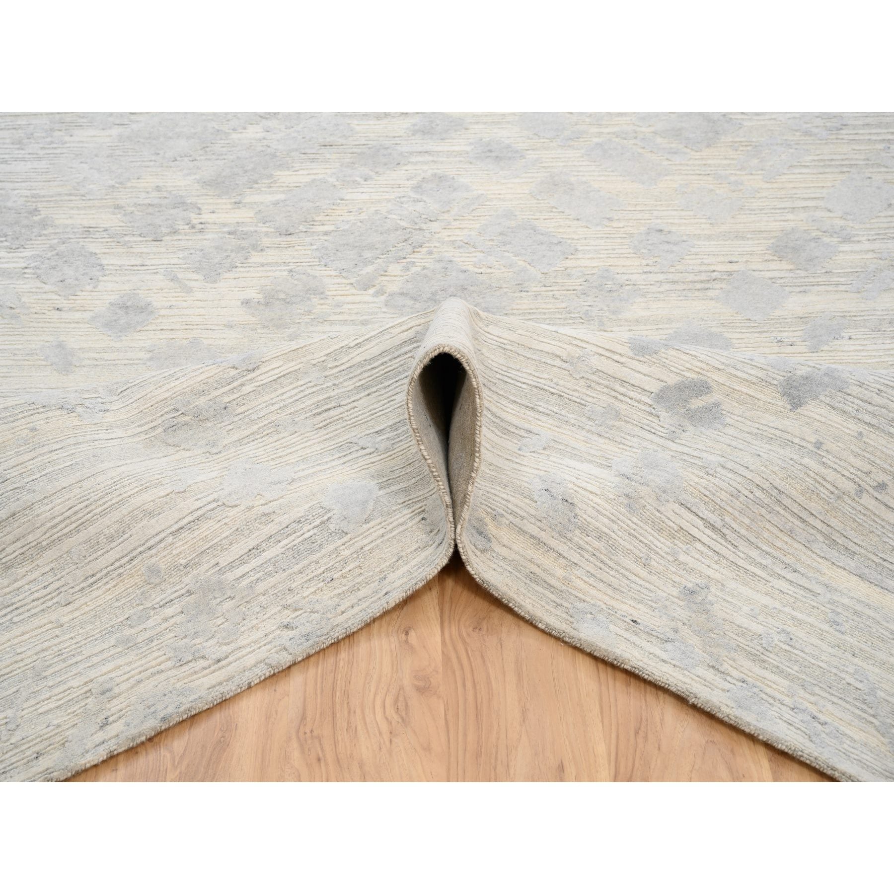 6'1"x11'10" Hand Spun Undyed Natural Wool Hand Knotted Ivory Modern Design Oriental Wide Gallery Size Runner Rug FWR380226