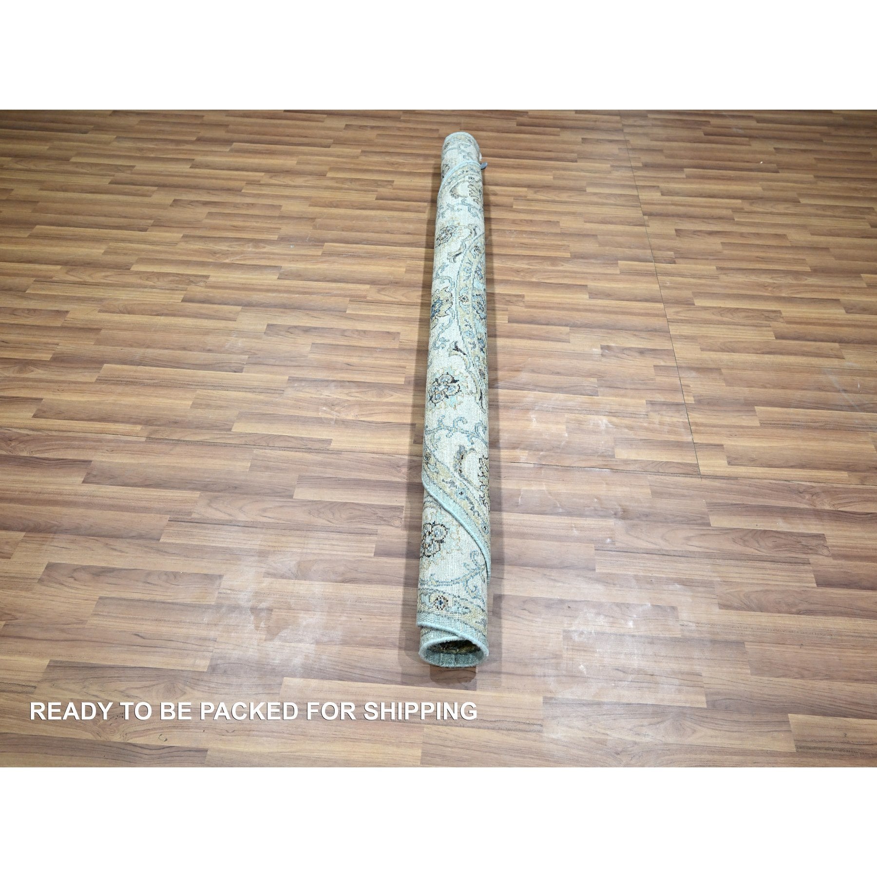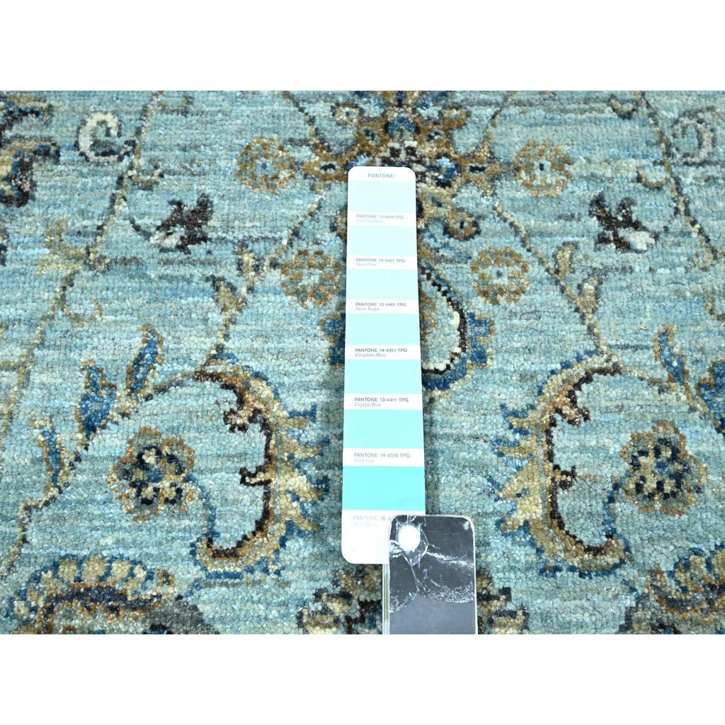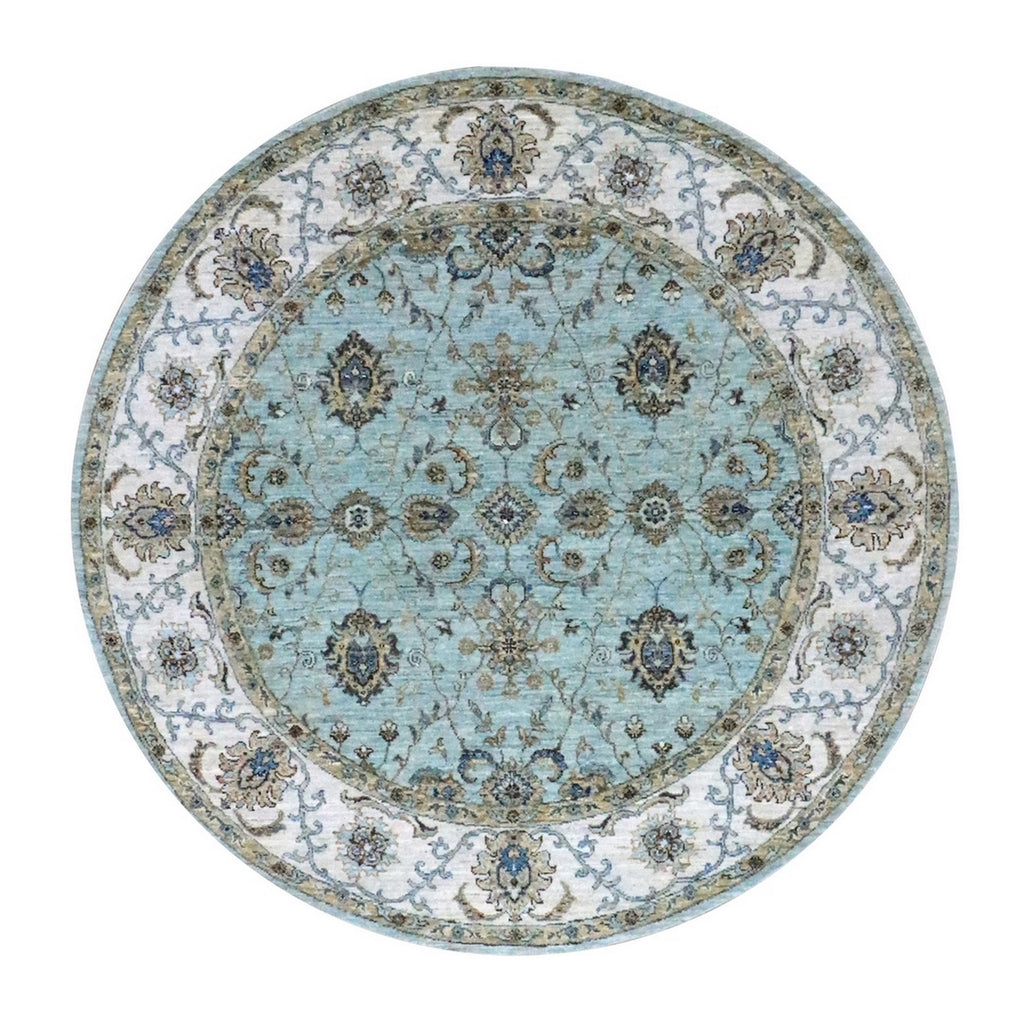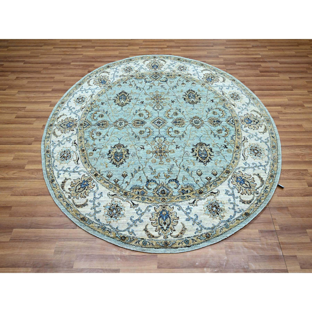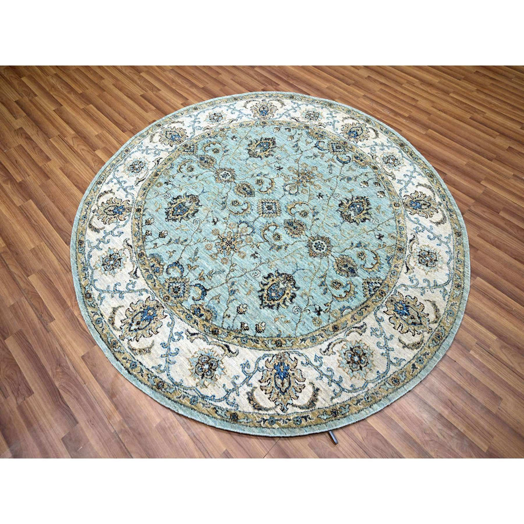 6'1"x6'1" Cerulean Blue, Hand Knotted, Agra, Shah Abbas Flower Vines Design, Vegetable Dyes, Luxurious Wool, Denser Weave, Round, Oriental Rug FWR456834