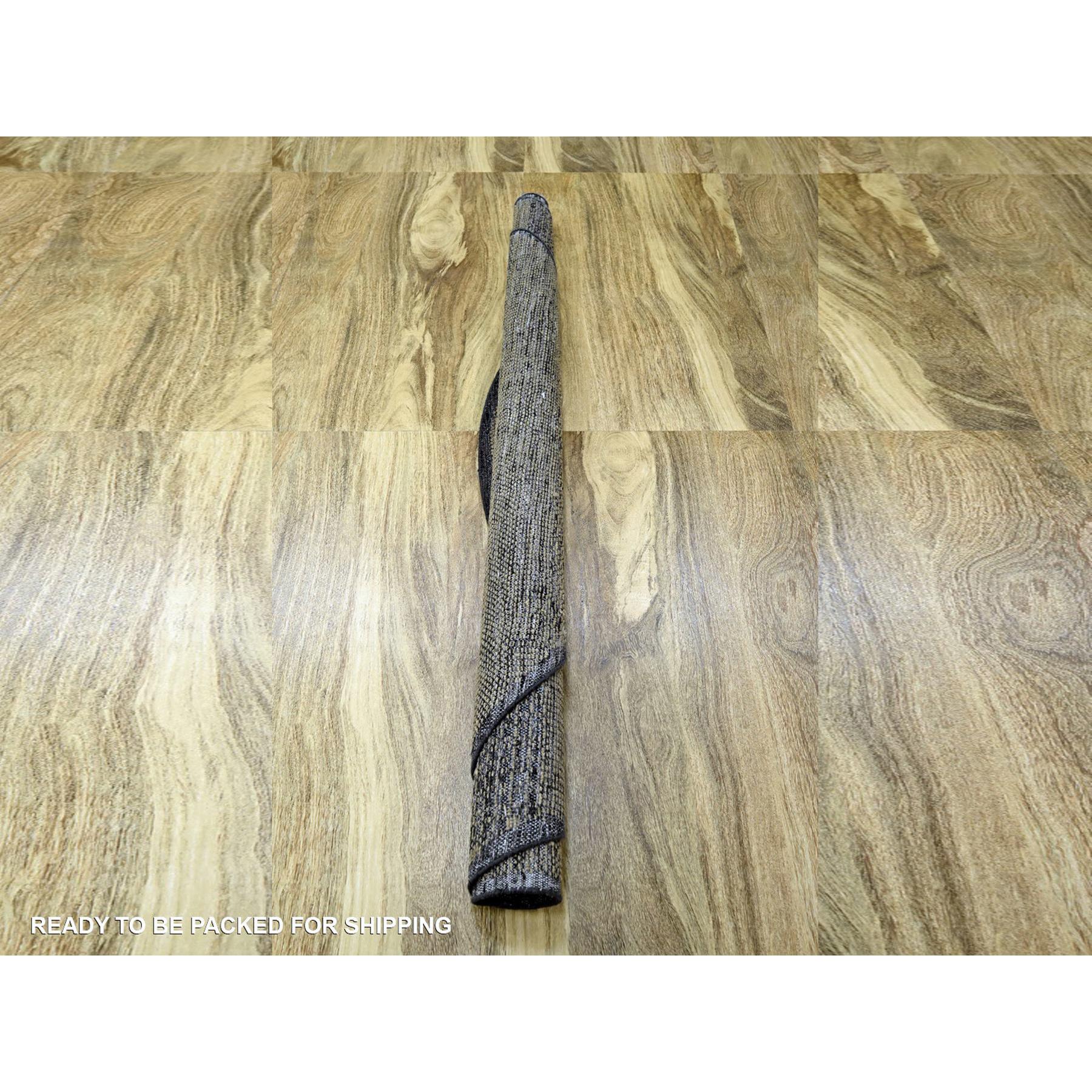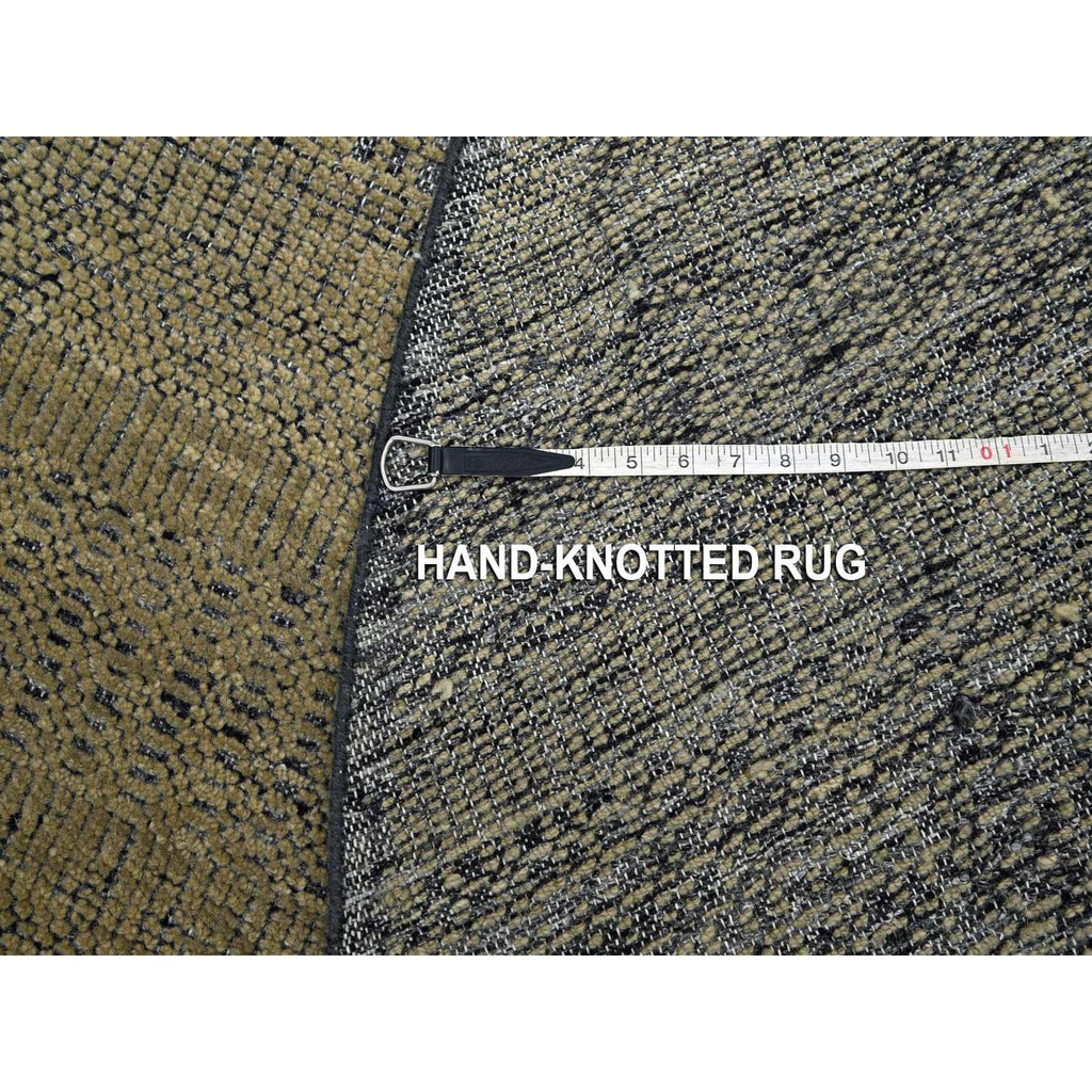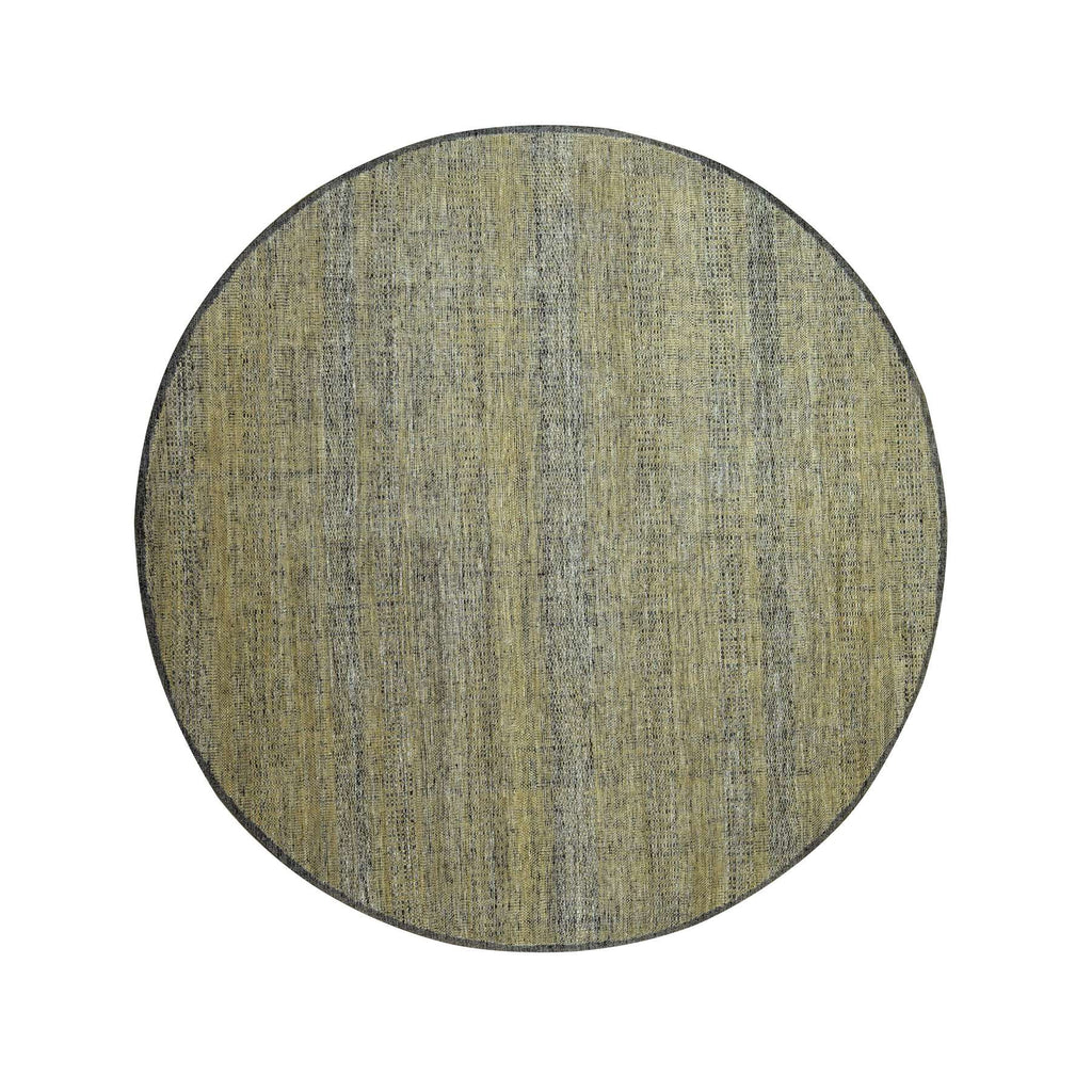 6'1"x6'1" Honey Brown With Black, Hand Knotted, Distressed And Oxidized Grass Design With Exposed Warps, Pure Wool, Round, Oriental Rug FWR460380