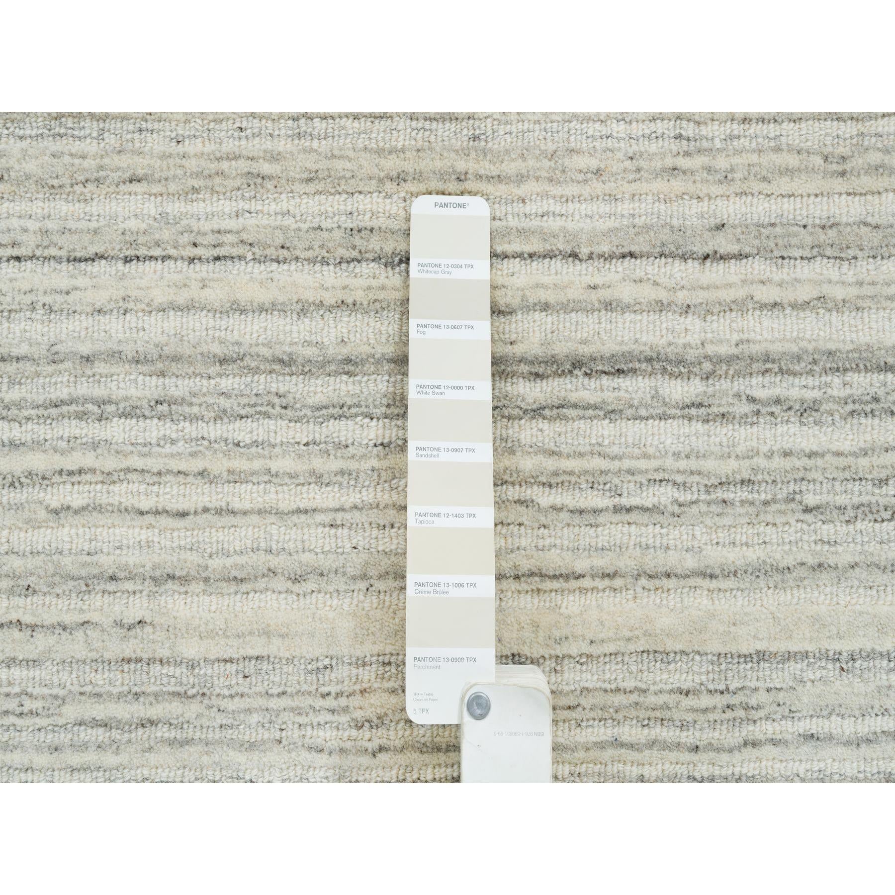 6'1"x6'1" Ivory And Cream, Thick And Plush Plain Hand Loomed, Undyed Natural Wool Modern Design, Round Oriental Rug FWR390084