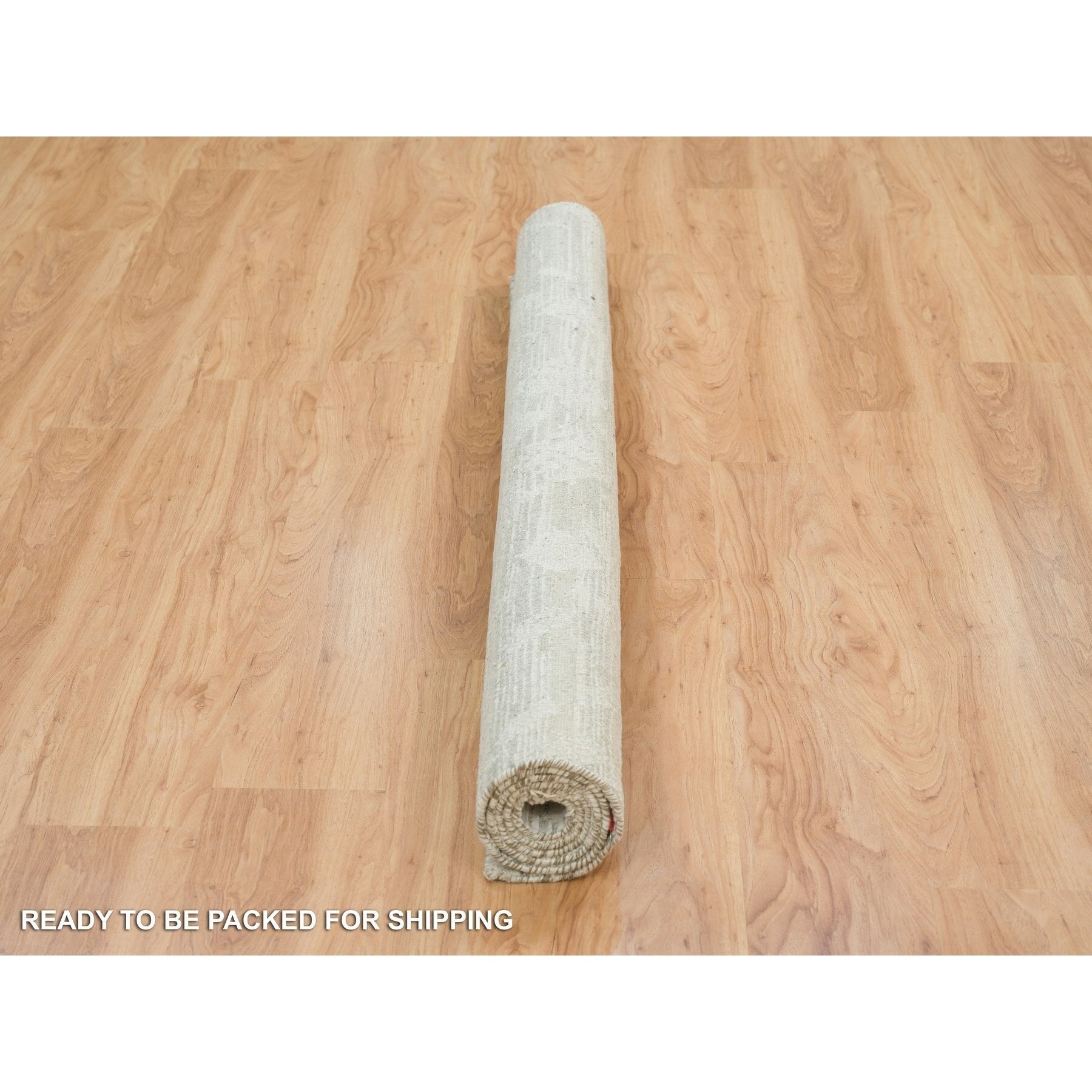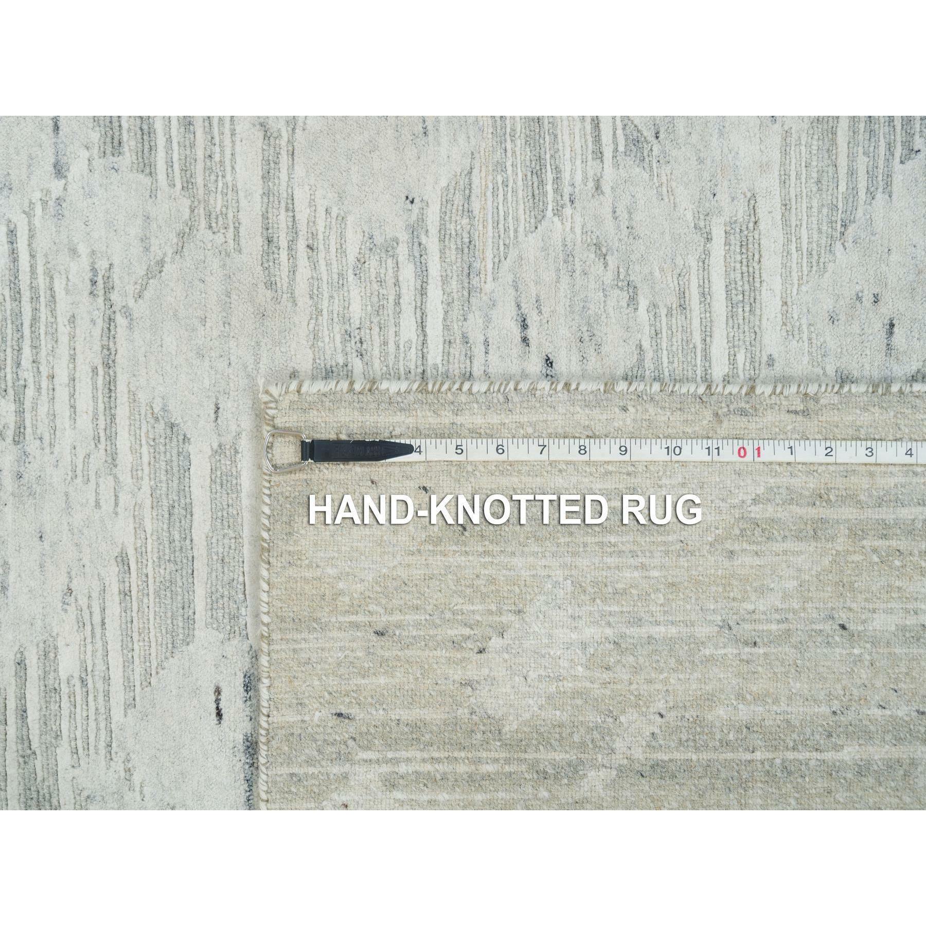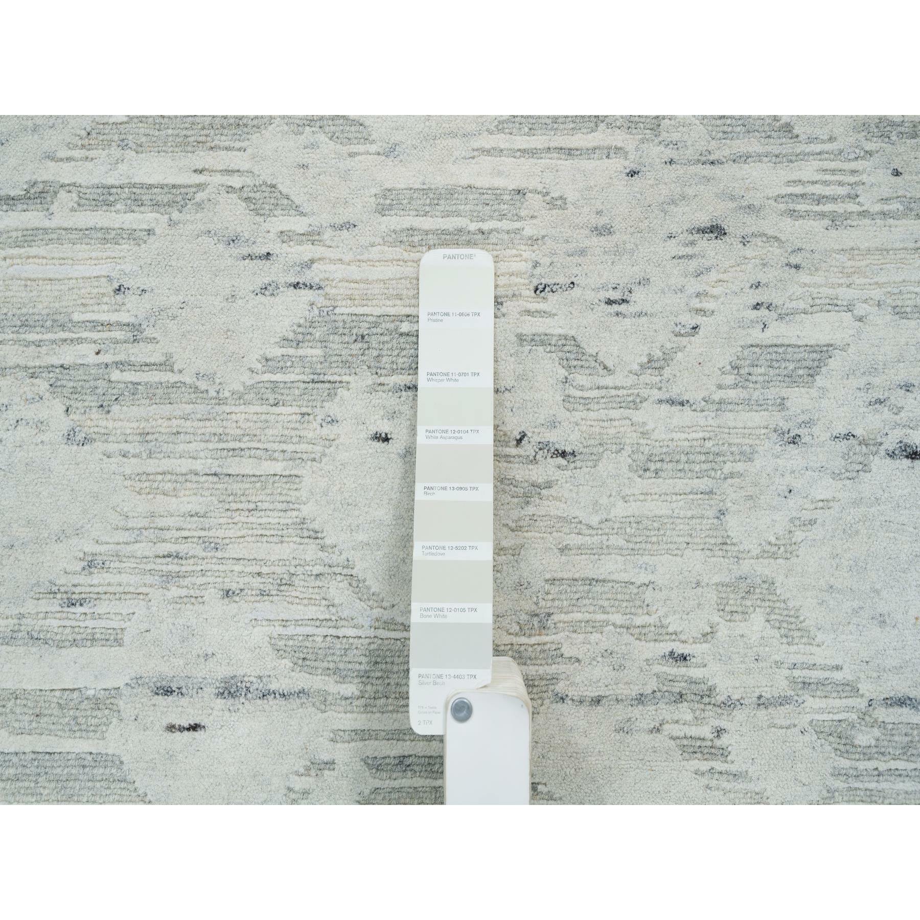 6'1"x6'1" Ivory And Light Grey, Hand Knotted, Hand Spun Undyed Natural Wool, Modern Design, Square Oriental Rug FWR393948