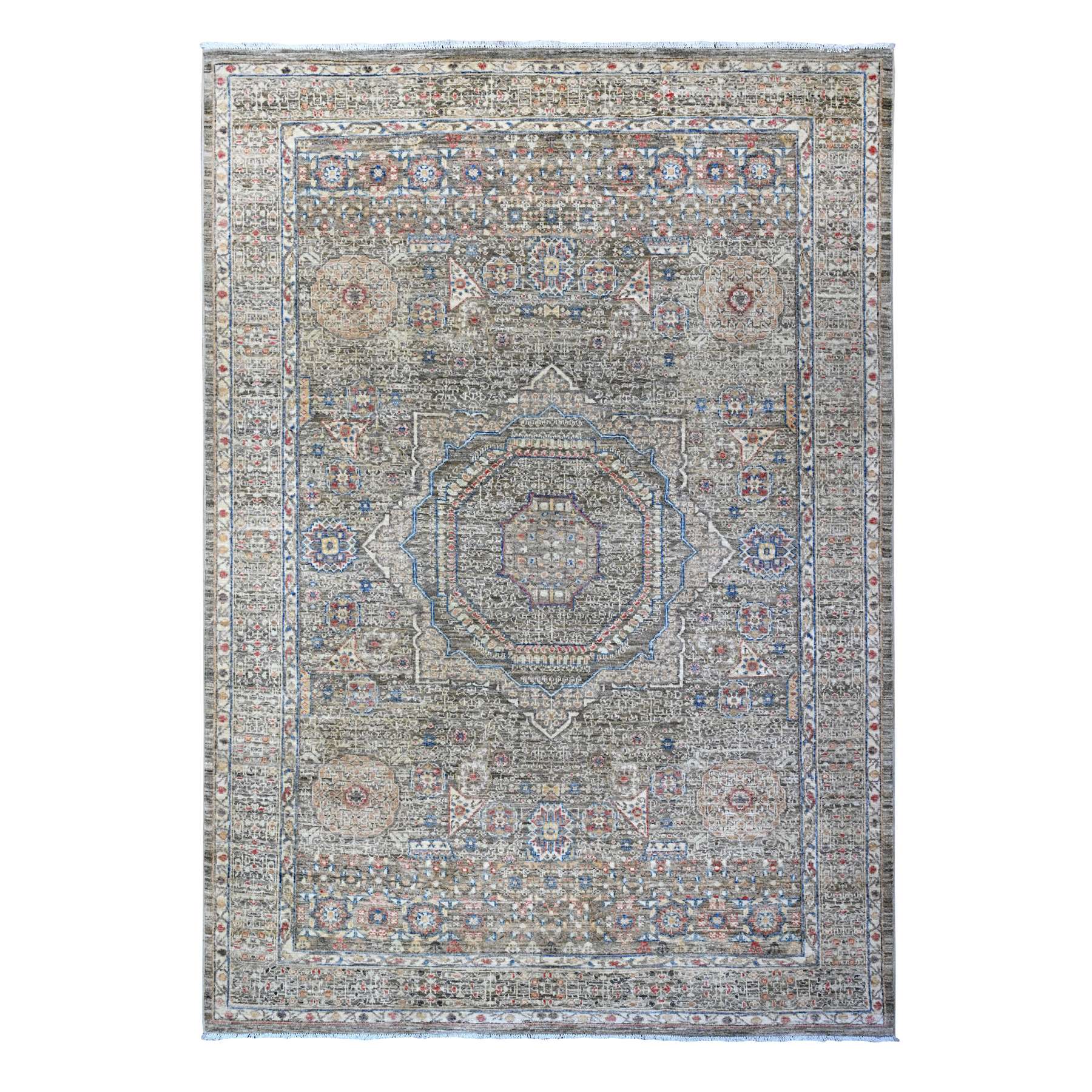 6'1"x8'10" Nickel Gray, Fine Aryana With Pre Historic 14th Century Influence Mamluk Design, Organic Wool, Hand Knotted Vegetable Dyes, Oriental Rug FWR538242