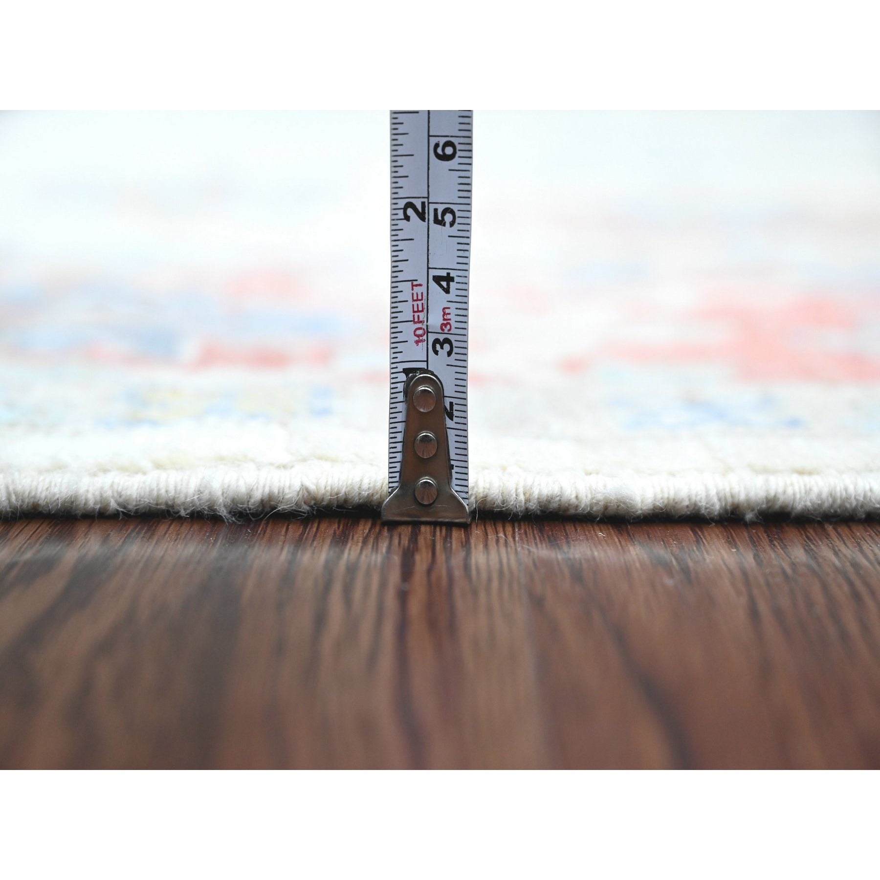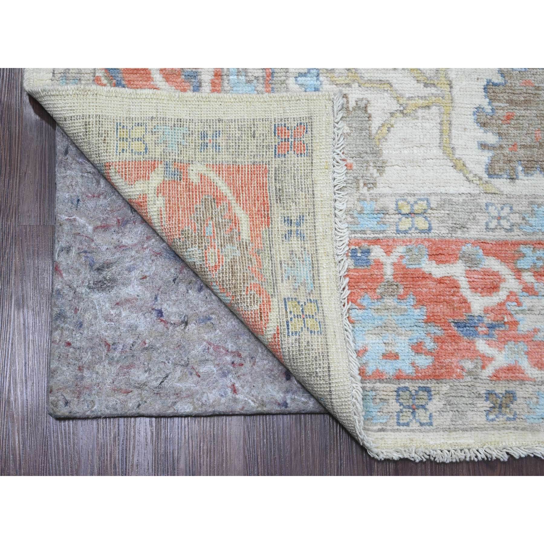 6'1"x8'9" Alabaster White, Afghan Angora Oushak With Colorful Leaf Design, Hand Knotted, Vegetable Dyes, 100% Wool, Oriental Rug FWR122472