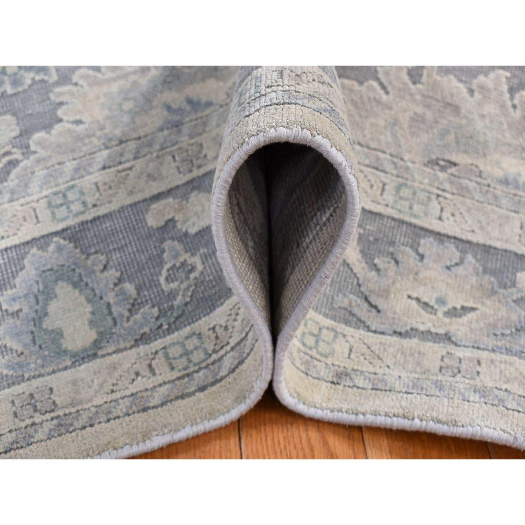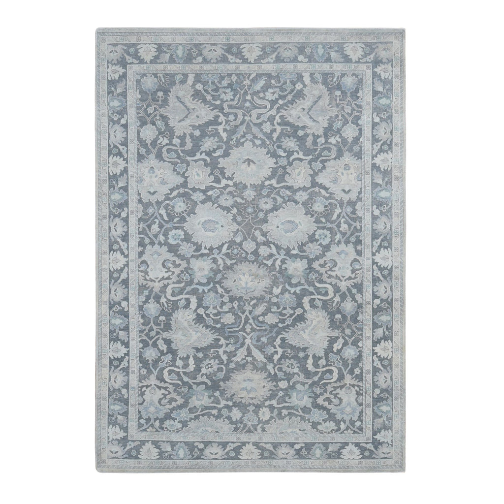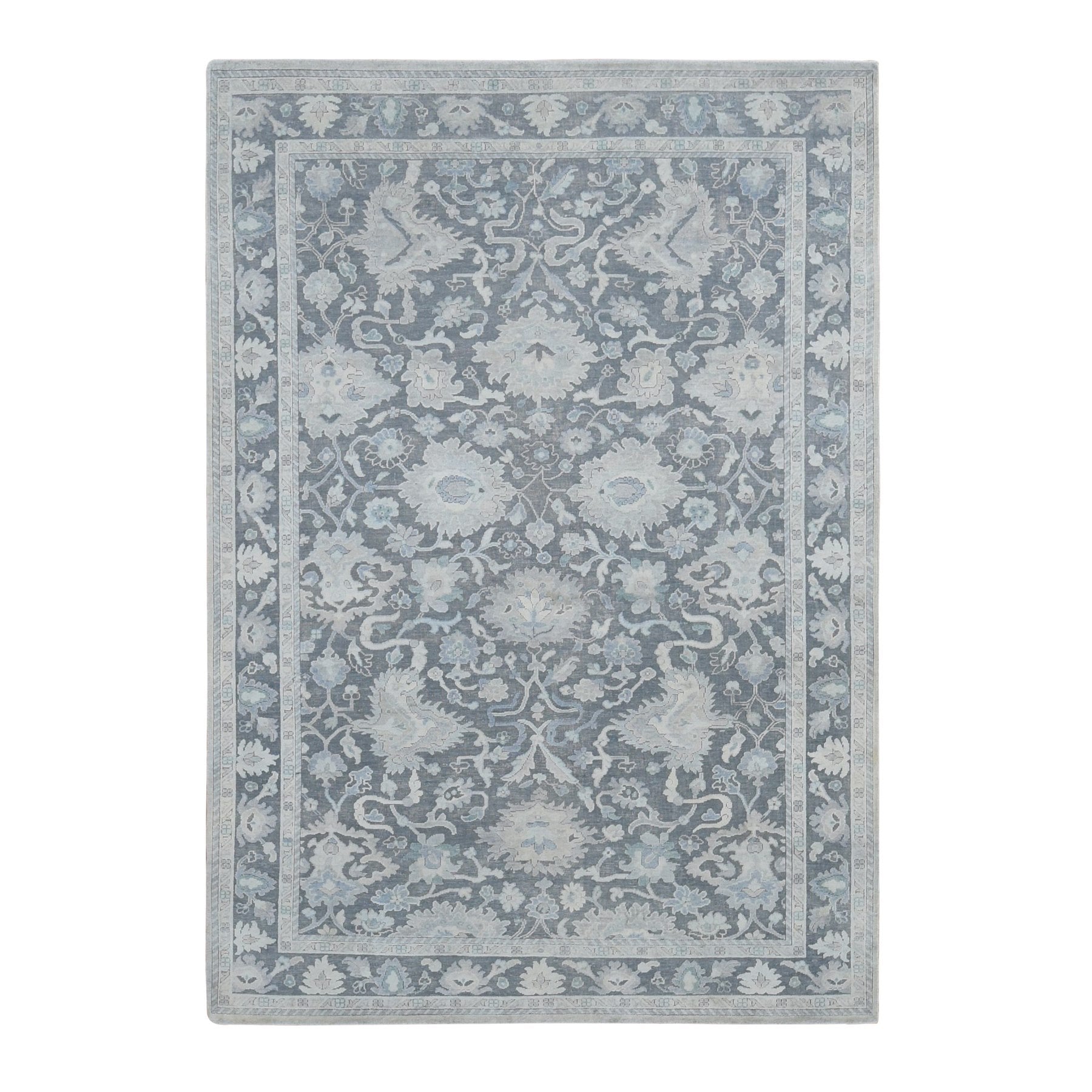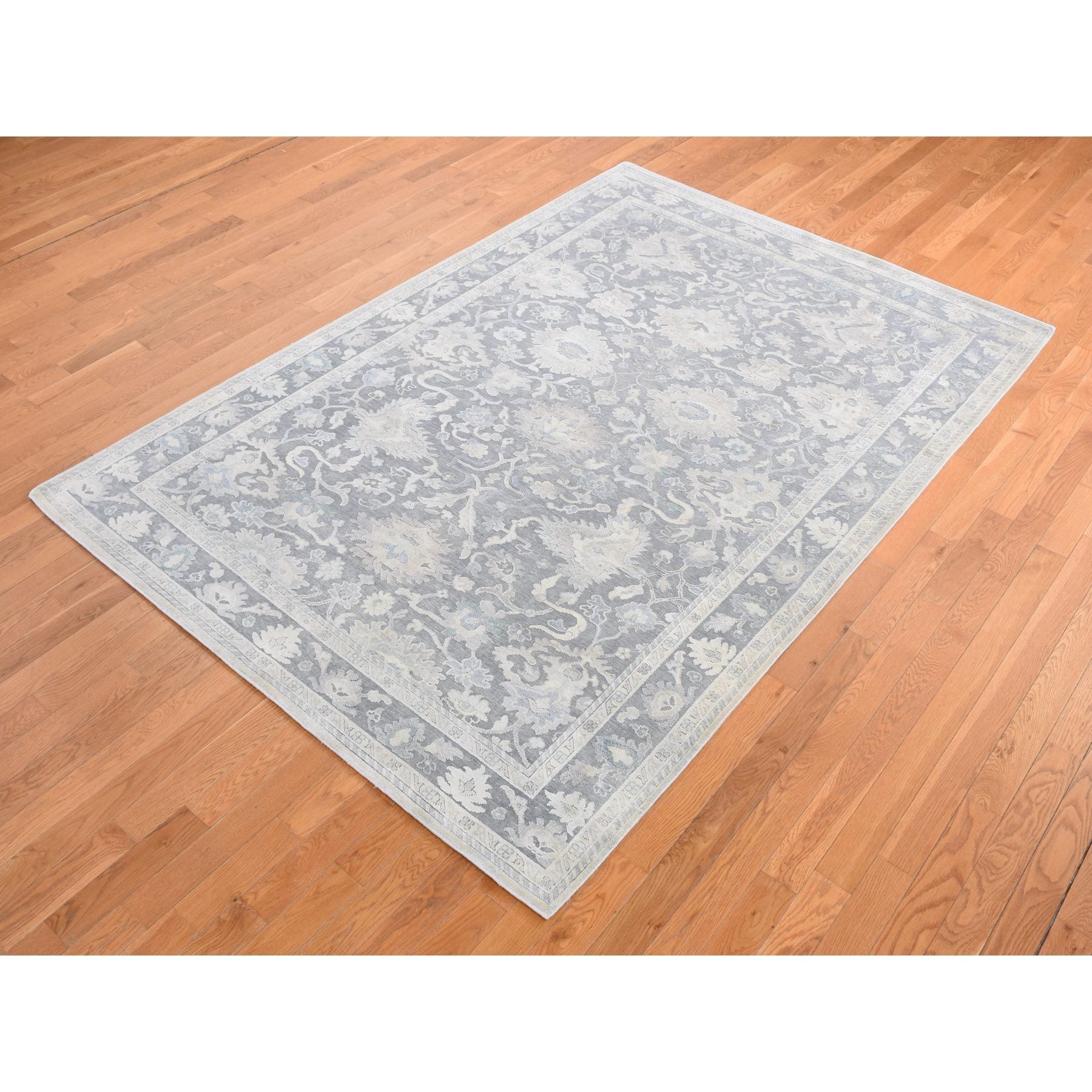 6'1"x8'9" Battleship Gray, Hand Knotted, Oushak Influence, Pure Silk And Textured Wool, Oriental Rug FWR485940