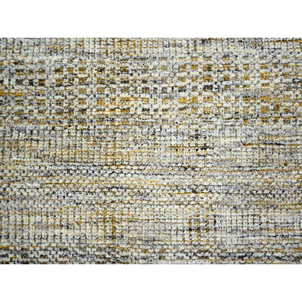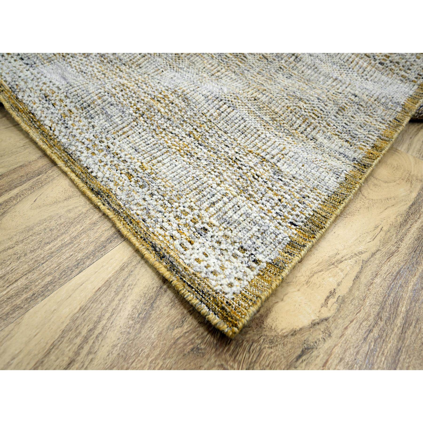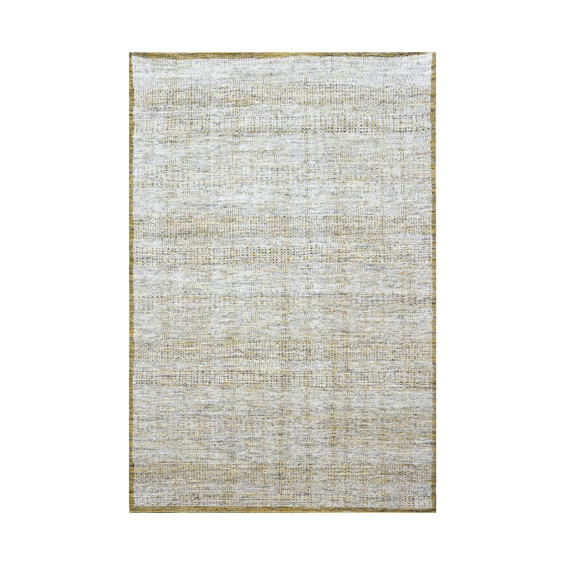 6'1"x9'1" Daisy White With Golden Yellow, Hand Knotted, Oxidized And Distressed Grass Design With Exposed Warps, Pure Wool, Oriental Rug FWR457464