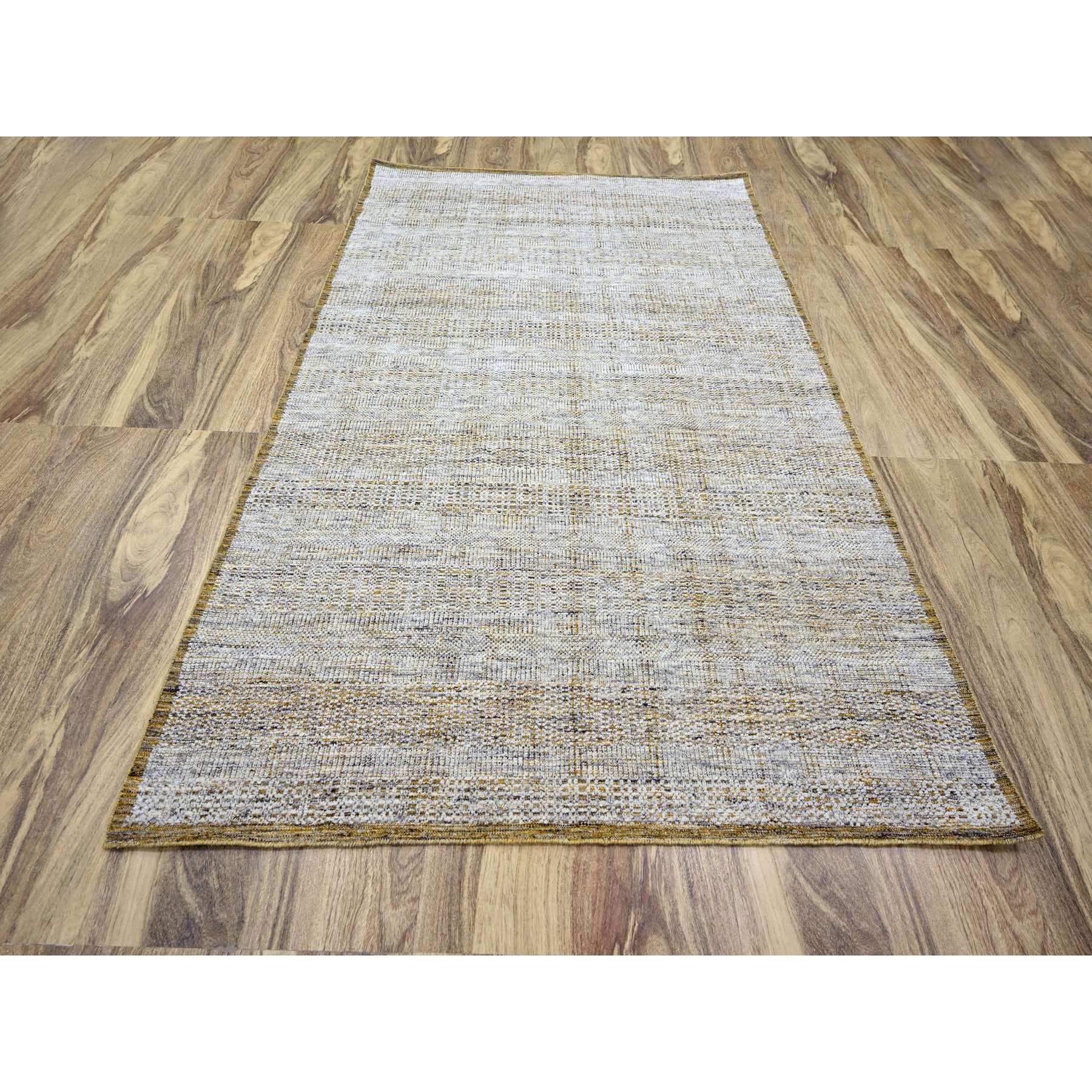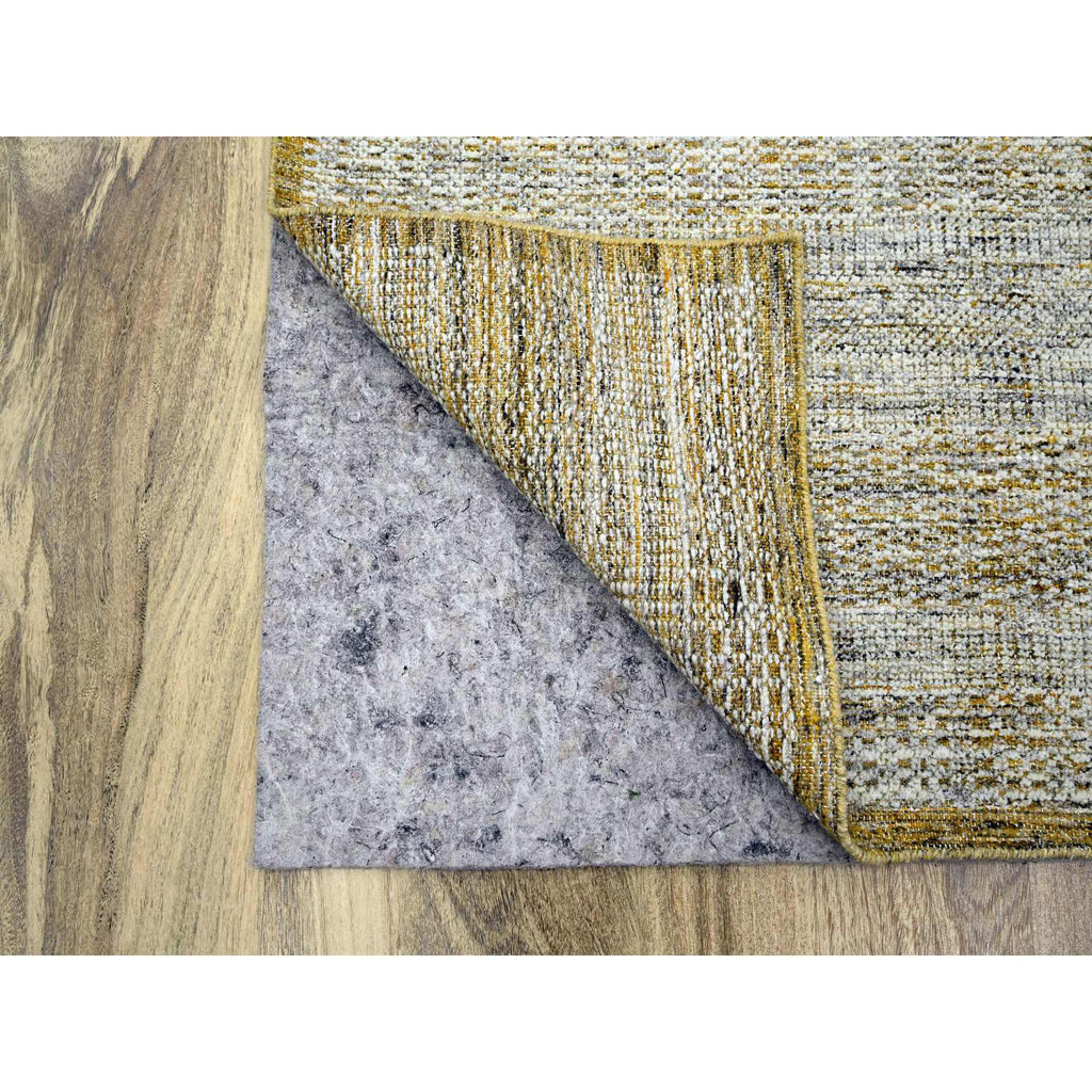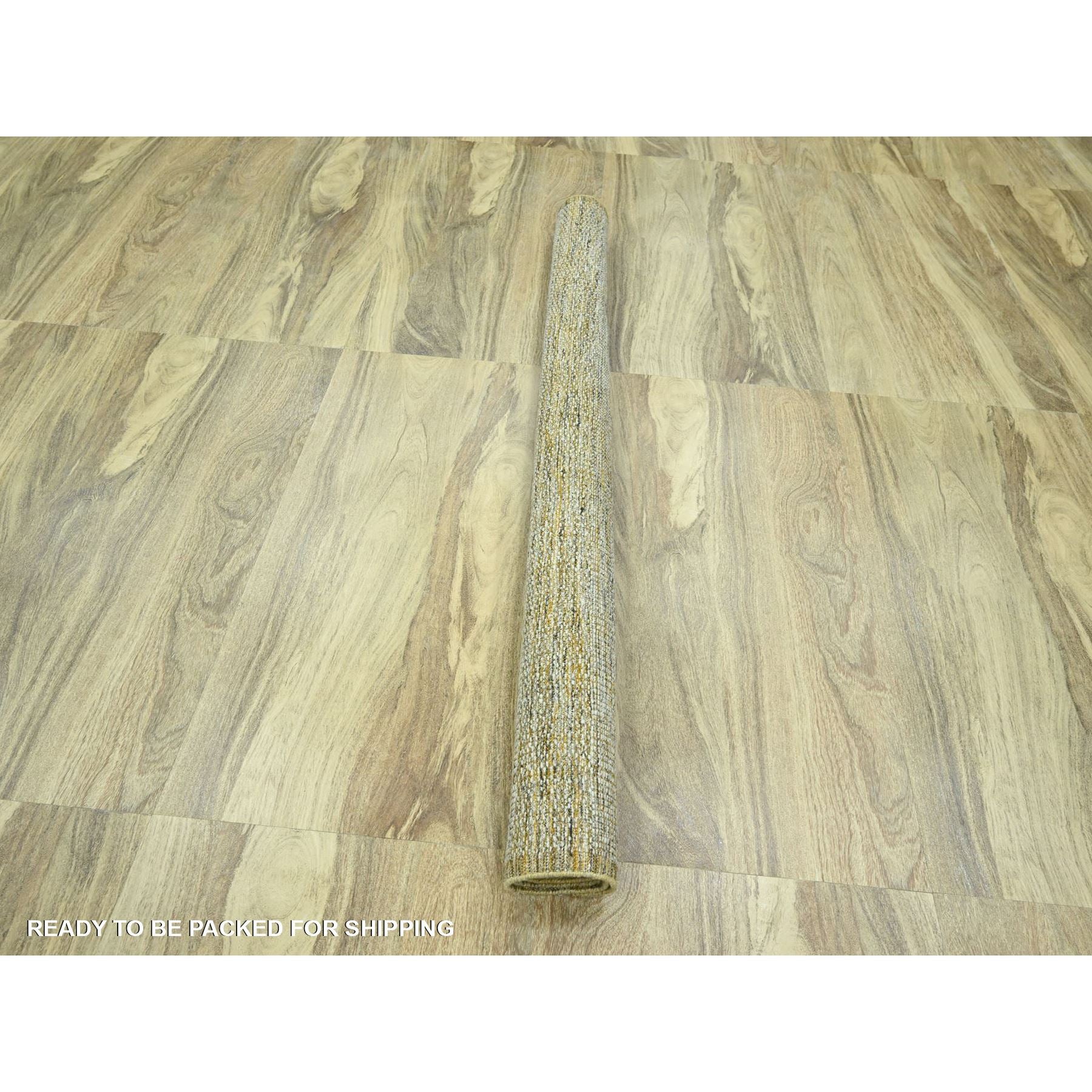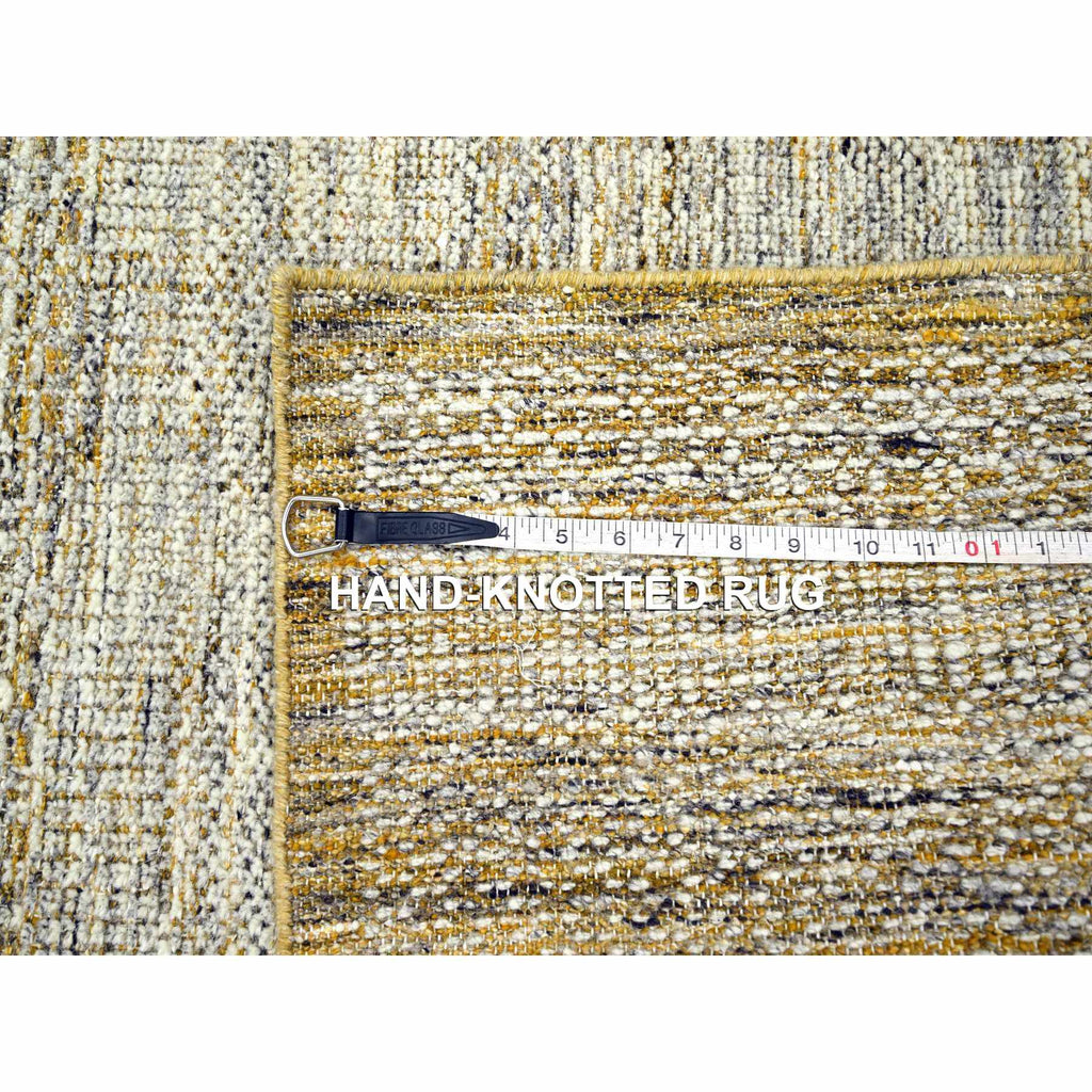 6'1"x9'1" Daisy White With Golden Yellow, Hand Knotted, Oxidized And Distressed Grass Design With Exposed Warps, Pure Wool, Oriental Rug FWR457464