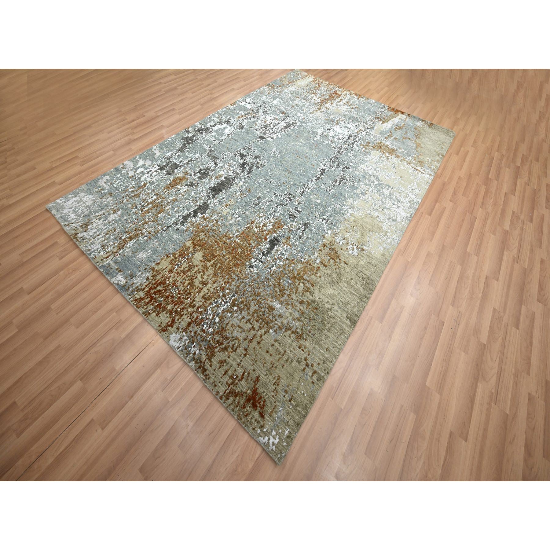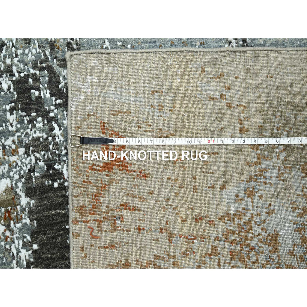 6'1"x9'1" Misty Gray With Brown, Persian Knot, Abstract With Galaxy Design, 100% Wool, Hand Knotted, Densely Woven, Oriental Rug FWR498978