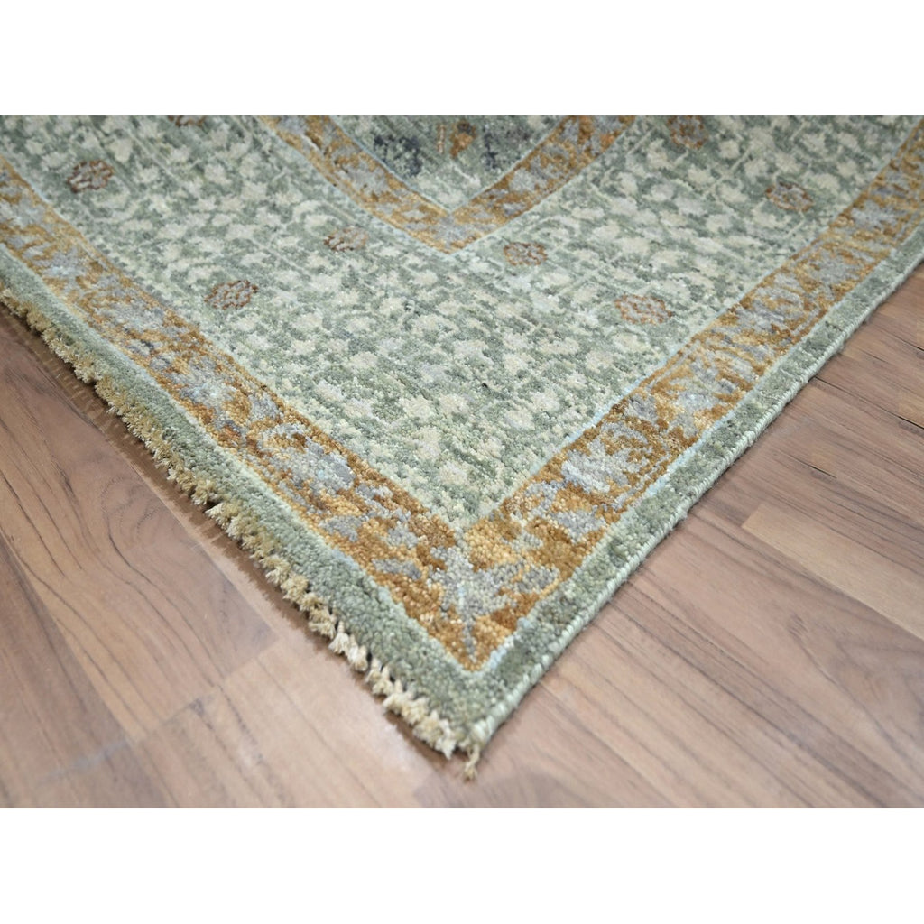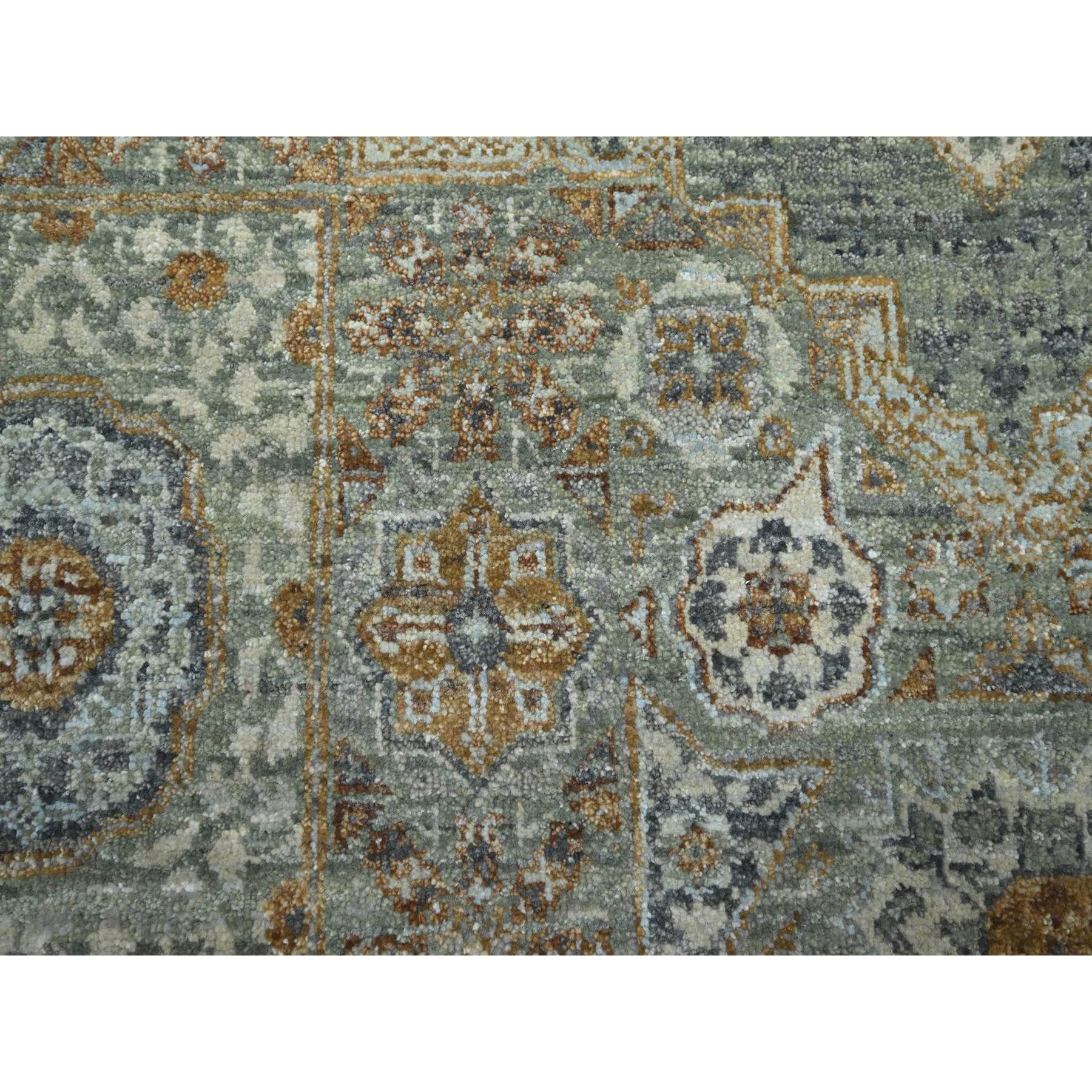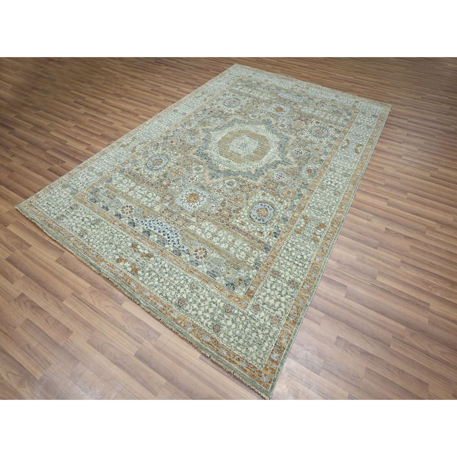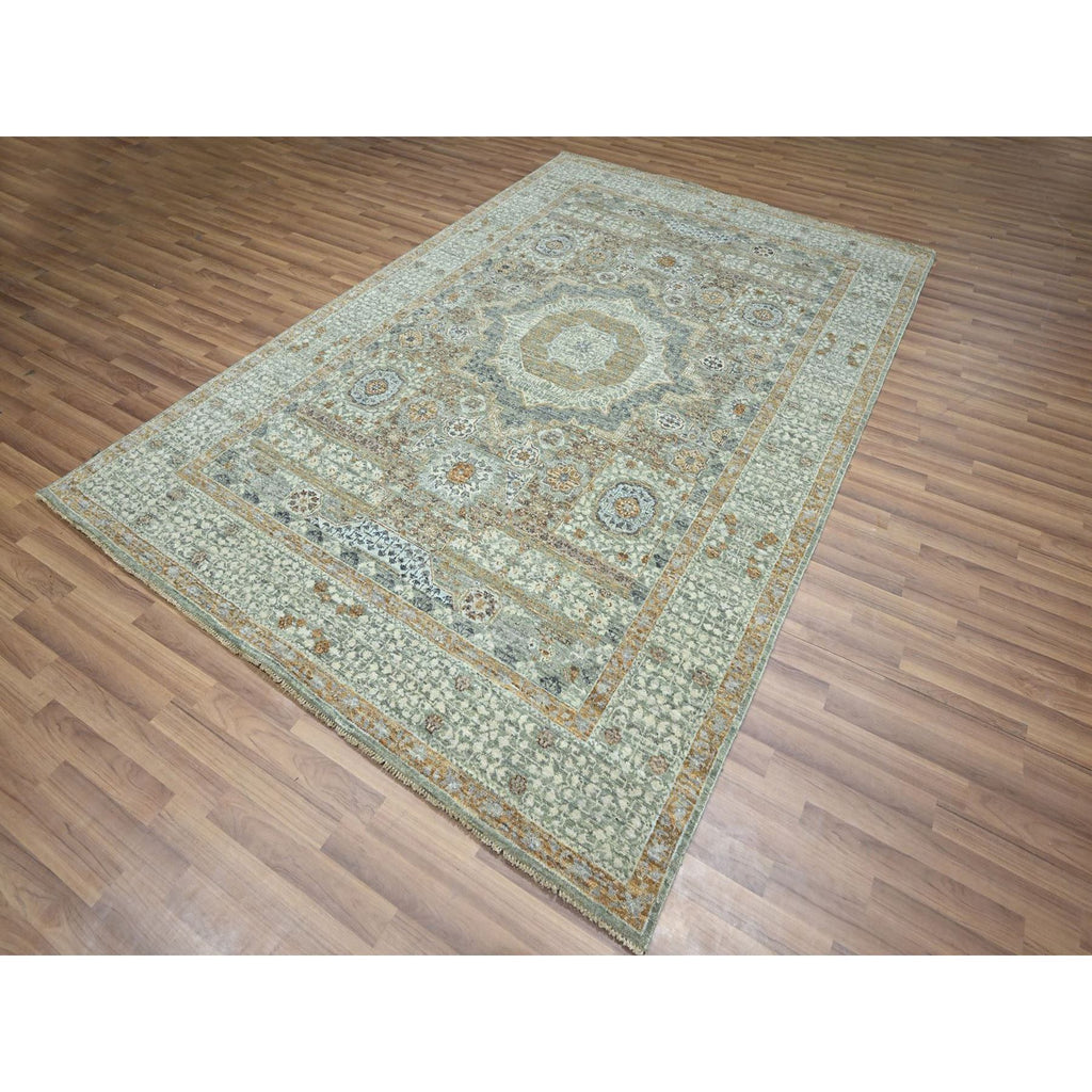 6'1"x9'1" Pistachio Green, Natural Dyes, Hand Knotted, Pure Wool, Pre Historic 14th Century Influence, Mamluk Design, Oriental Rug FWR460818