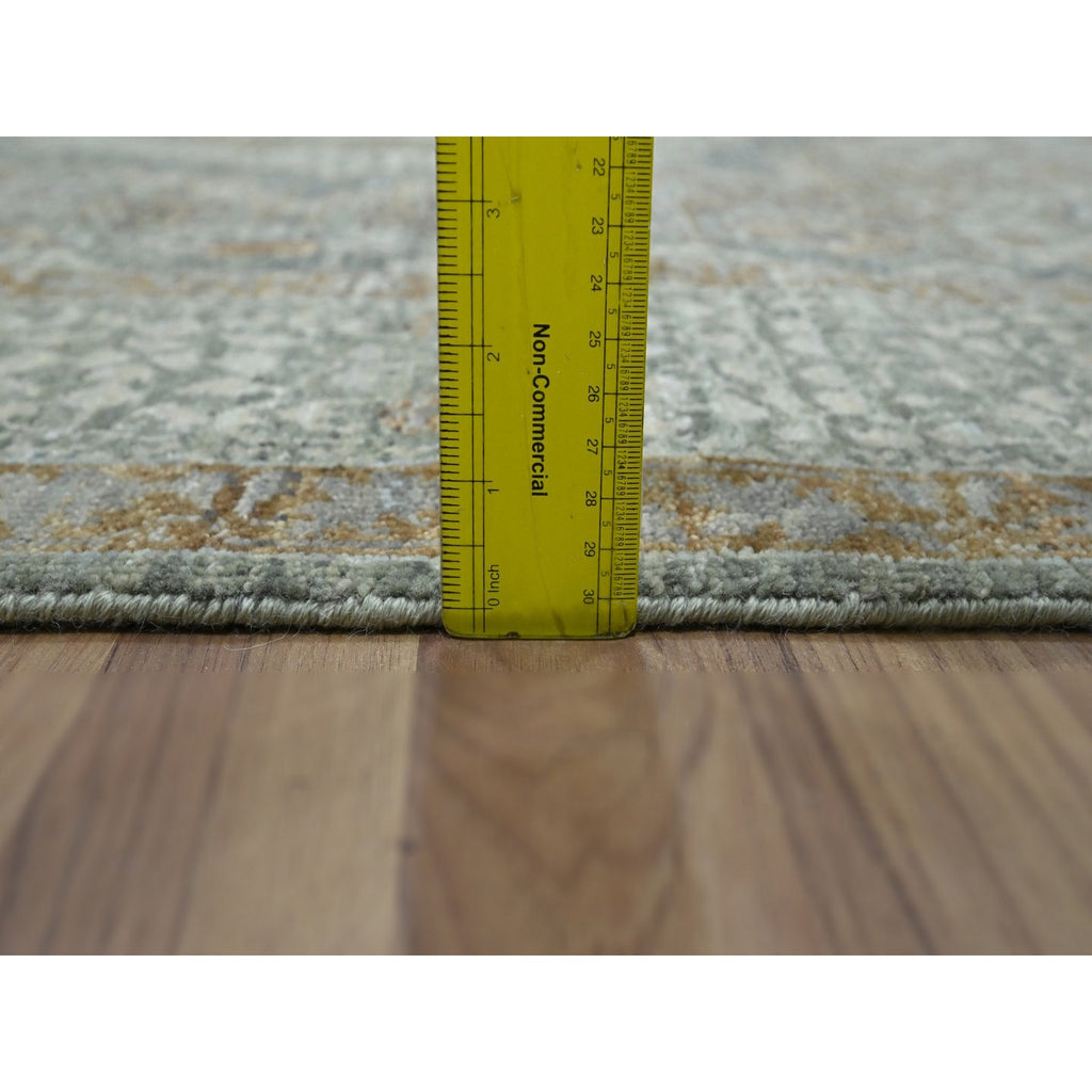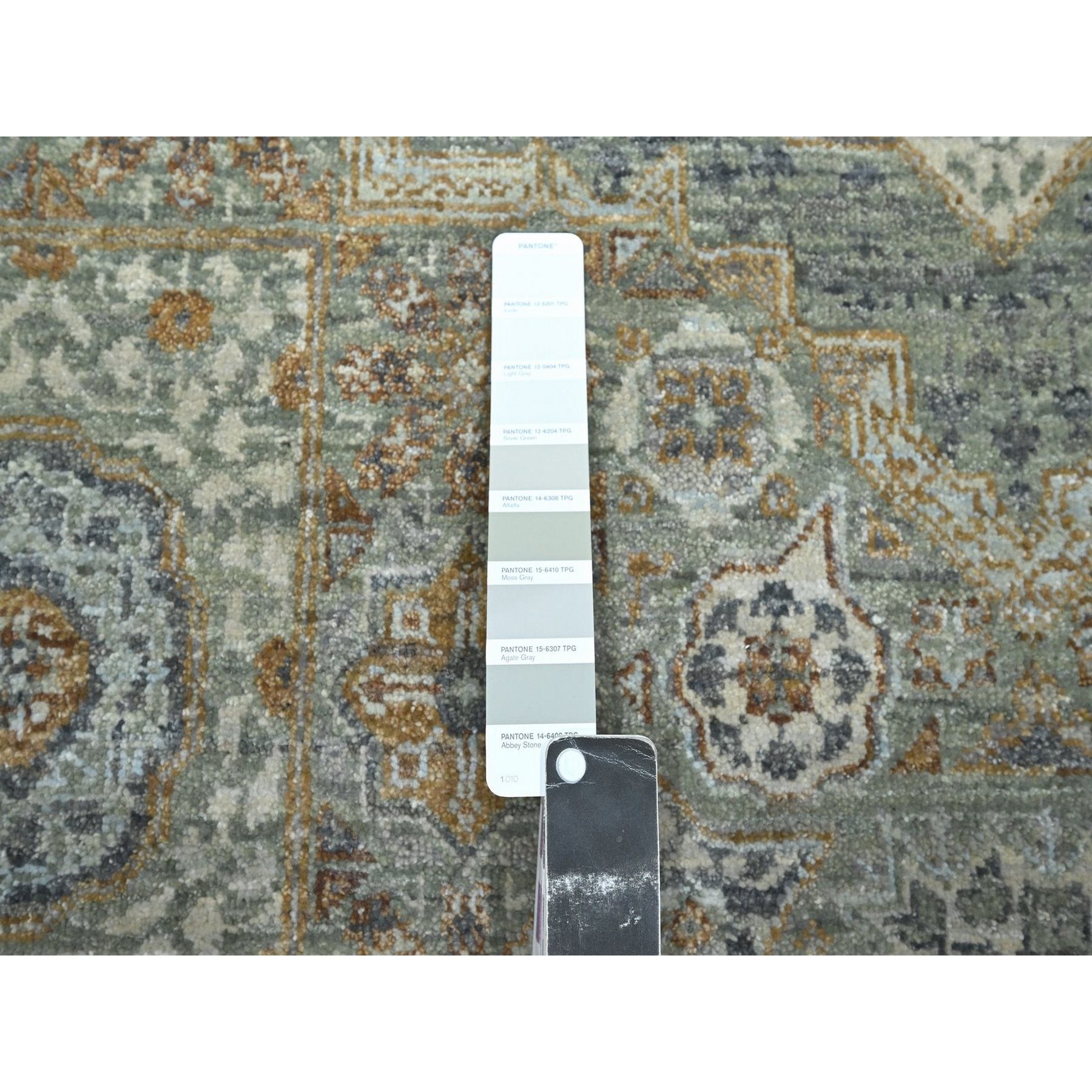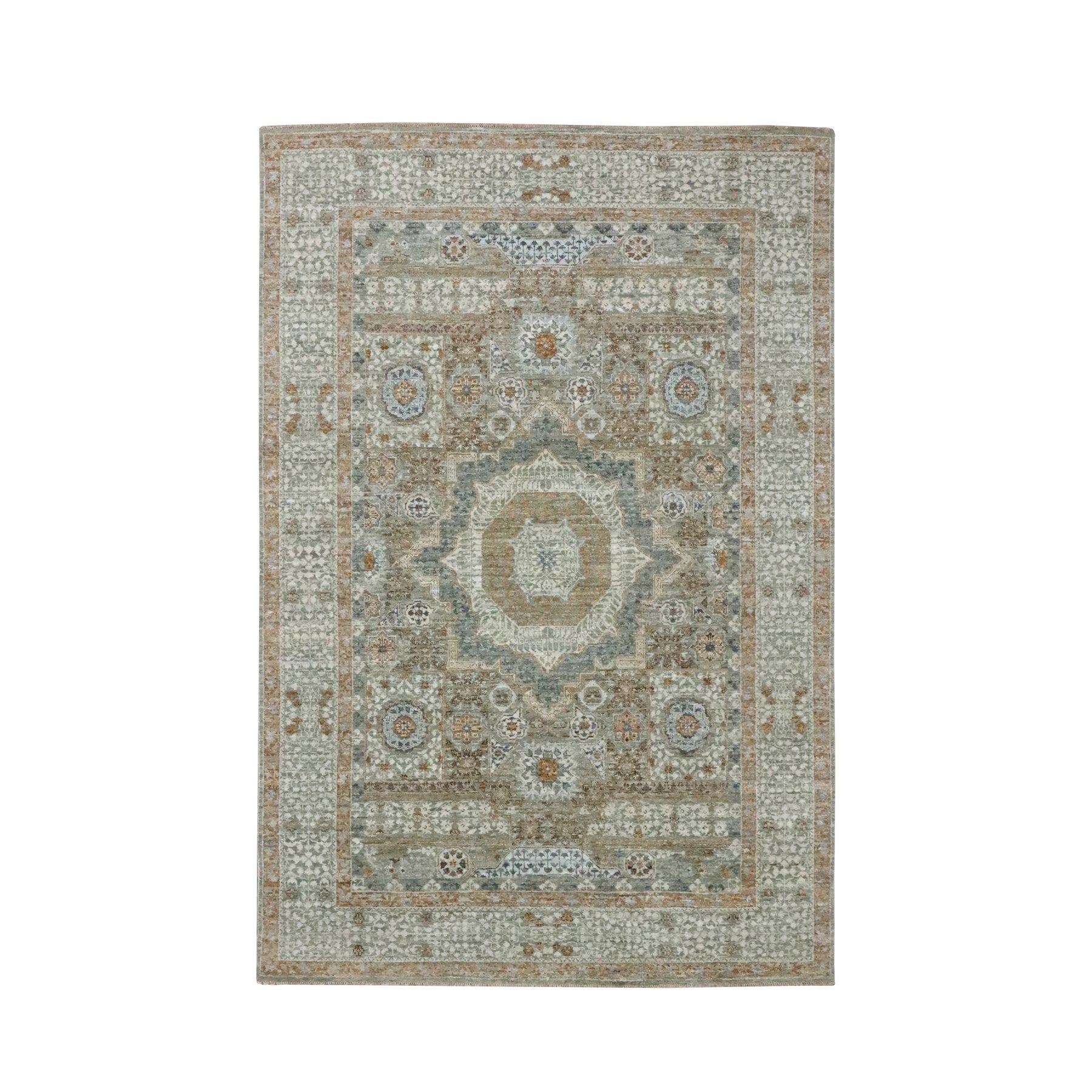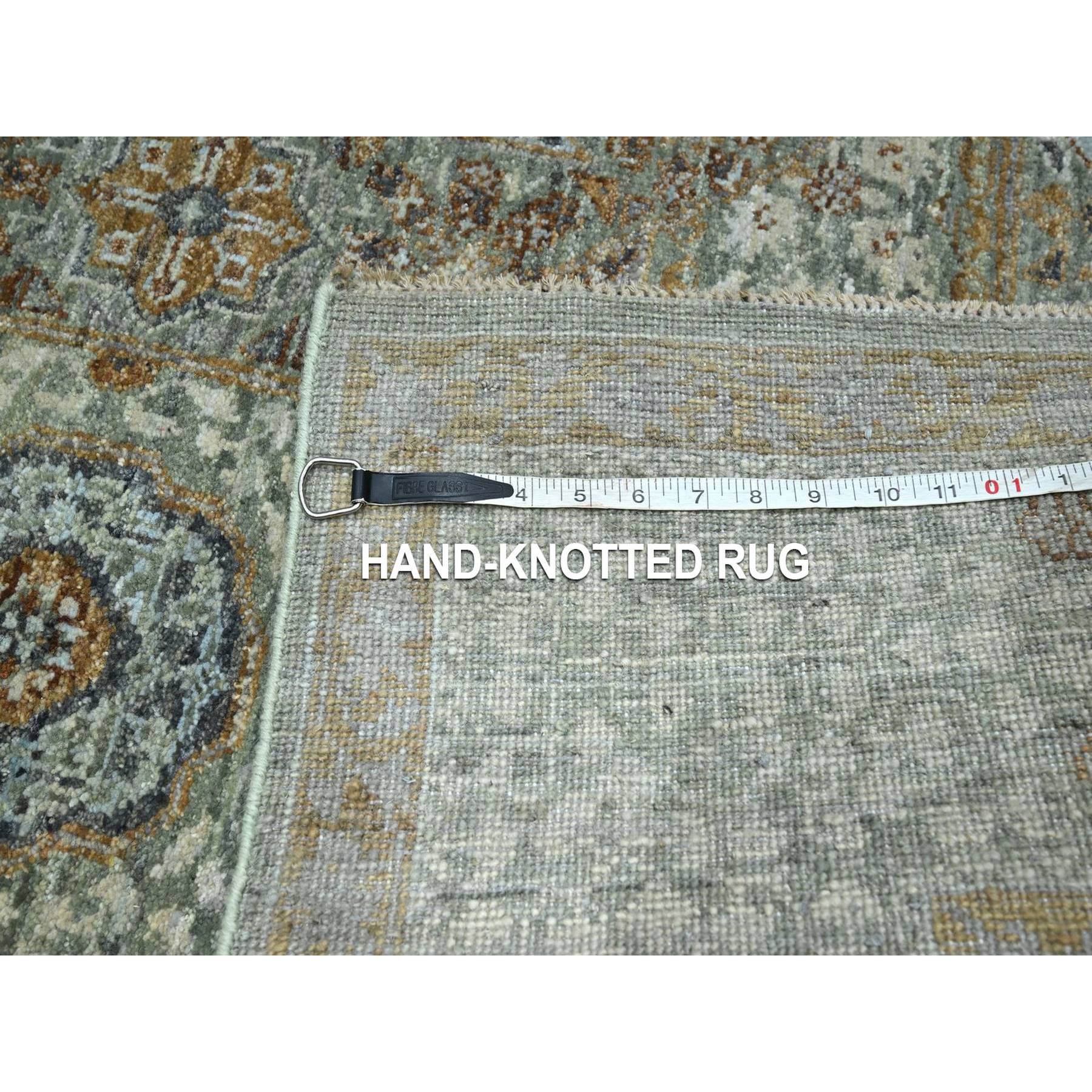 6'1"x9'1" Pistachio Green, Natural Dyes, Hand Knotted, Pure Wool, Pre Historic 14th Century Influence, Mamluk Design, Oriental Rug FWR460818