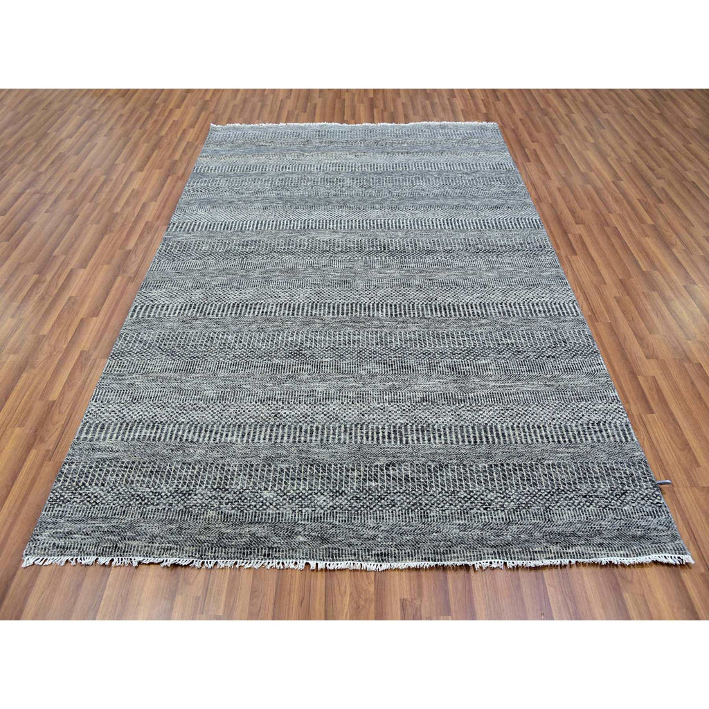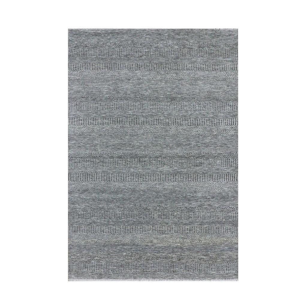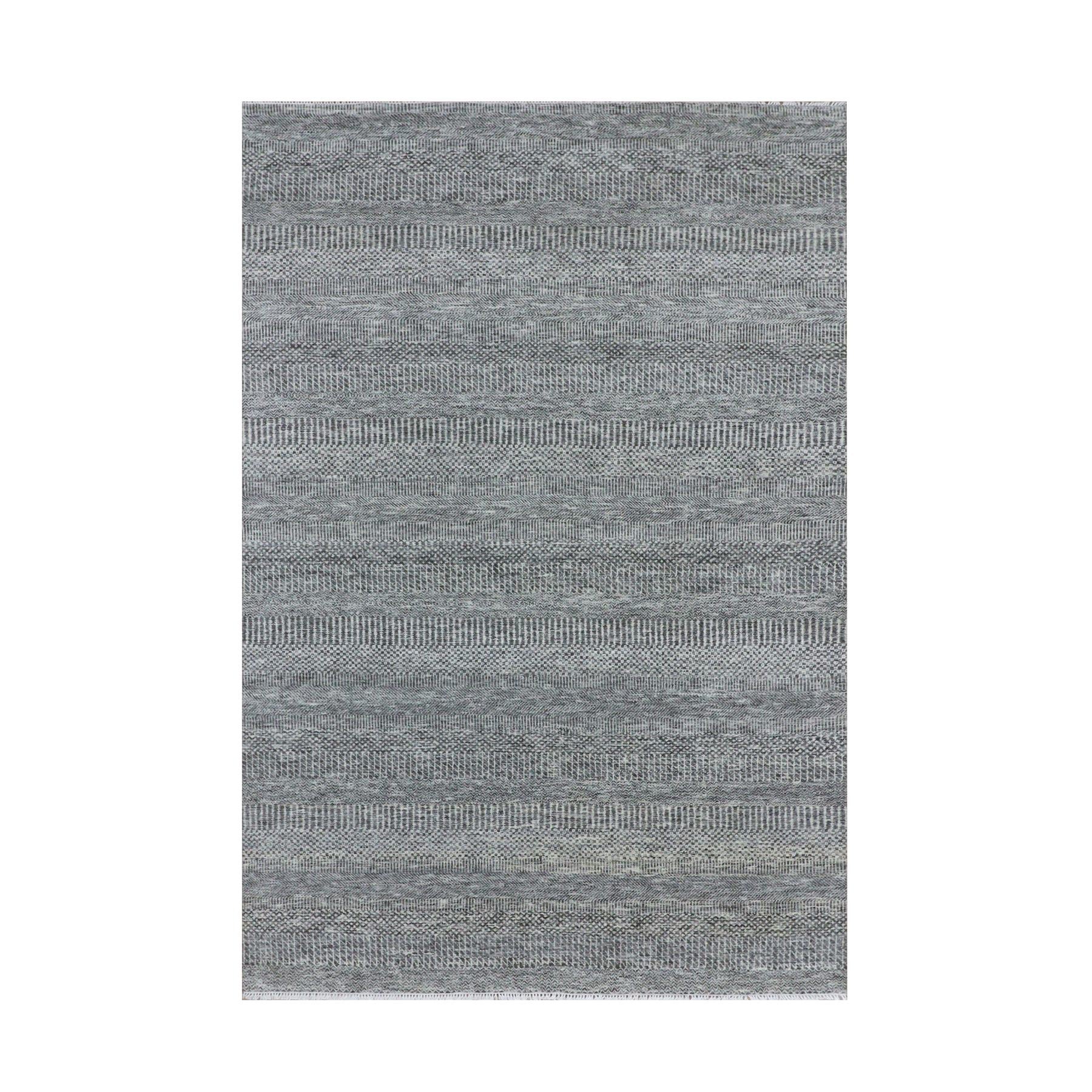 6'1"x9'1" Westchester Gray, Undyed Extra Soft Wool, Hand Knotted Modern Grass Design, Tone On Tone, Oriental Rug FWR479262