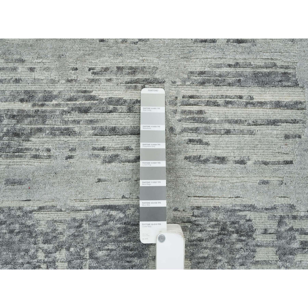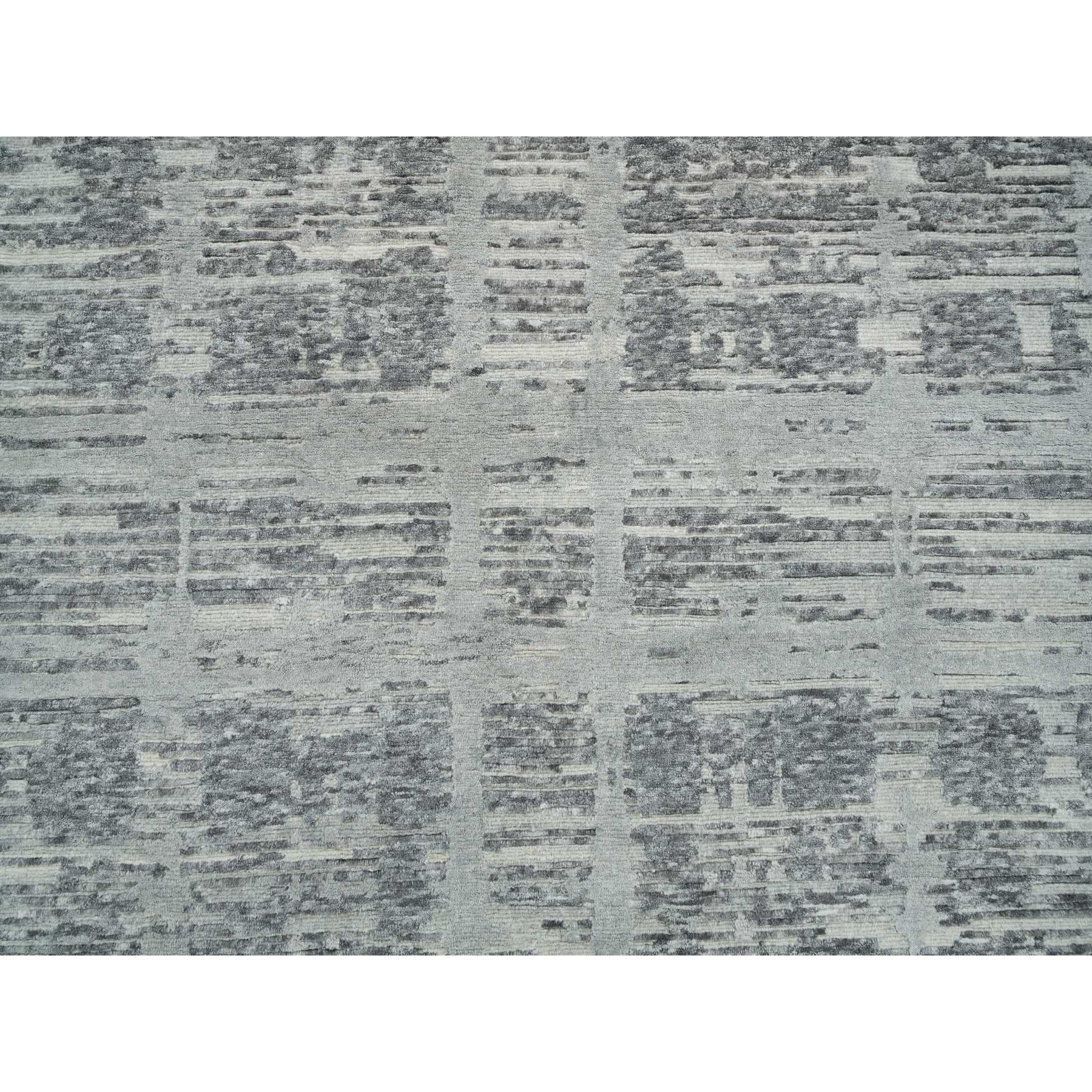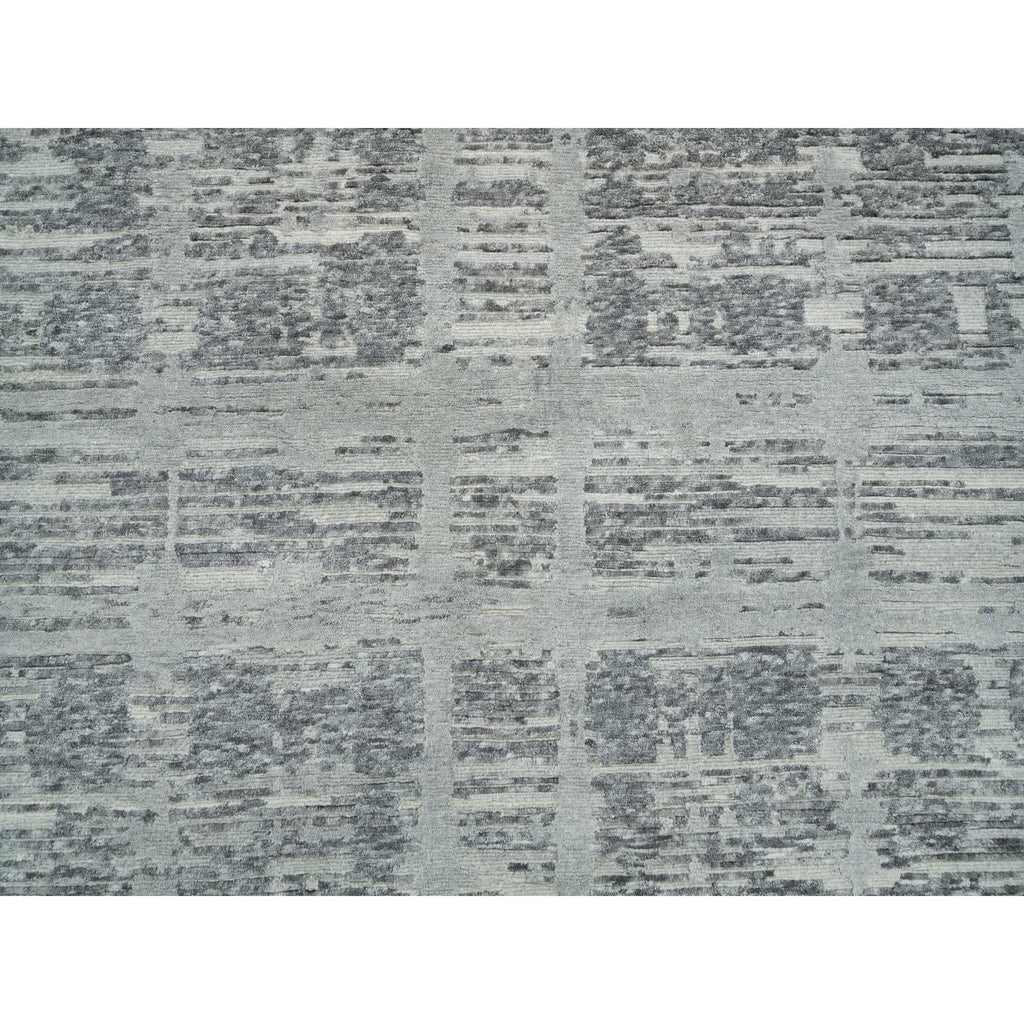 6'1"x9'2" Dark Grey, Hand Knotted, Modern Criss Cross Erased Design, Hand Spun Undyed Natural Wool, Oriental Rug FWR393858