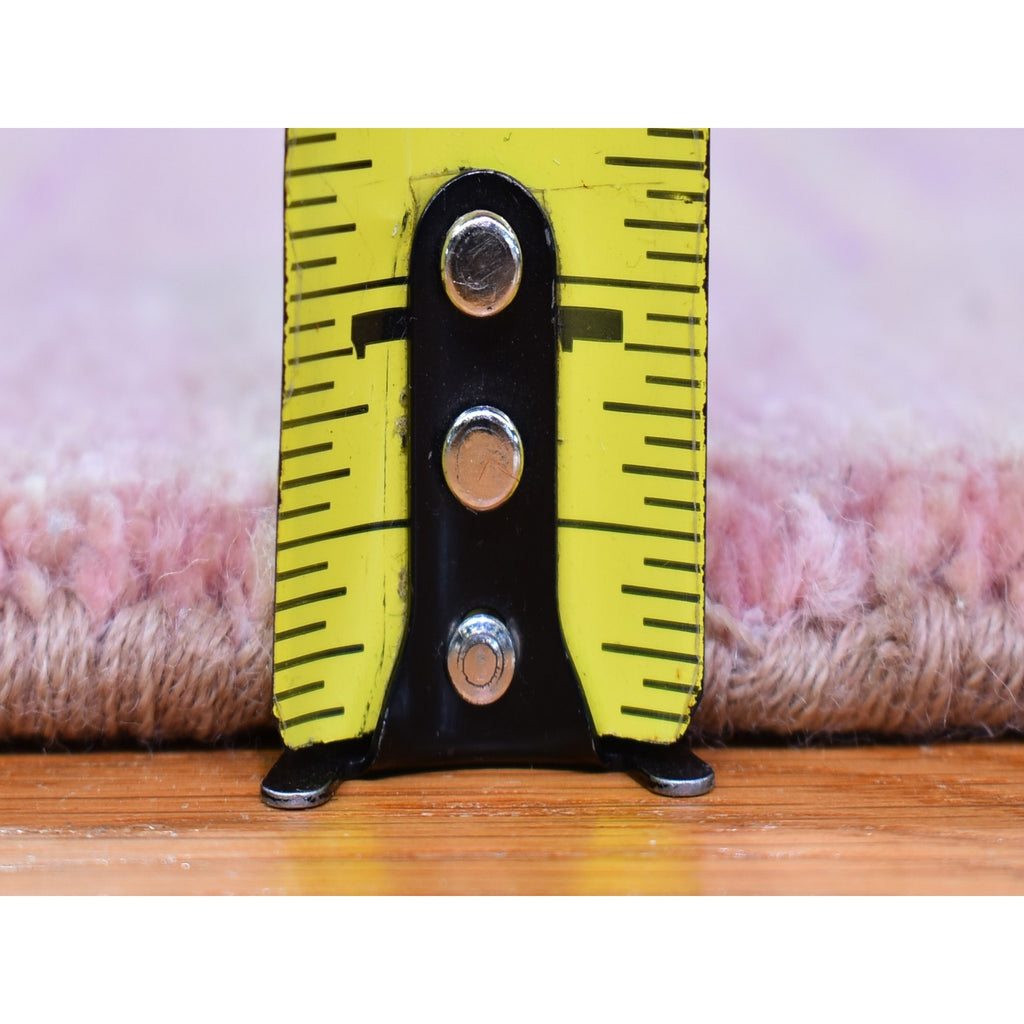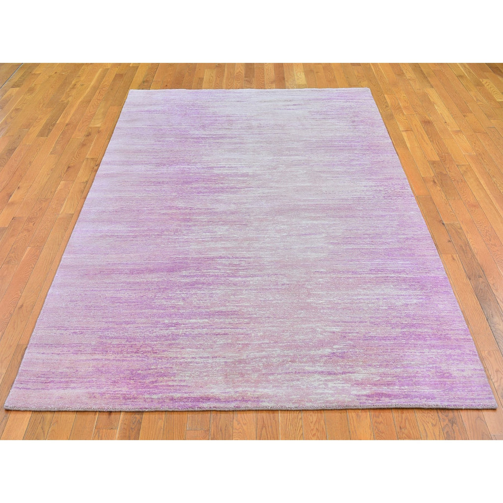 6'1"x9'2" Pink Thick And Plush Organic Wool Only Horizontal Ombre Design Hand Knotted Oriental Rug FWR400182