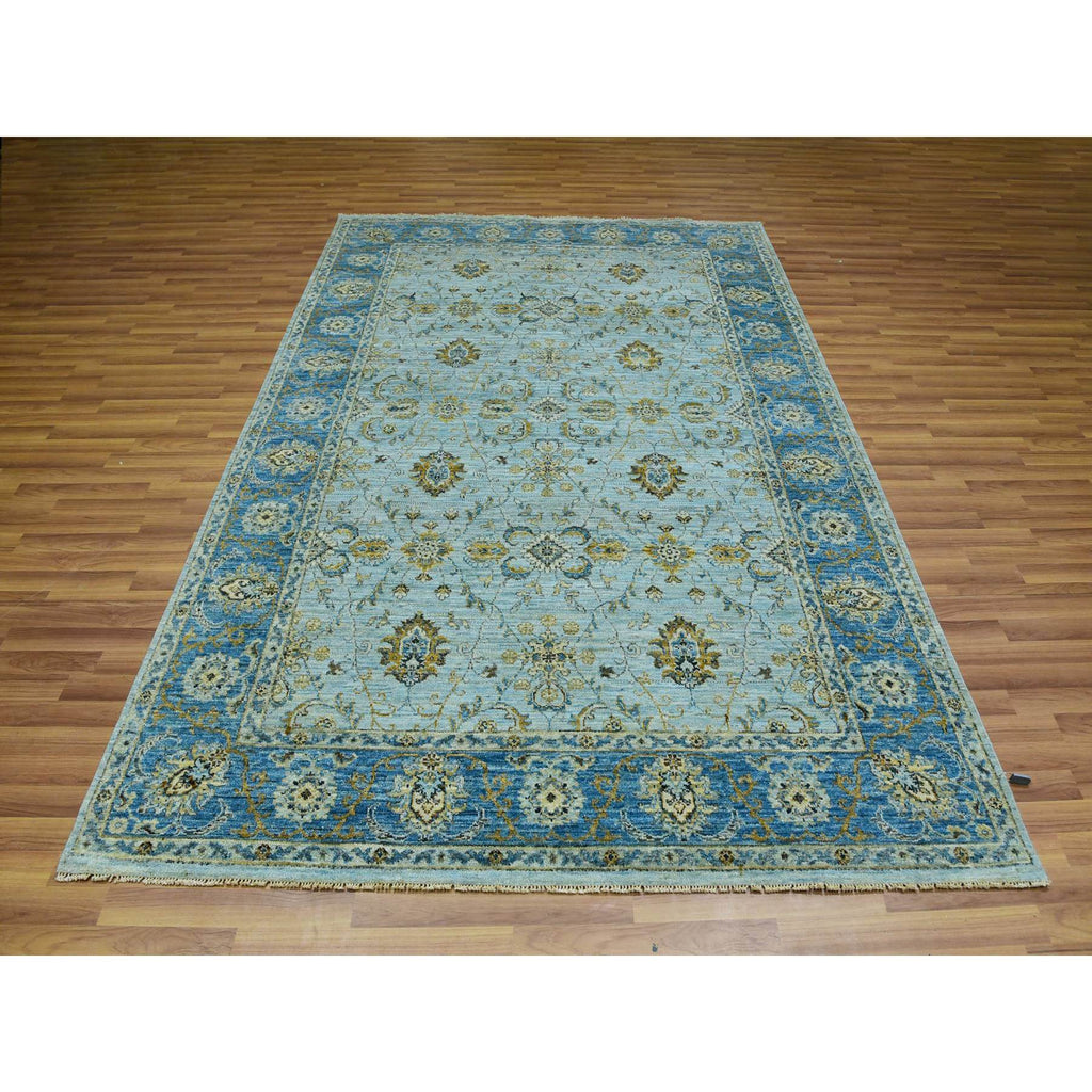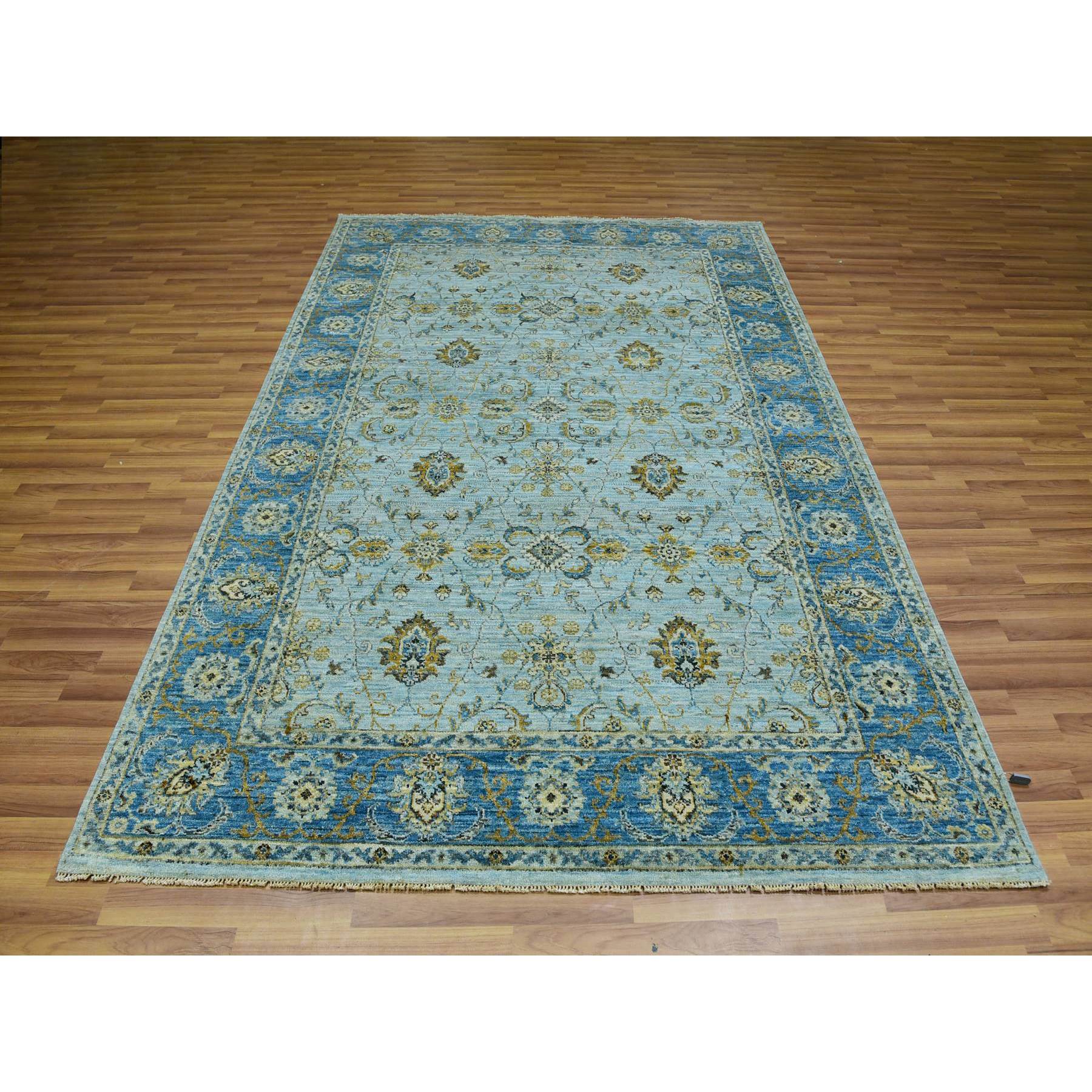 6'1"x9'3" Pale Blue, Agra, Hand Knotted With All Over Shah Abbas Floral Motifs, Vegetable Dyes, Densely Woven Natural Wool, Oriental Rug FWR456270
