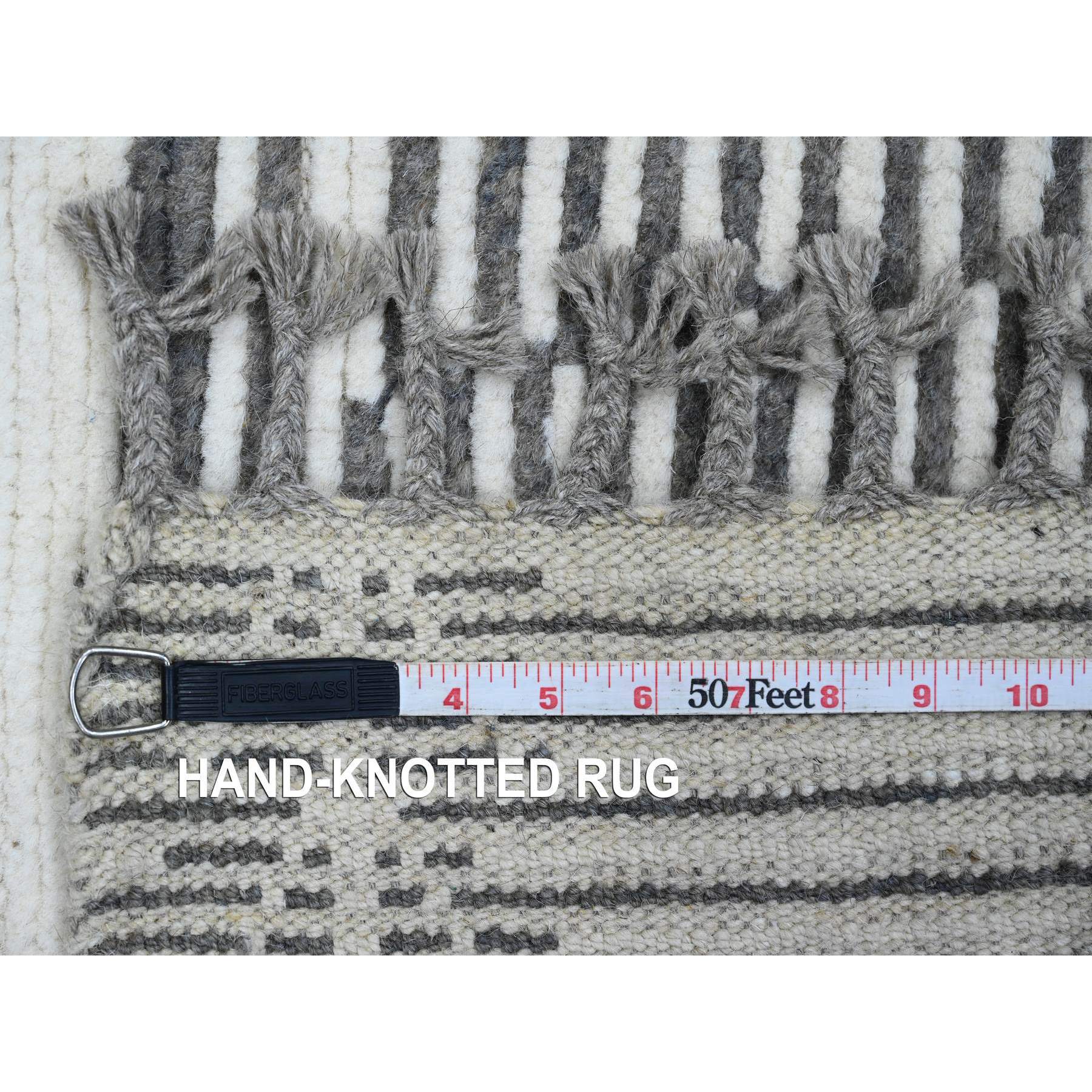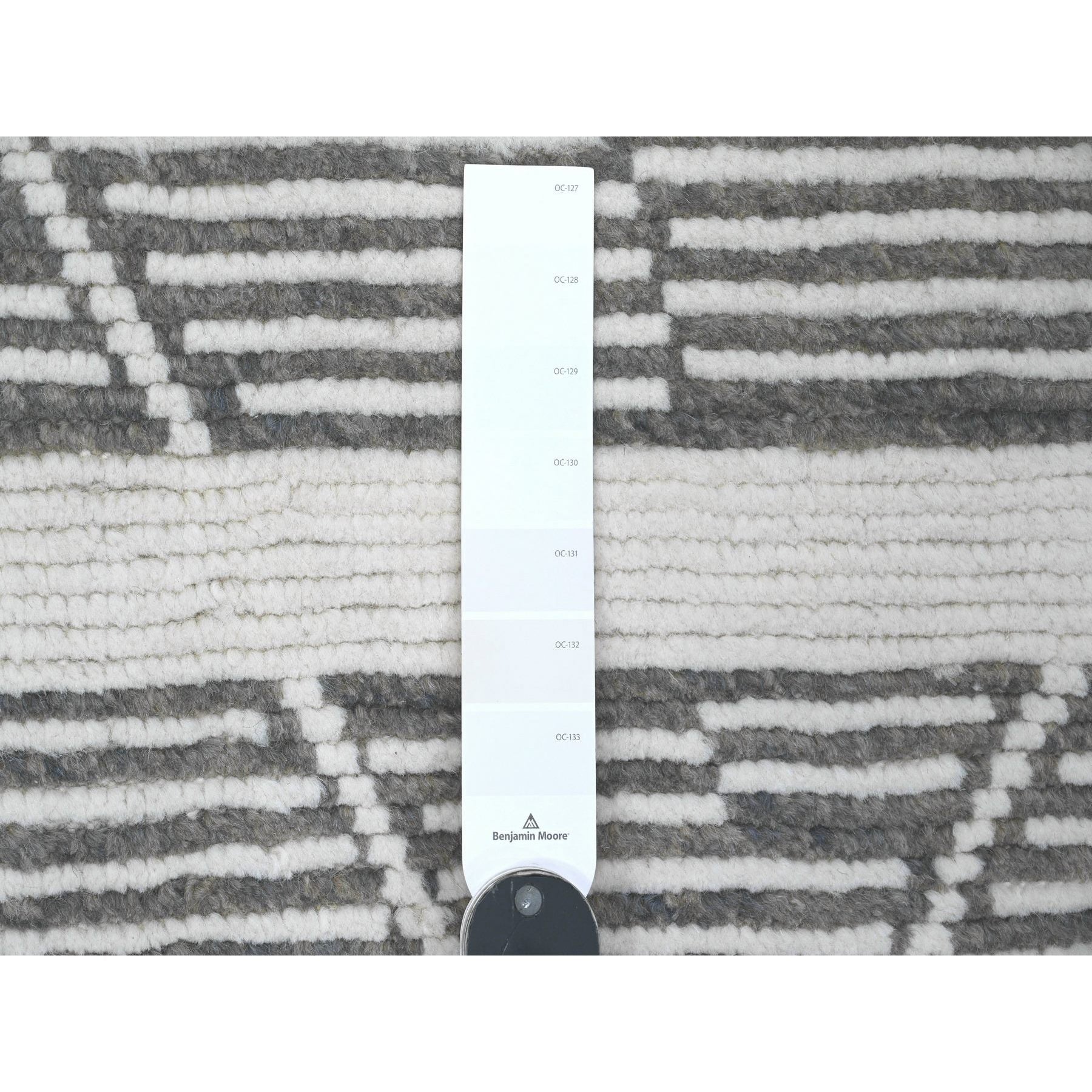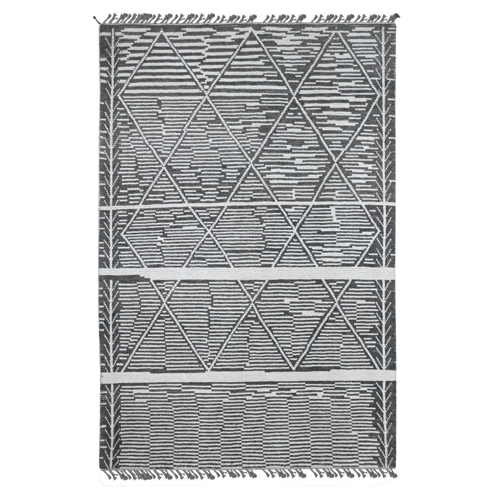 6'1"x9'4" Sonic Gray, Moroccan Weave With Intricate Dark And Light Motif, Hand Knotted, Textured Pile, Soft Wool, Tone On Tone, Oriental Rug FWR122532