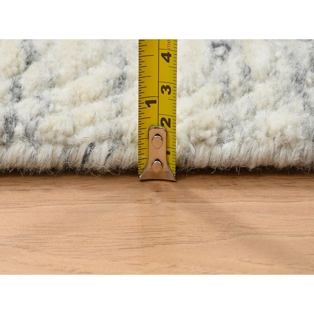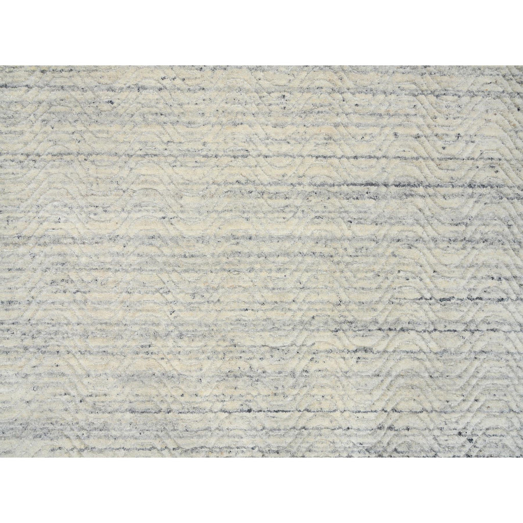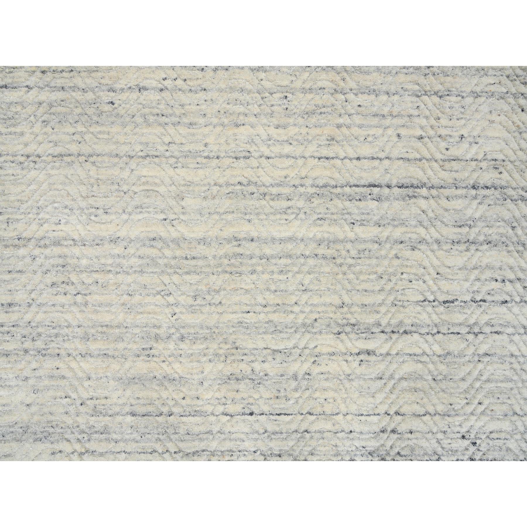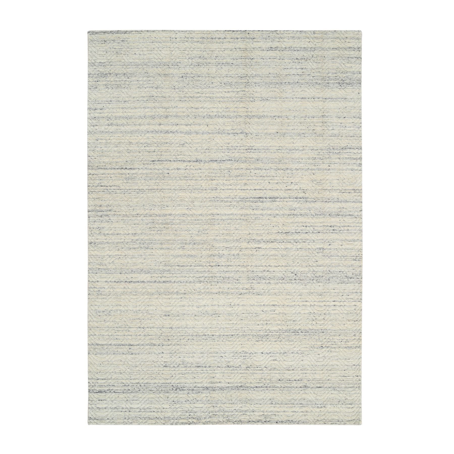 6'1"x9' Beige, Variegated Textured Modern Design, Pure Wool Hand Loomed, Oriental Rug FWR387540