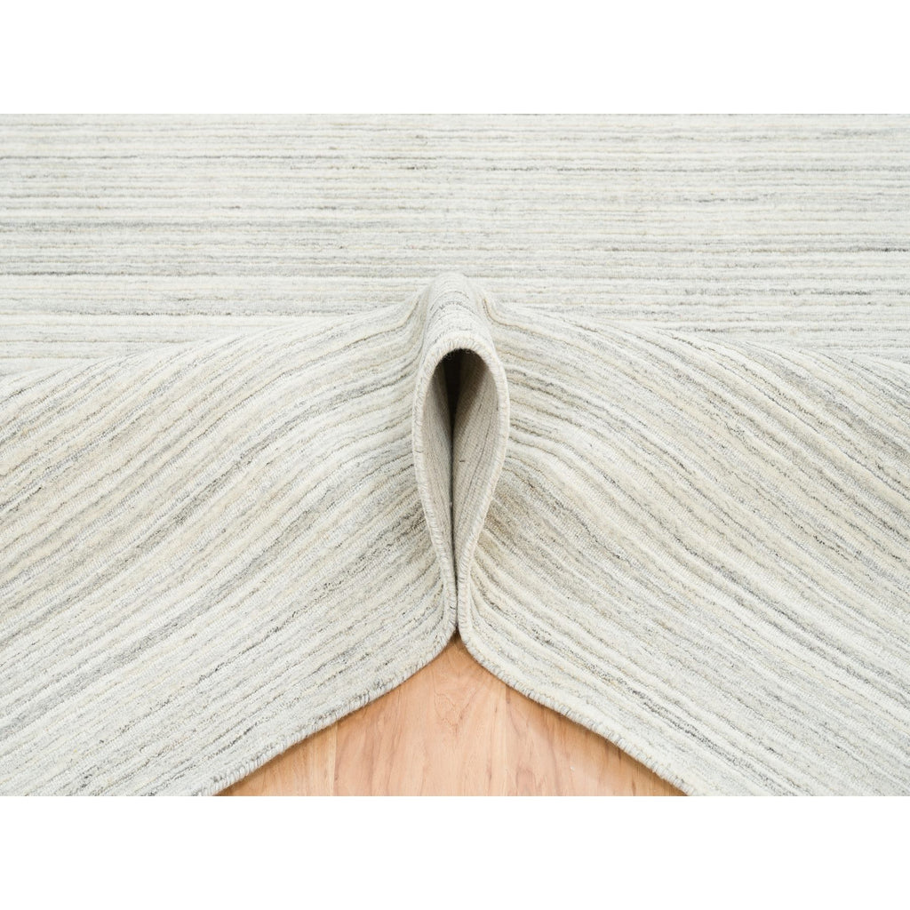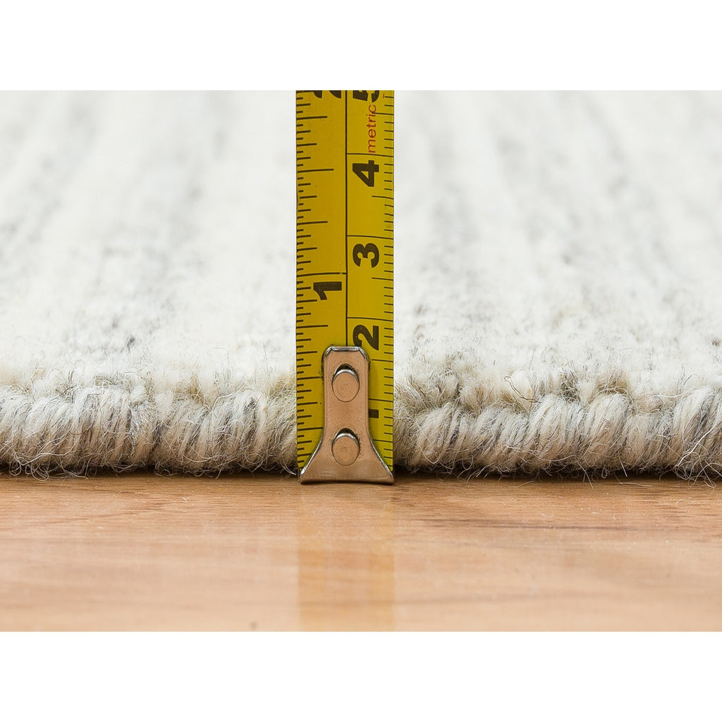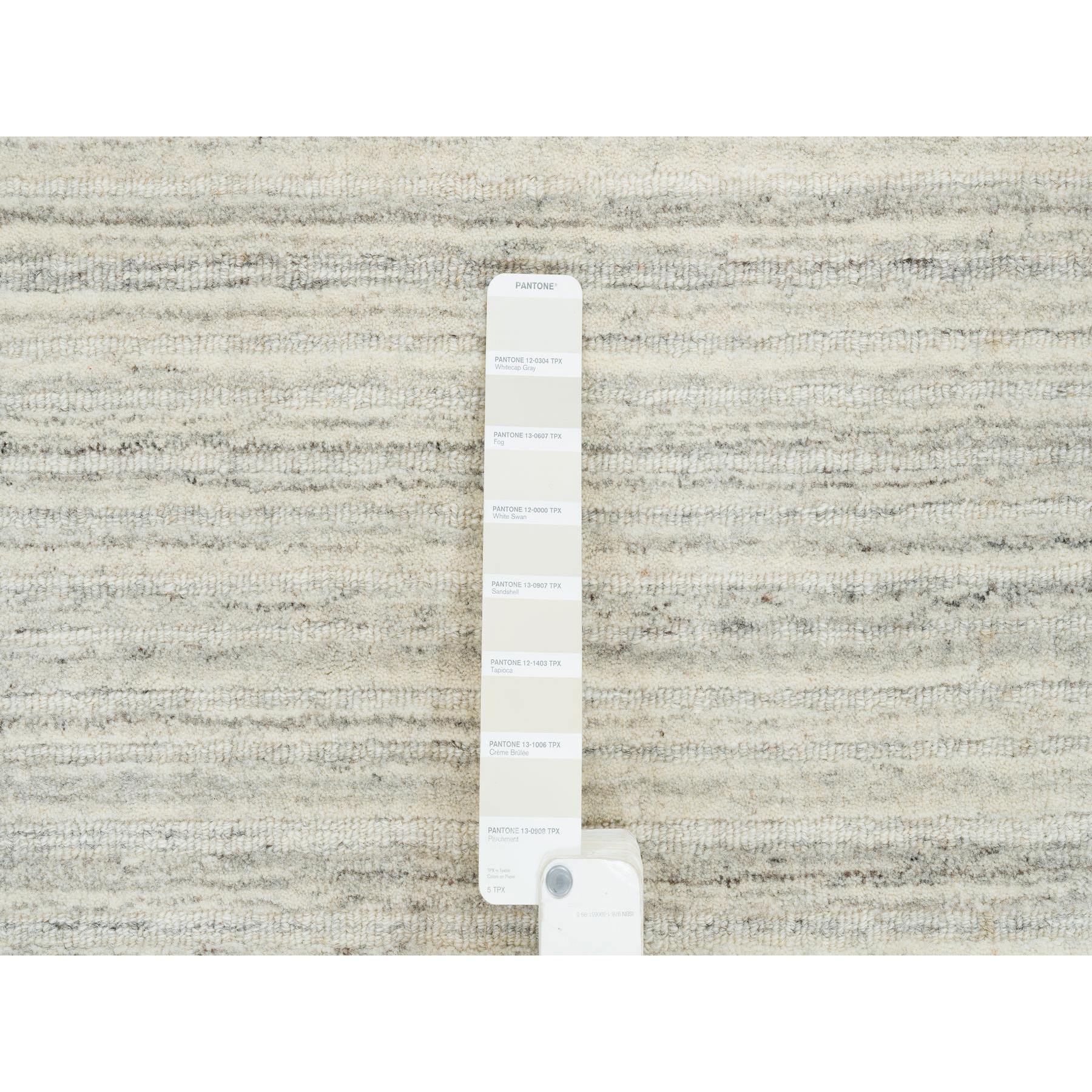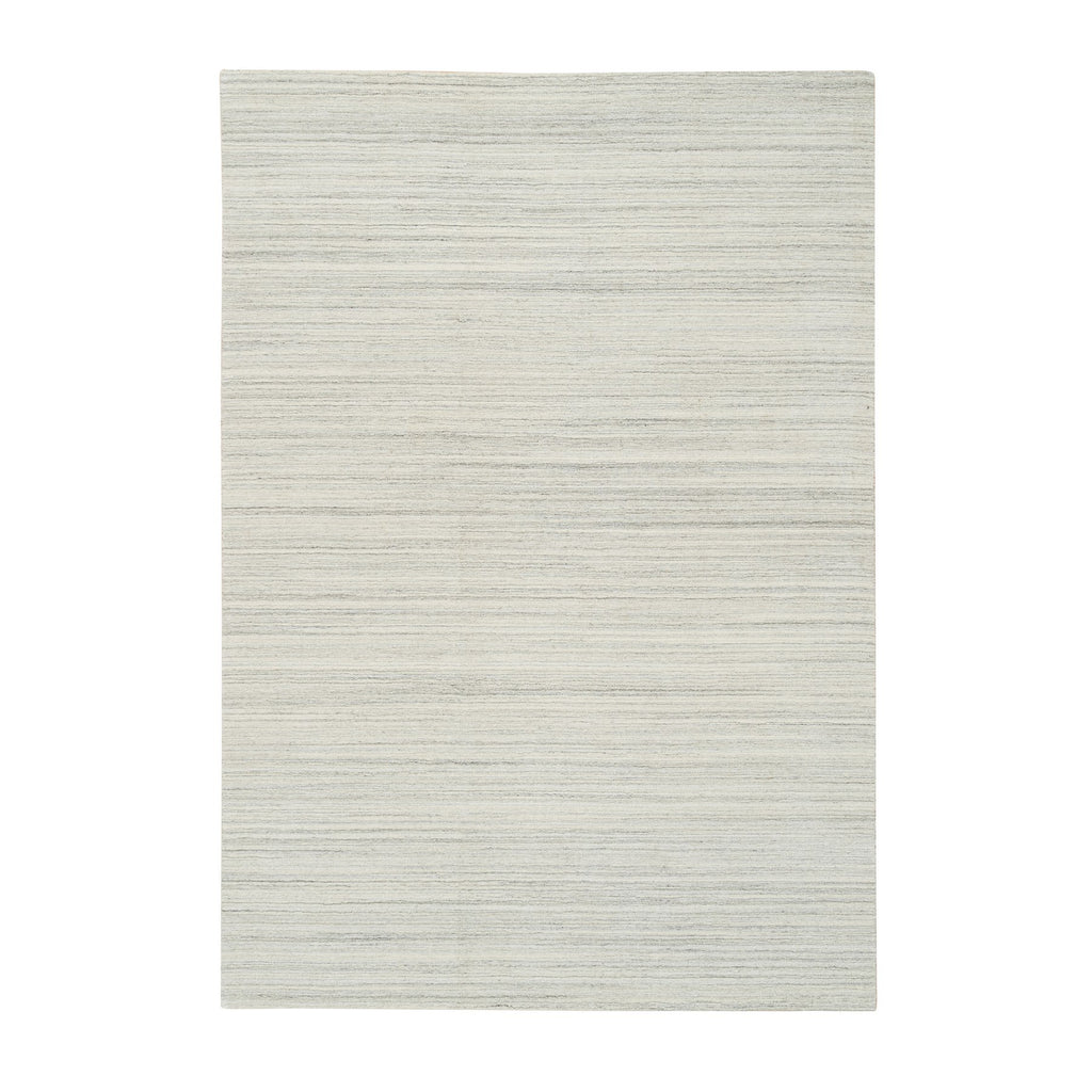 6'1"x9' Ivory And Cream, Modern Design Thick And Plush, Plain Hand Loomed Undyed Natural Wool, Oriental Rug FWR390048