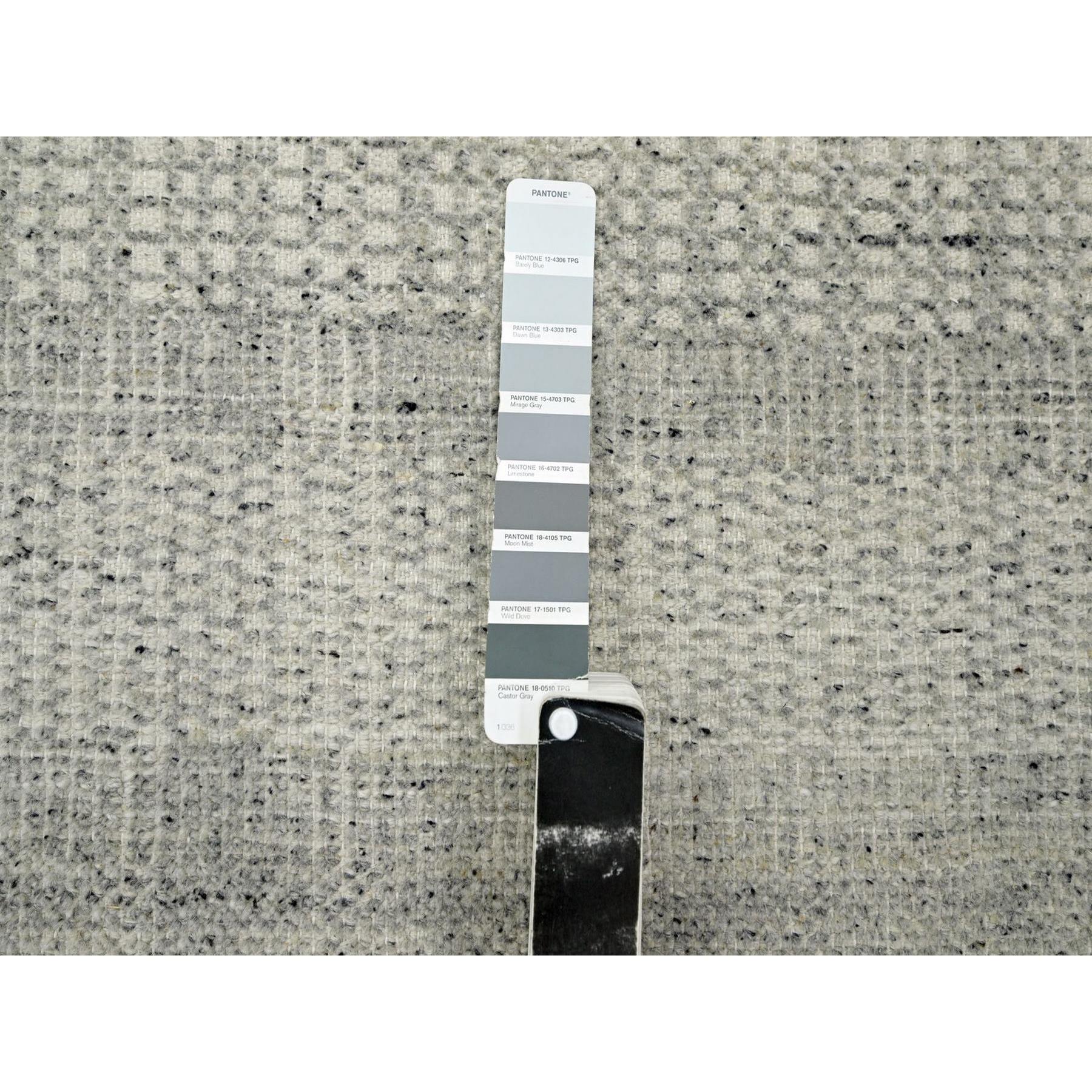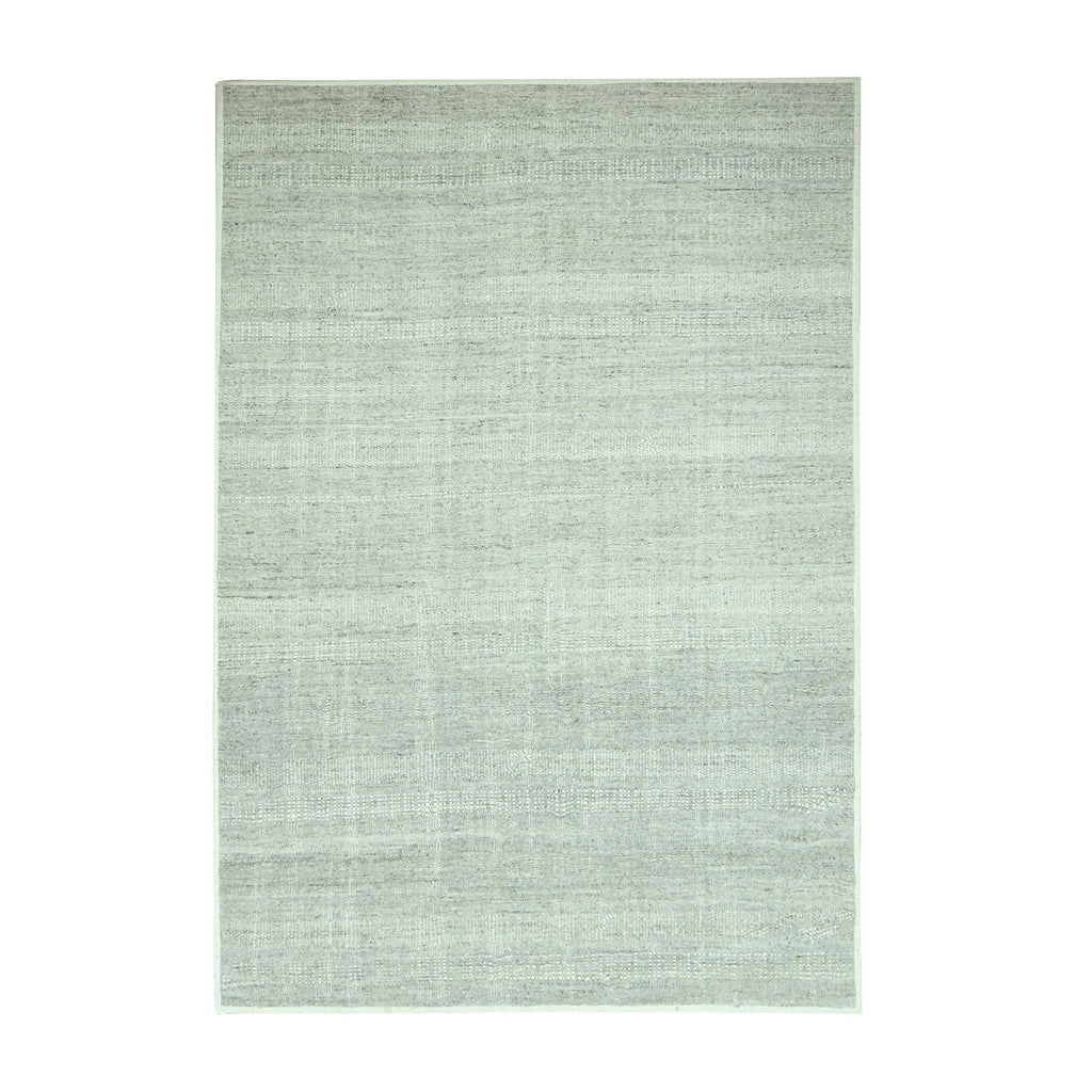 6'1"x9' Misty Gray, Natural Wool, Oxidized And Distressed Grass Design With Exposed Warps, Hand Knotted, Oriental Rug FWR460416