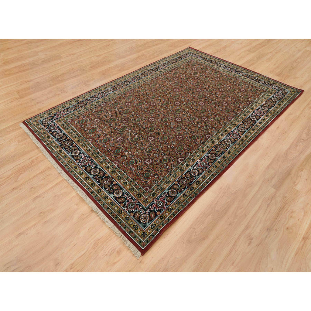 6'1"x9' Red Herati All Over Fish Design Thick And Plush Wool 175 Kpsi Hand Knotted Oriental Rug FWR390648